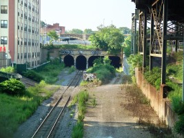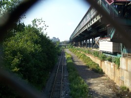 The line was abandoned by the CSX around 1999. Some railroad.net reminiscences by guys who worked on that line say that it was always a problematic stretch of track. Aside from the fact that it was a very narrow line with poor drainage and tight clearances that was slow and difficult to negotiate, the high levels of crime in the neighborhood presented threats both to the cargo and to the men working on the line. When the Bronx was burning in the 1970s, this is where it was burning.