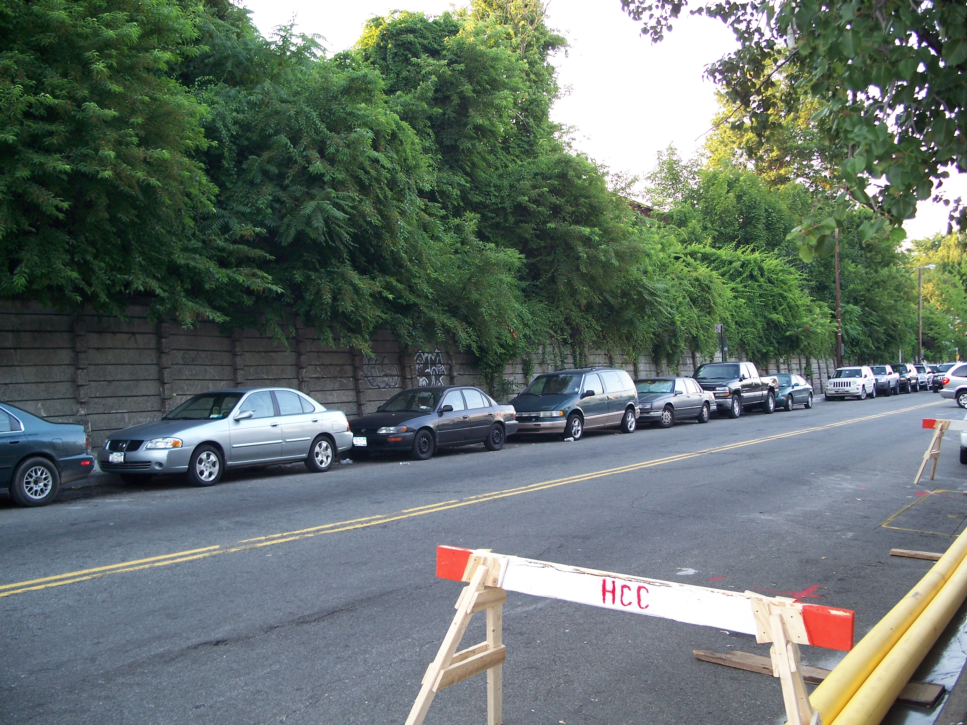 The Cypress Hills Street bridge is an othewise unremarkable 78-foot steel stringer bridge from 1913, except for some piers running along the west side. They may have served as the elevated portion of a siding as there are siding rails poking out of the pavement a few hundred feet to the north. The piers now serve as parking place dividers in the parking lot of Glenridge Mews, an upscale apartment building housed in the old Philip Dietz Coal Company Building