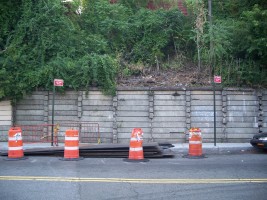 Retaining wall on east side of tracks