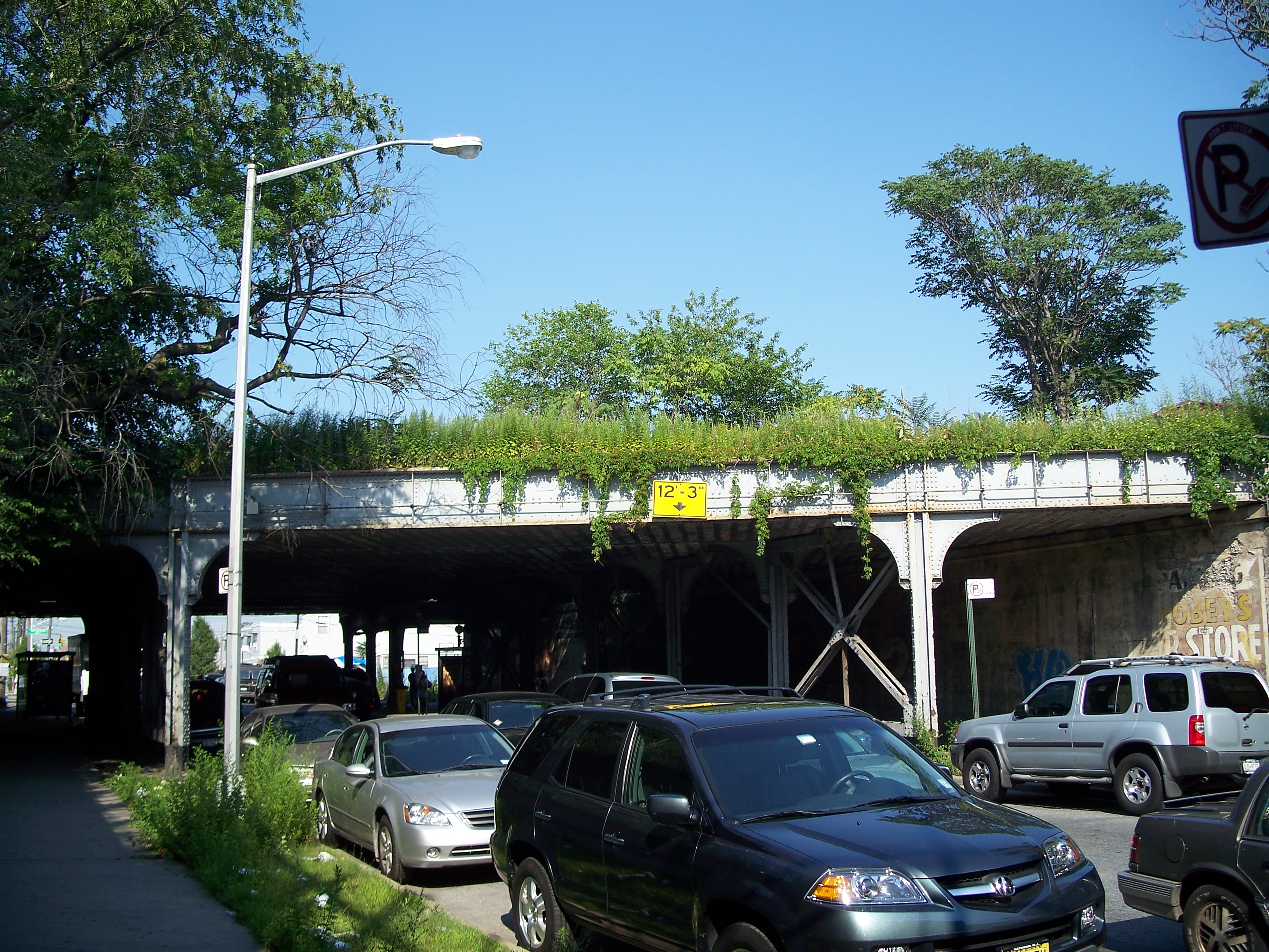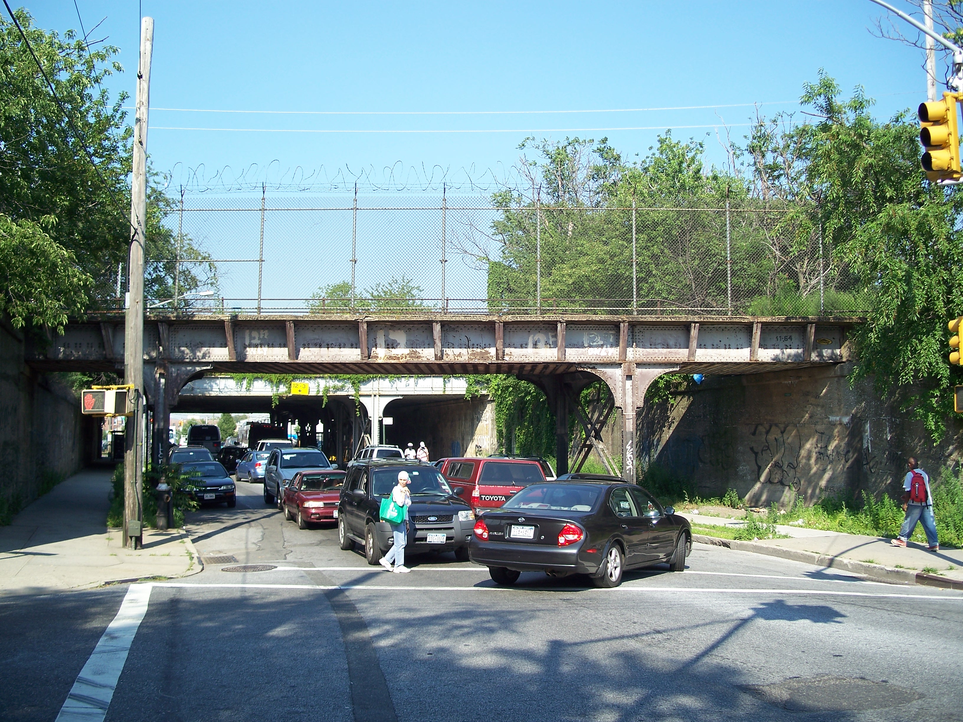Overgrown Bay Ridge Line bridge over New Lots Avenue