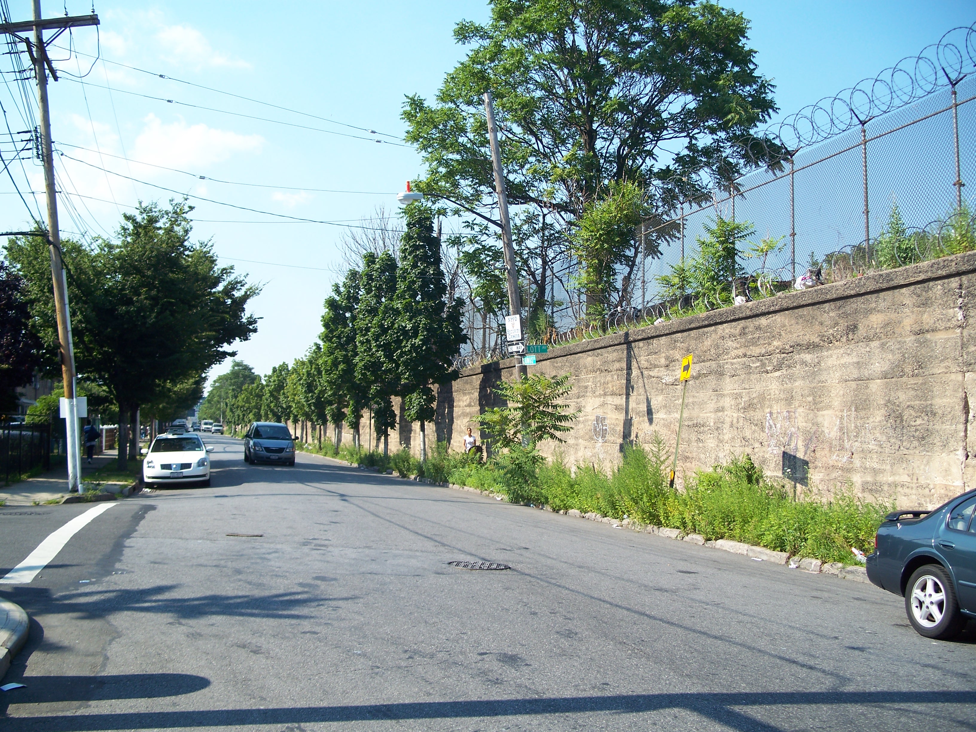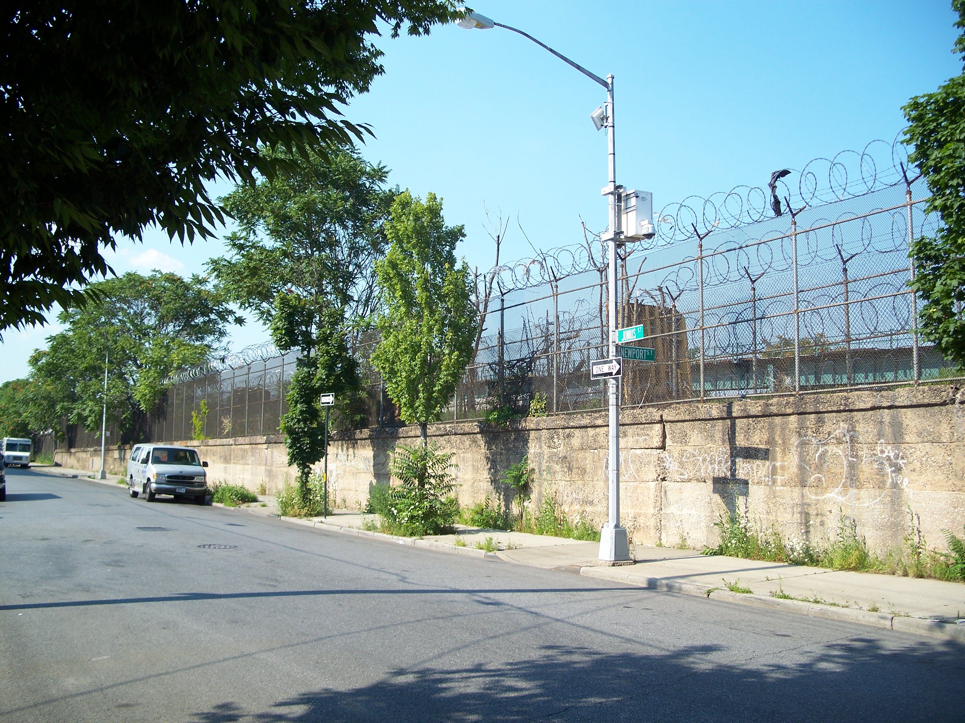 Looking north along the west retaining wall for the MTA storage yard and the Bay Ridge Line right-of-way