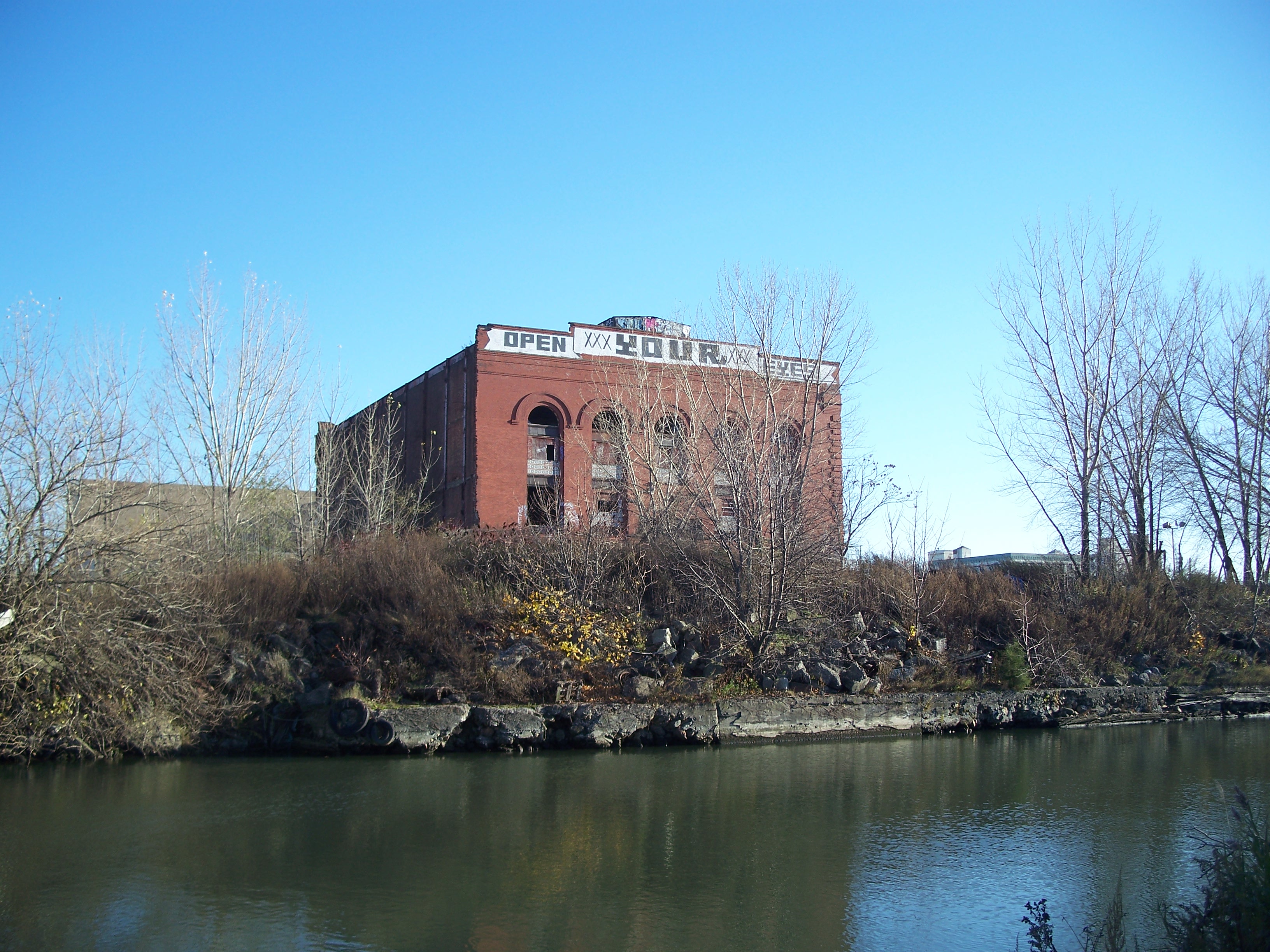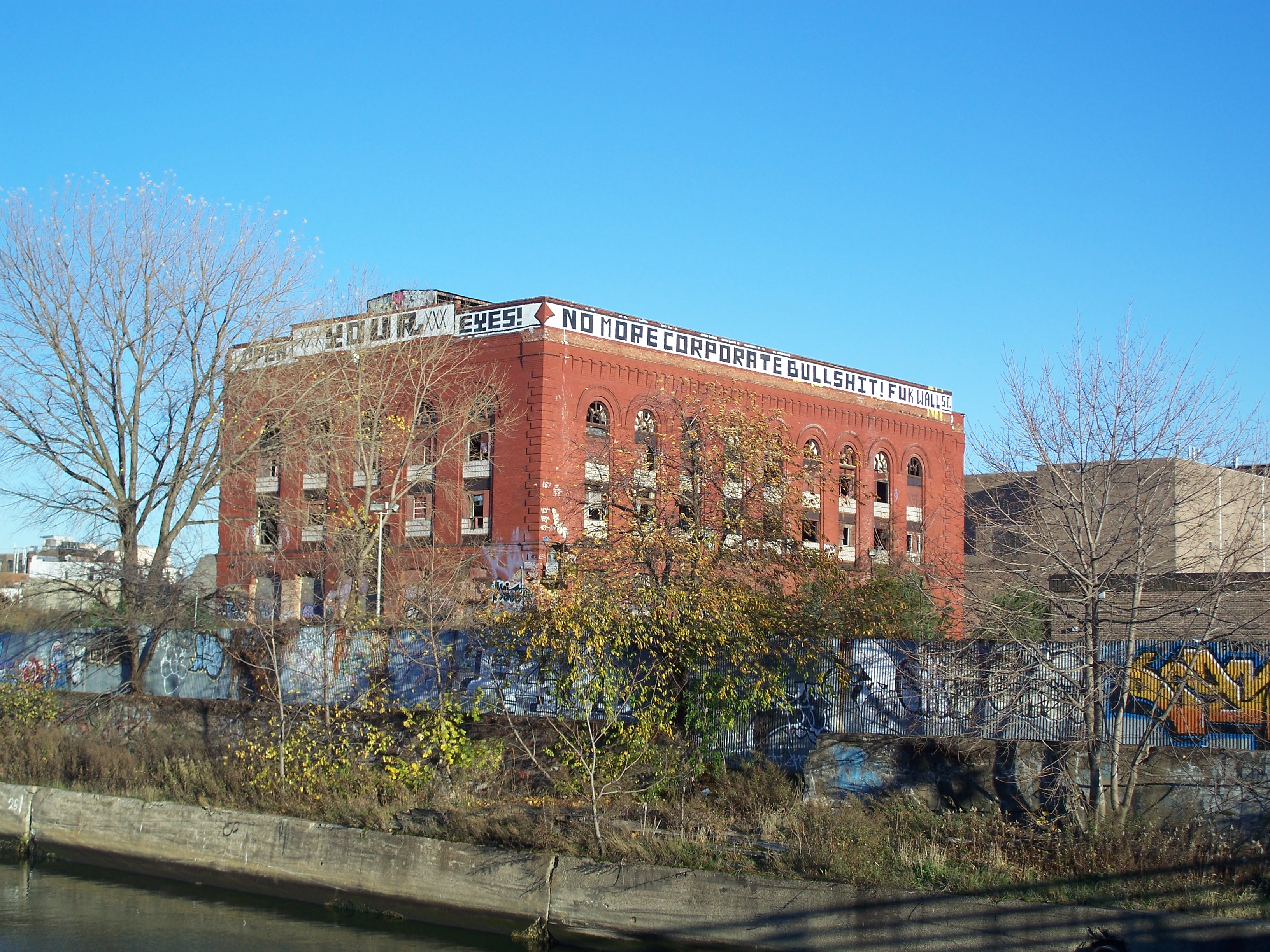 The east bank of the canal between 2nd/3rd Sts is home to a majestic abandoned power plant, complete with some colorful commentary on development plans for the neighborhood. Immediately to the east of it is a former subway power substation at 340 3rd Ave which was the printing plant for the Jewish Press.