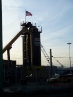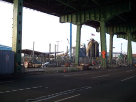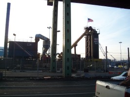 This is where New York City's streets come from. Just to the south of Hamilton Avenue on the east bank of the Gowanus Canal is the NYC Department of Transportation's Hamilton Plant where asphalt paving material (asphalt concrete) is made by combining gravel and the thick liquid residue from the distillation of crude oil.