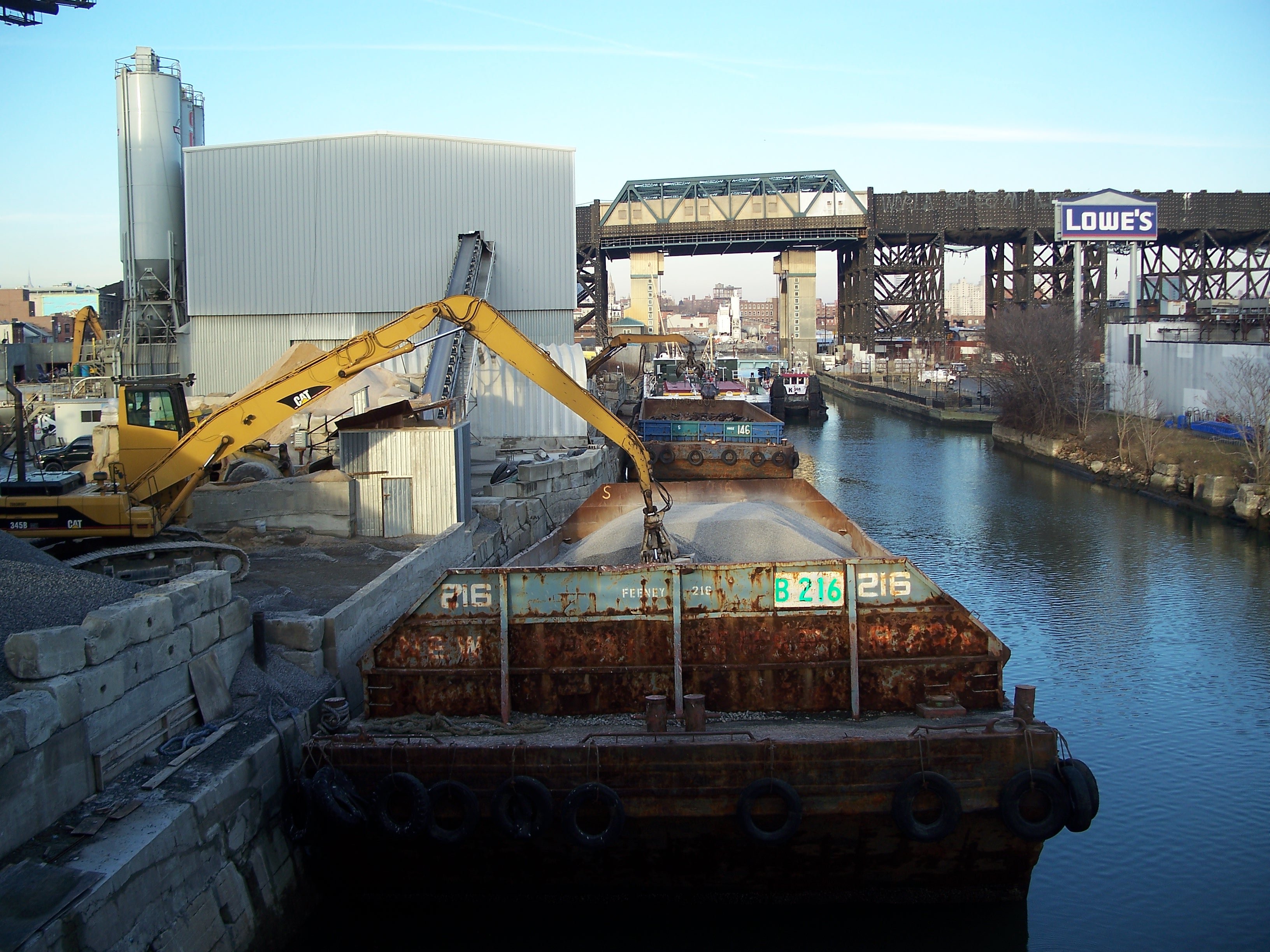 The businesses most actively using the canal are on the lower half of the canal and deal with heavy, time-insensitive commodities like gravel, fuel oil and scrap metal that are perfectly suited to shipping by water. Accordingly, a concrete plant, scrap metal yard and fuel oil terminal are located on the west bank of the canal between 9th street and Hamilton Avenue - with ready access to the main roads through the area and water access requiring raising only the Hamilton Parkway bridge.