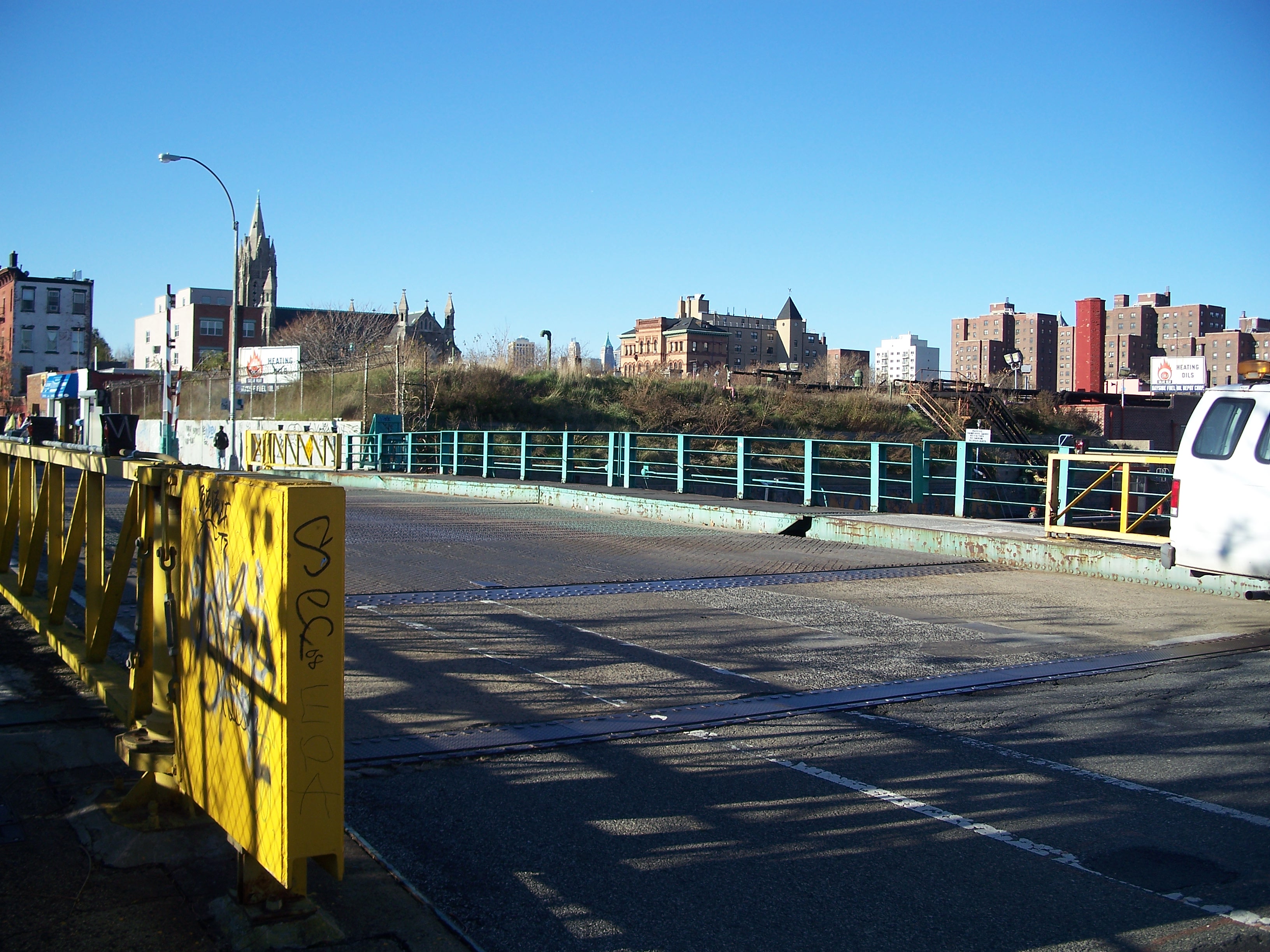 The Union Street Bridge (NYC BIN #2240270) is a double-leaf Scherzer rolling lift bascule bridge that opened in 1904. The bridge carries two 17-foot-wide eastbound landes and two six-foot-wide sidewalks over the Gowanus Canal. It replaced a narrow 17-foot-wide pipe truss swing bridge and was built under the same contract with the replacement Third and Ninth Street Bridges.