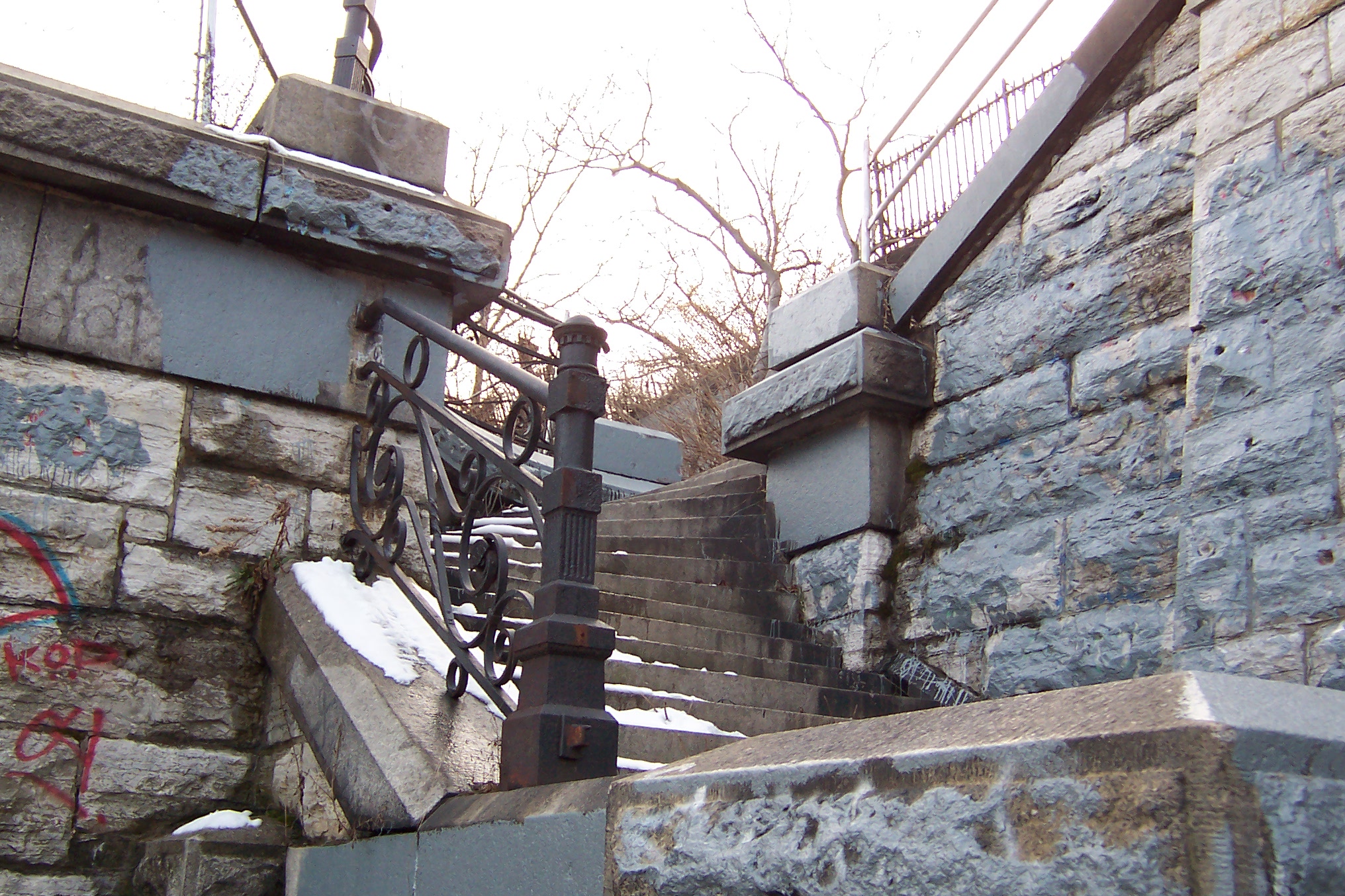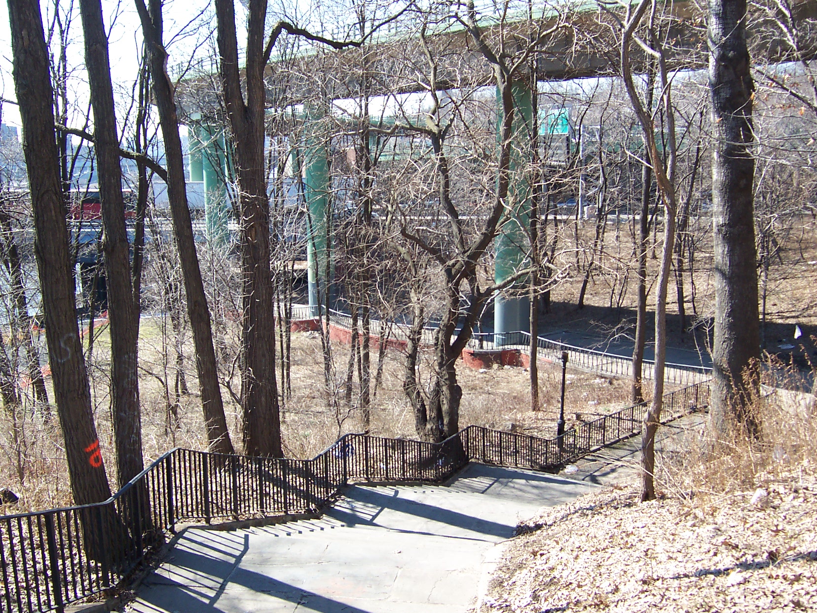 Stairway down from the park to the upper balcony