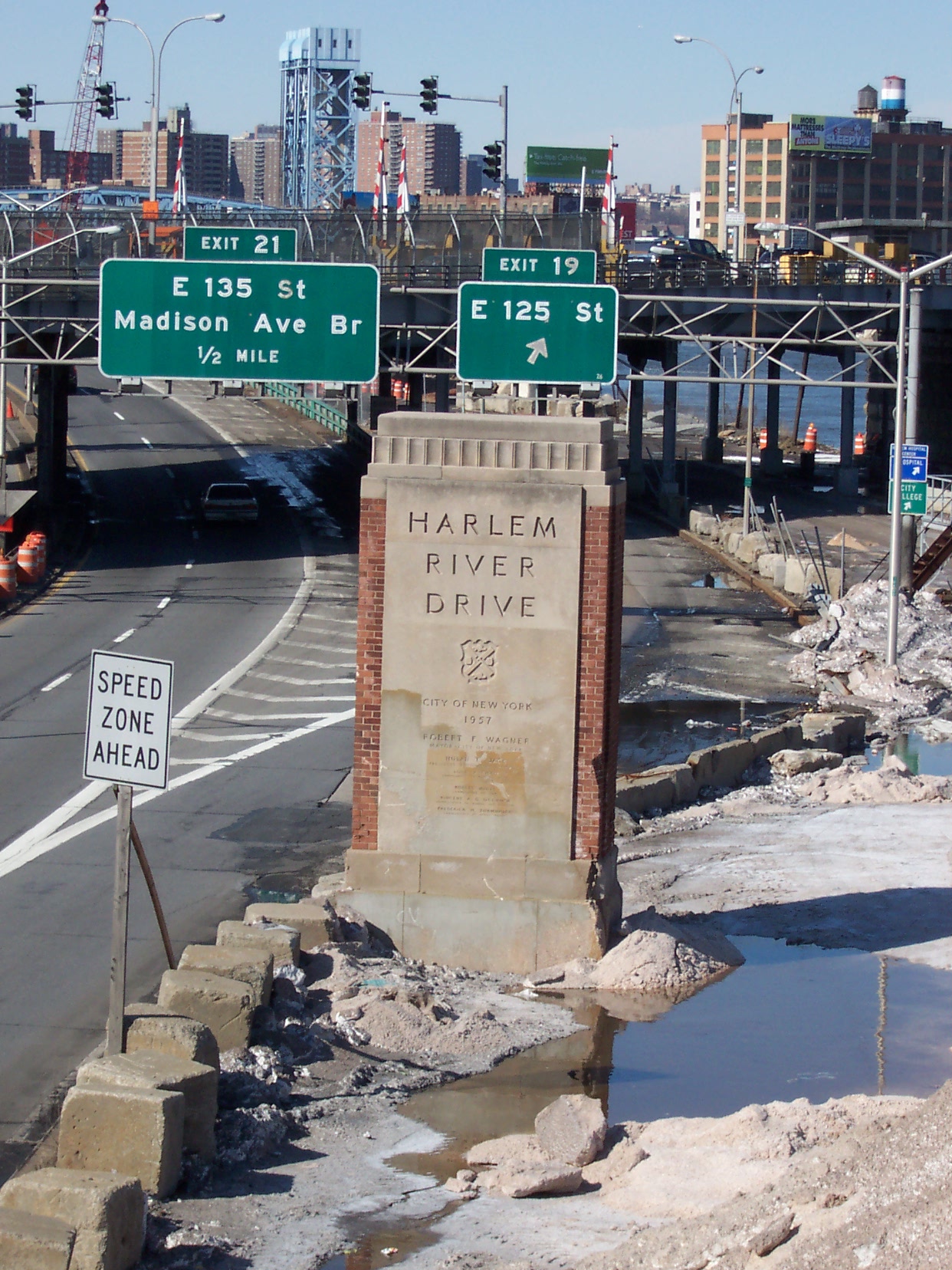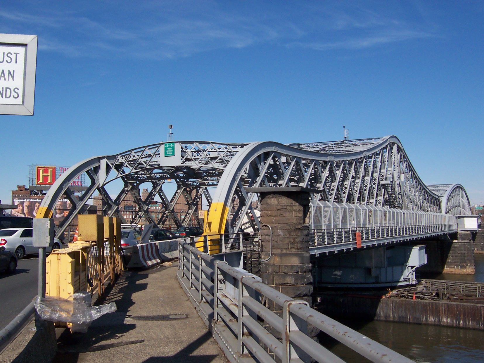The Willis Avenue Bridge connects First Avenue in Manhattan at 126th Street with Willis Avenue in The Bronx. The bridge features a 304-foot rim-bearing continuous-truss swing span carrying a 42-foot-wide roadway for four lanes of northbound traffic and two 9-foot-wide sidewalks. A fixed-curve truss span north of the swing span crosses the Harlem River freight terminal yard. The bridge was designed by Thomas C. Clarke, who also designed the Third Avenue Bridge.