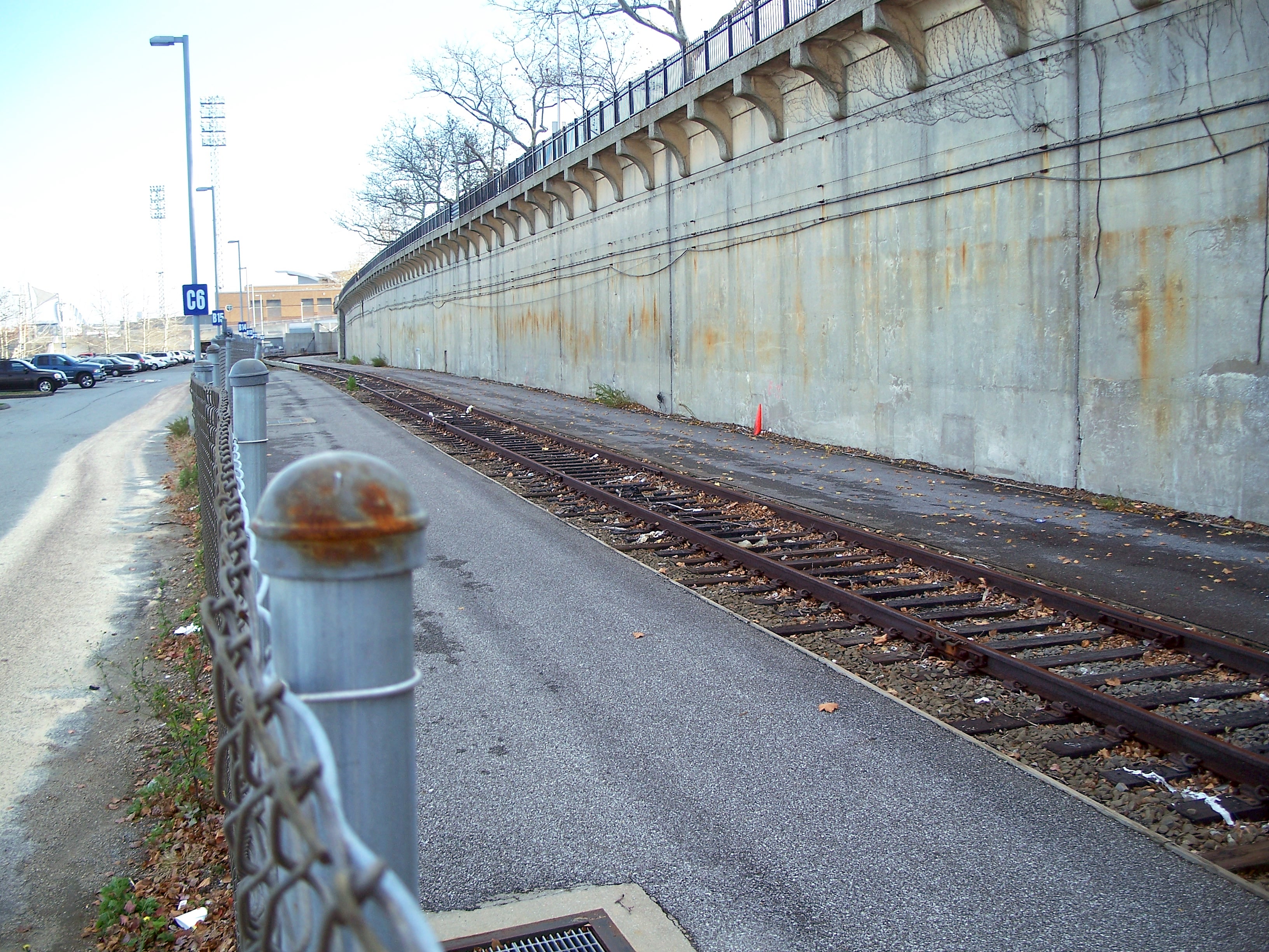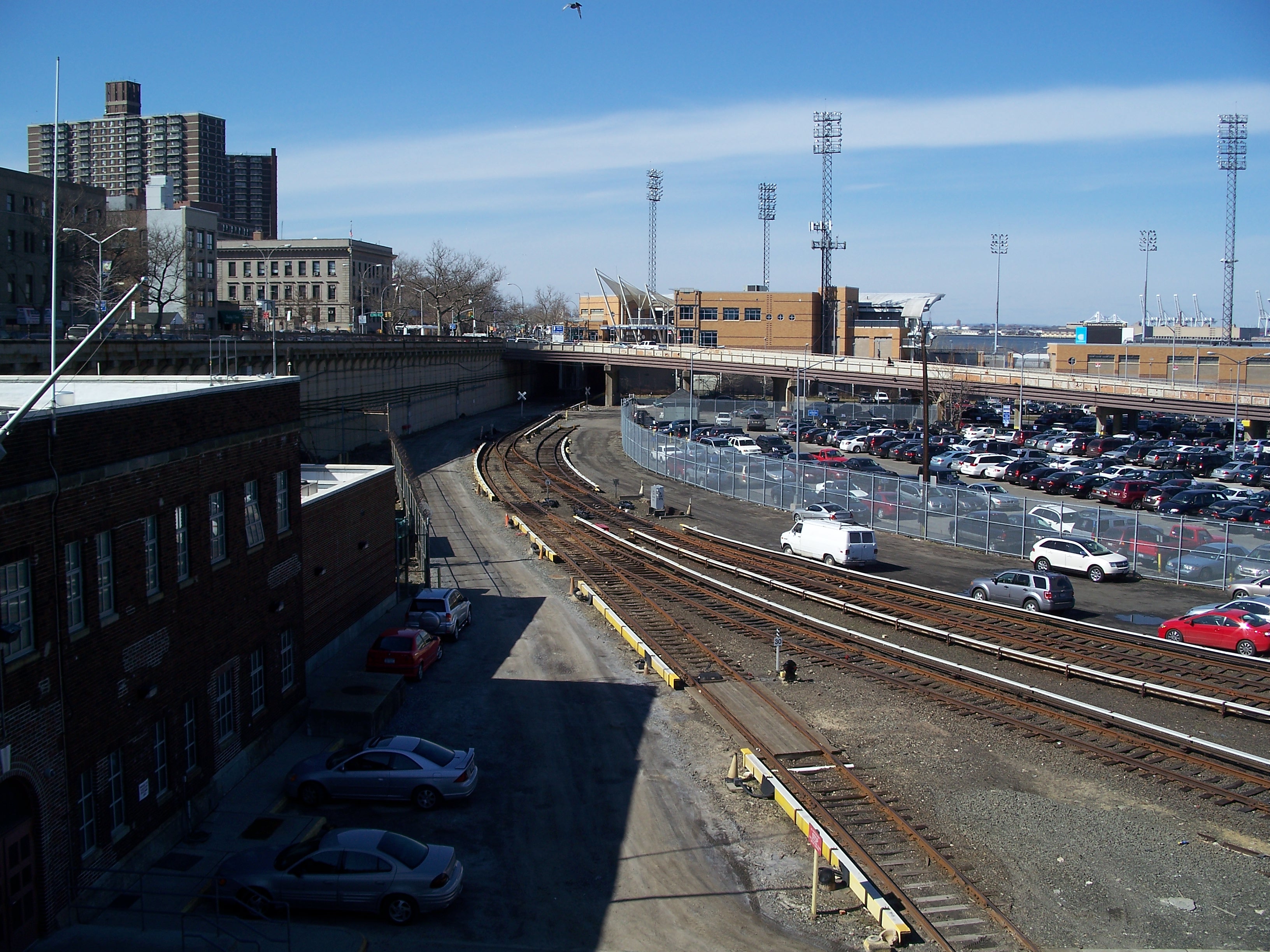 The former NSRR platforms at the St. George ferry terminal are still intact and track continues past a special-event station at the ballpark and about 1,000 feet north to a terminating bumper.