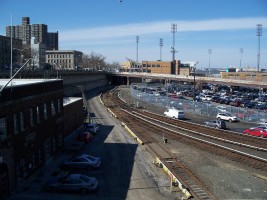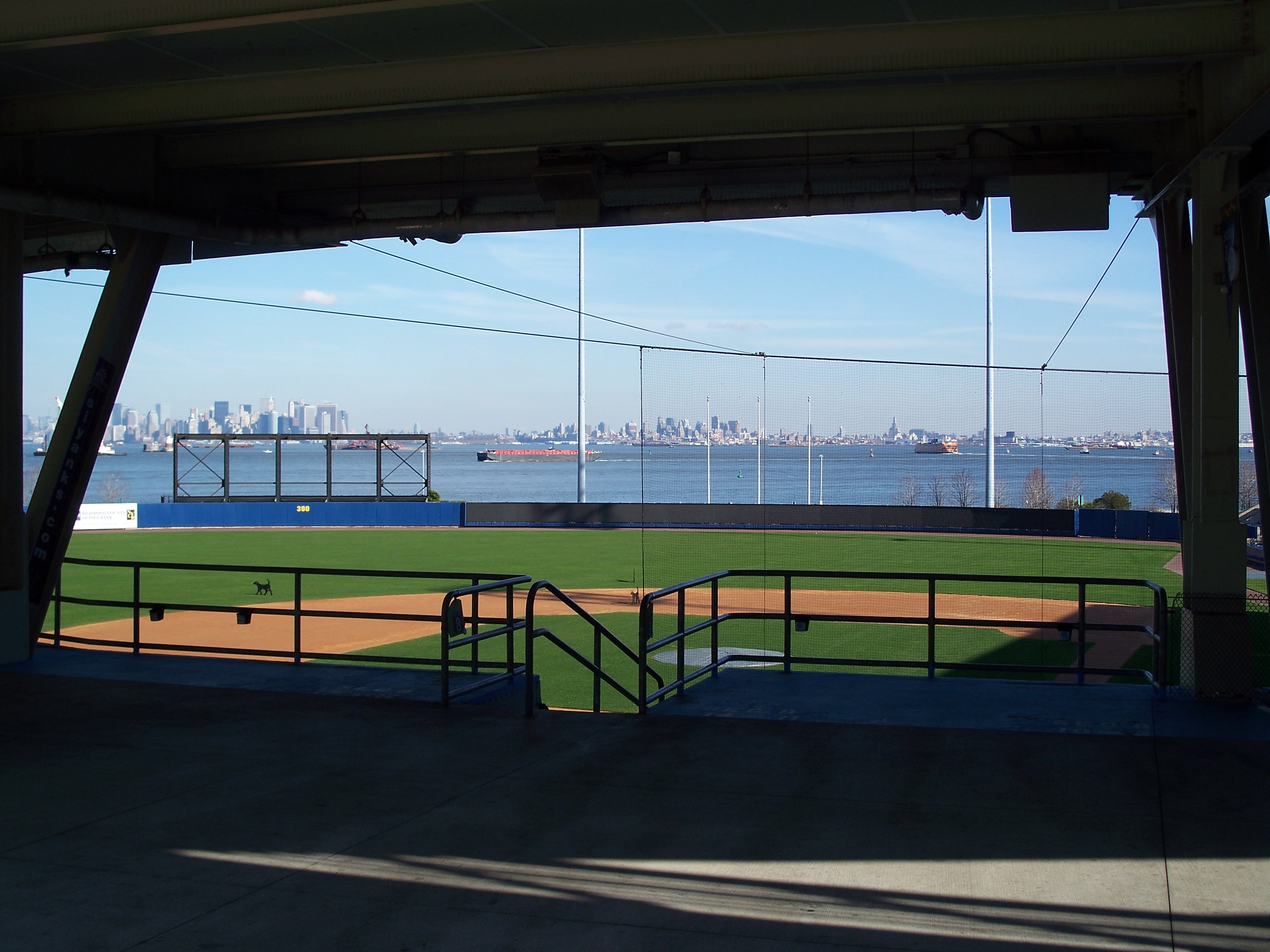 The long-abandoned railyard was converted into commuter parking lot and stadium for a minor-league affiliate of the New York Yankees baseball team in the late 1990s. Baseball was supposedly played professionally in St. George from 1886 to 1888, although it's hard to imagine how the comparatively small area was shared by a railyard and ballpark. The 7,171-seat Richmond County Bank ballpark opened on June 24, 2001 and a waterfront boardwalk park was also incorporated into the design. A 9/11 memorial was added in 2004 (SIYanks.com 2009). A station to provide seasonal service to the ballpark was added on a short section of the North Shore line.