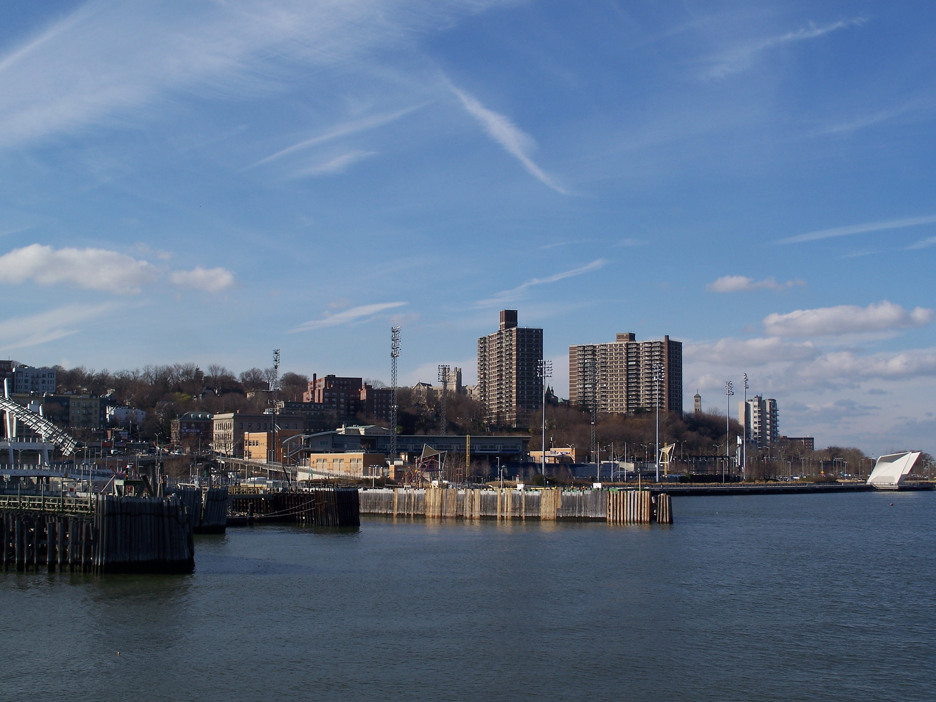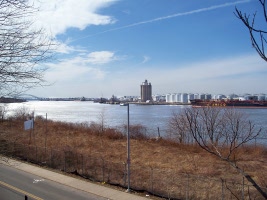 To the North of St. George is Kill van Kull and fuel storage tanks in Bayonne.