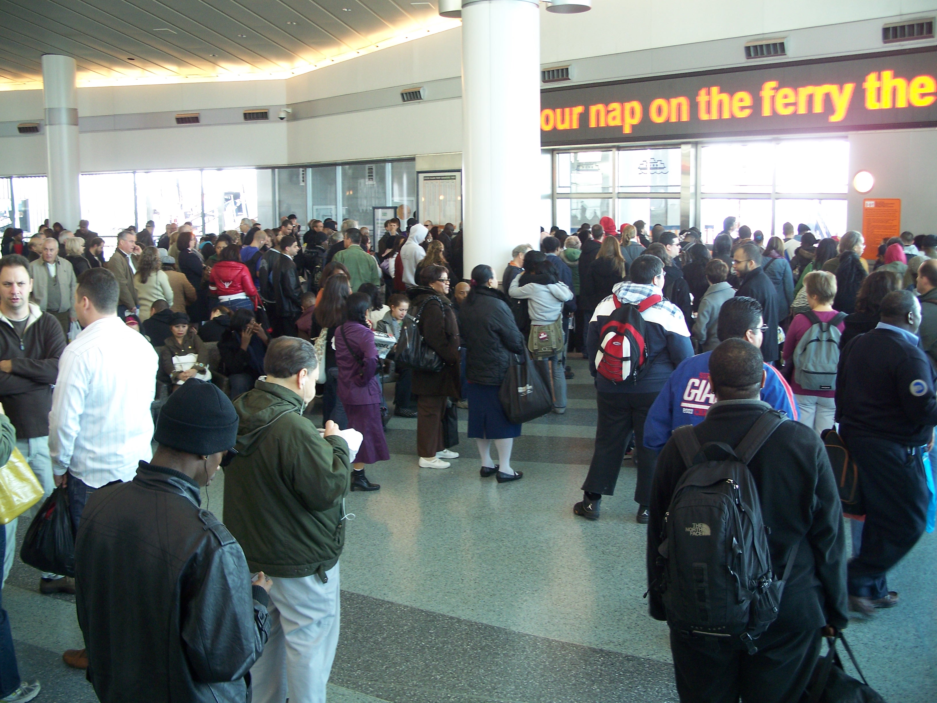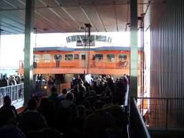 Boarding the ferry in Manhattan