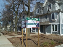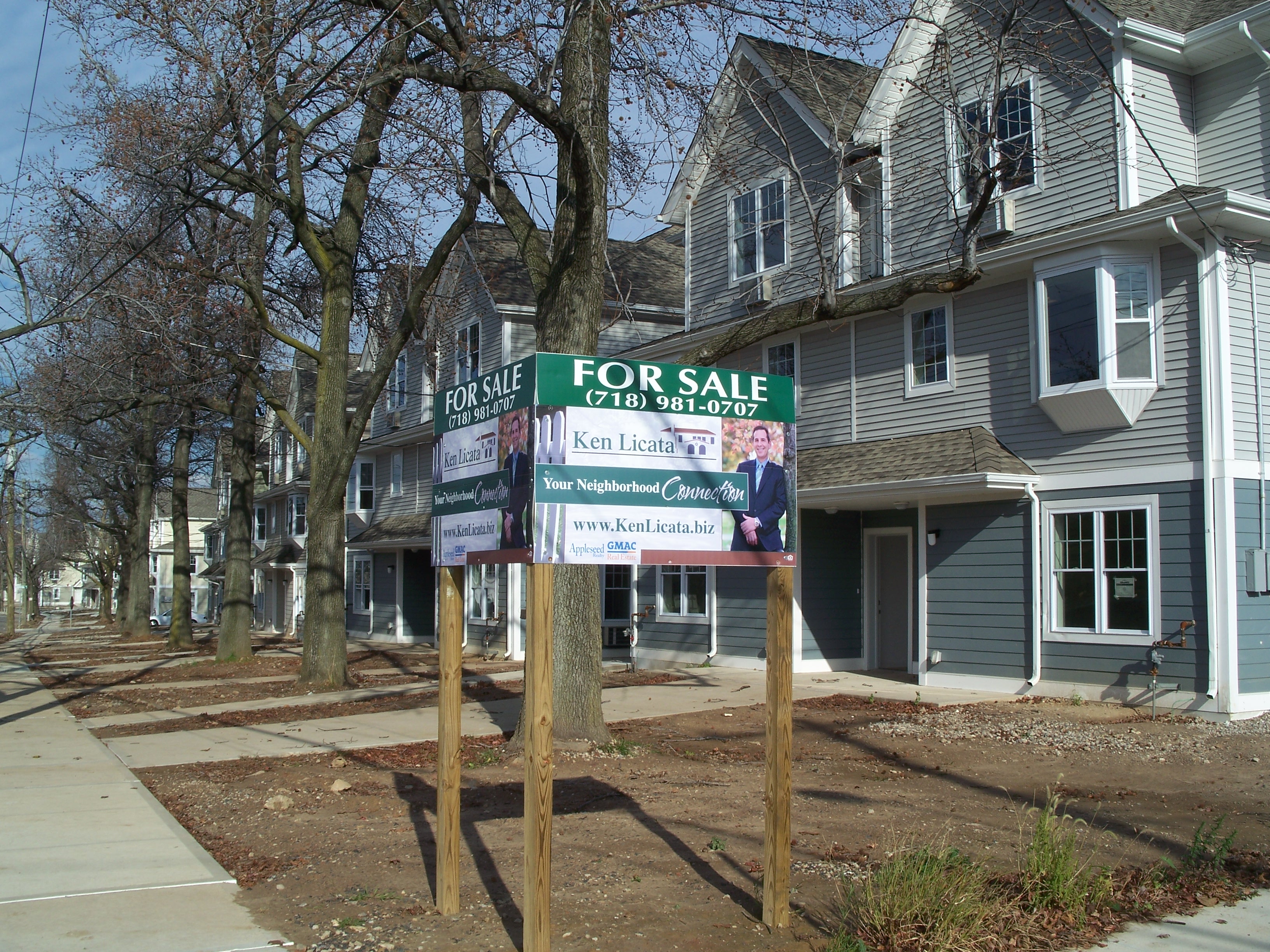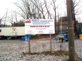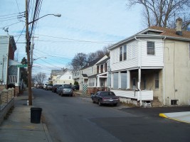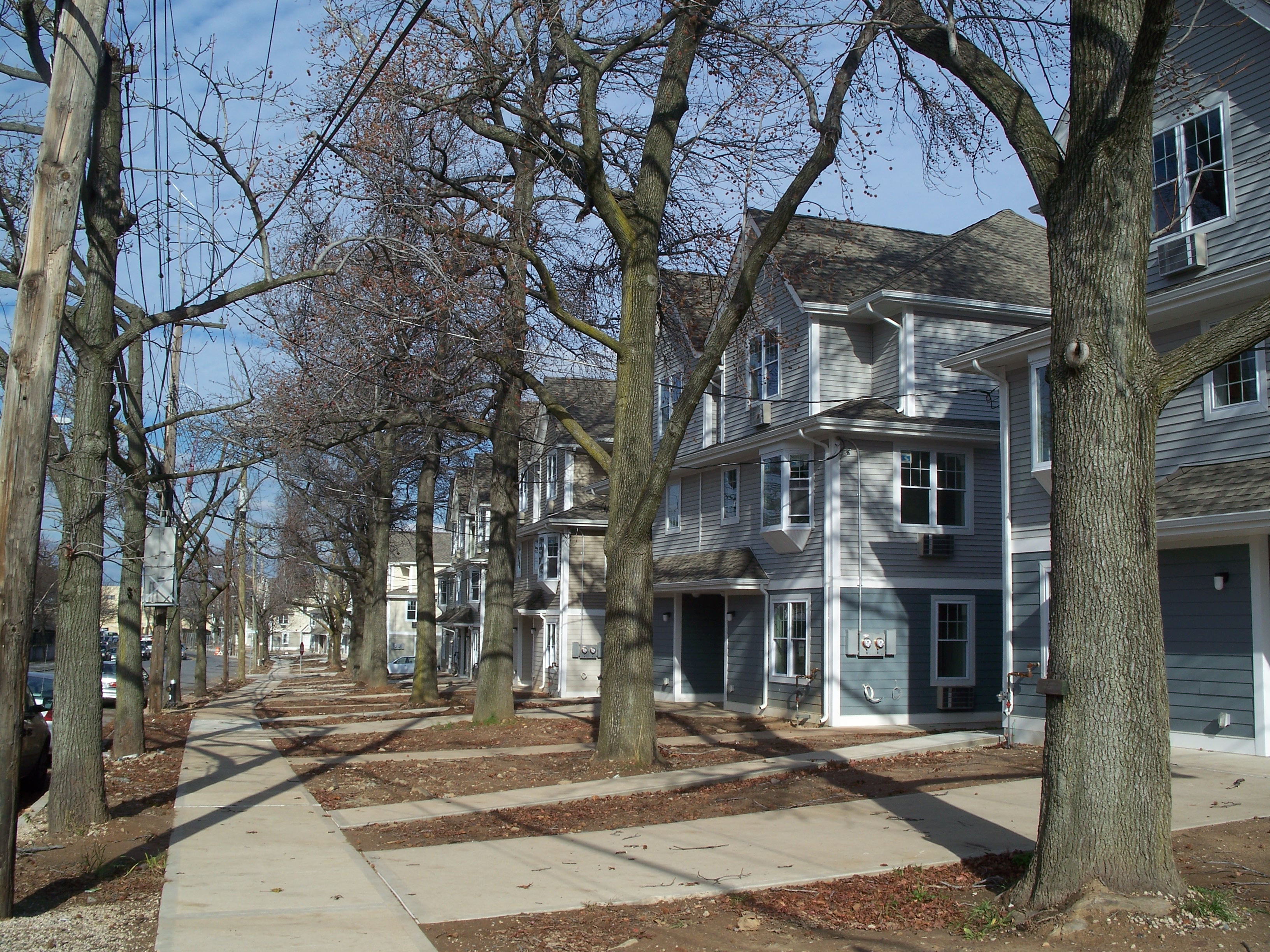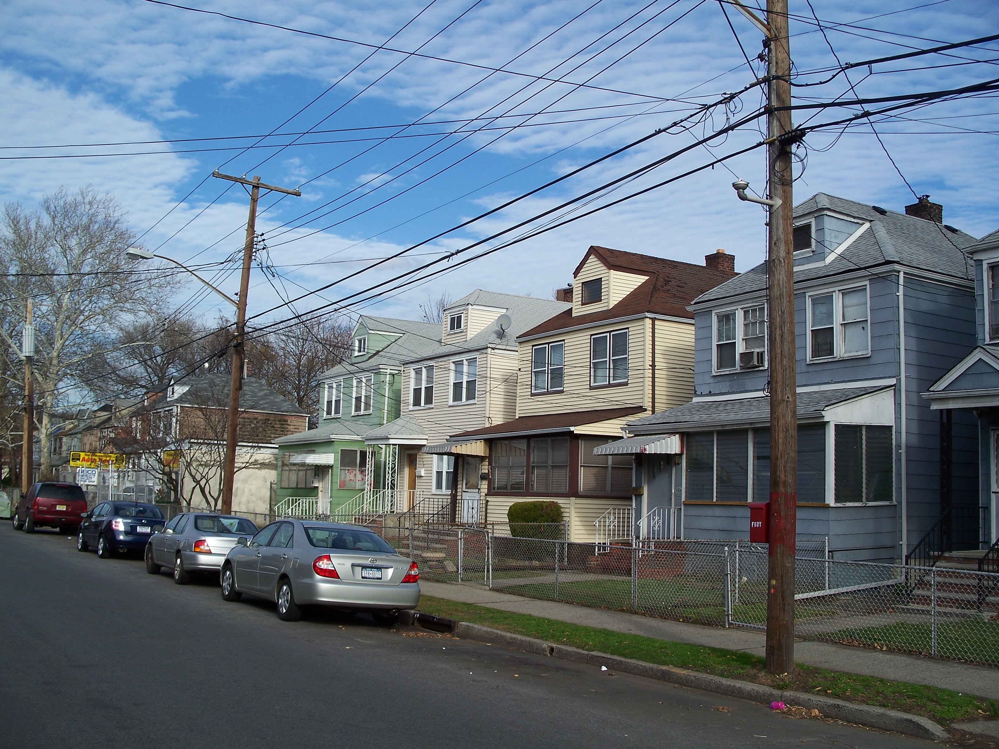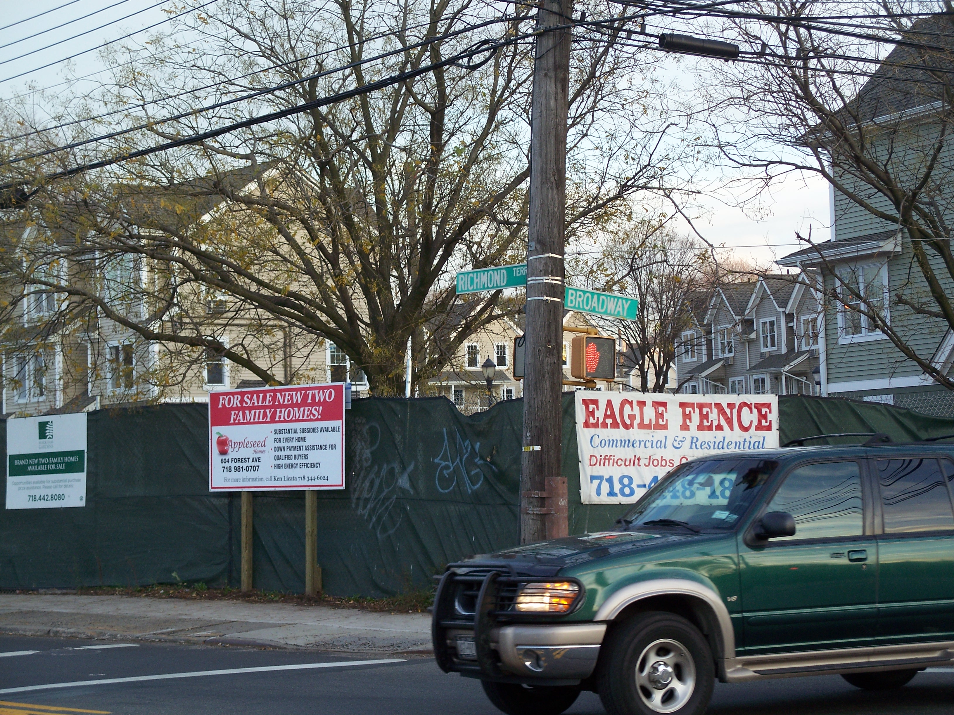 Markham Gardens sits just to the south of the rail line in West Brighton. It was originally built in 1943 as housing for workers in nearby shipyards that were extremely active during WW-II. The 23 two-story buildings were small and frail and were emptied in 2004 to be replaced by subsidized private redevelopment. The new Markham Gardens includes 240 mixed-income rentals, 25 attached two-family homes and senior housing. The hope is that the new buildings will solve the physical woes and the mixed-income structure will solve the spiritual woes, although urban renewal projects invariably involve insensitive displacement in an attempt to dissipate critical masses of poverty. A new rail station just steps away would be a nice amenity as well. (NYC.gov 2009, SILive.com 2009)