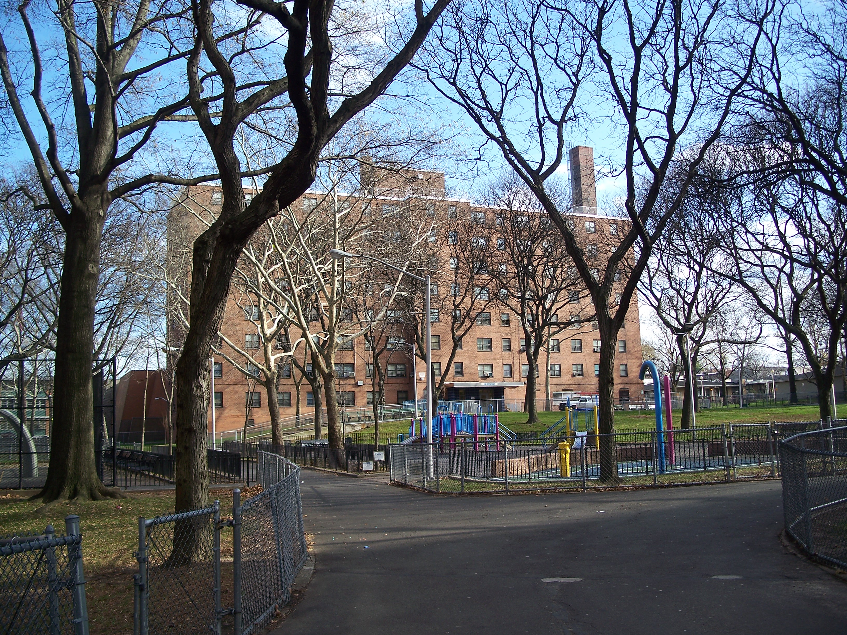 By contrast, West Brighton Houses I is an old school post-WW-II high-rise housing project that sits just to the southwest of Markham Gardens. It has 488 units and opened in 1962. West Brighton II was opened in 1965 just to the south with 144 units in one-story buildings. The West Brighton II buildings were boarded up when I visited in 2009.