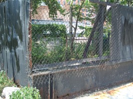 Tattered fencing protecting the north portal of the Brook Avenue tunnel