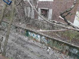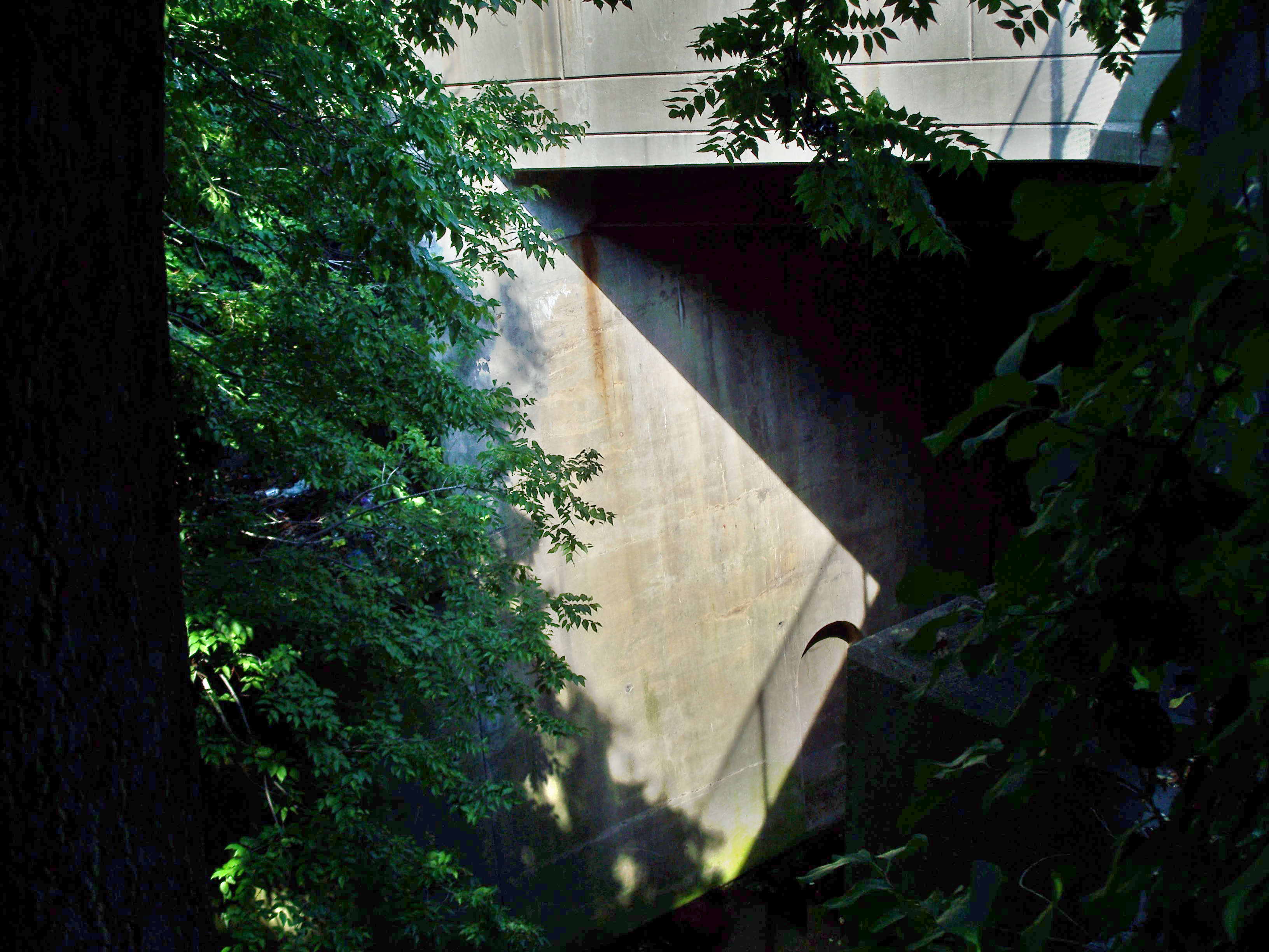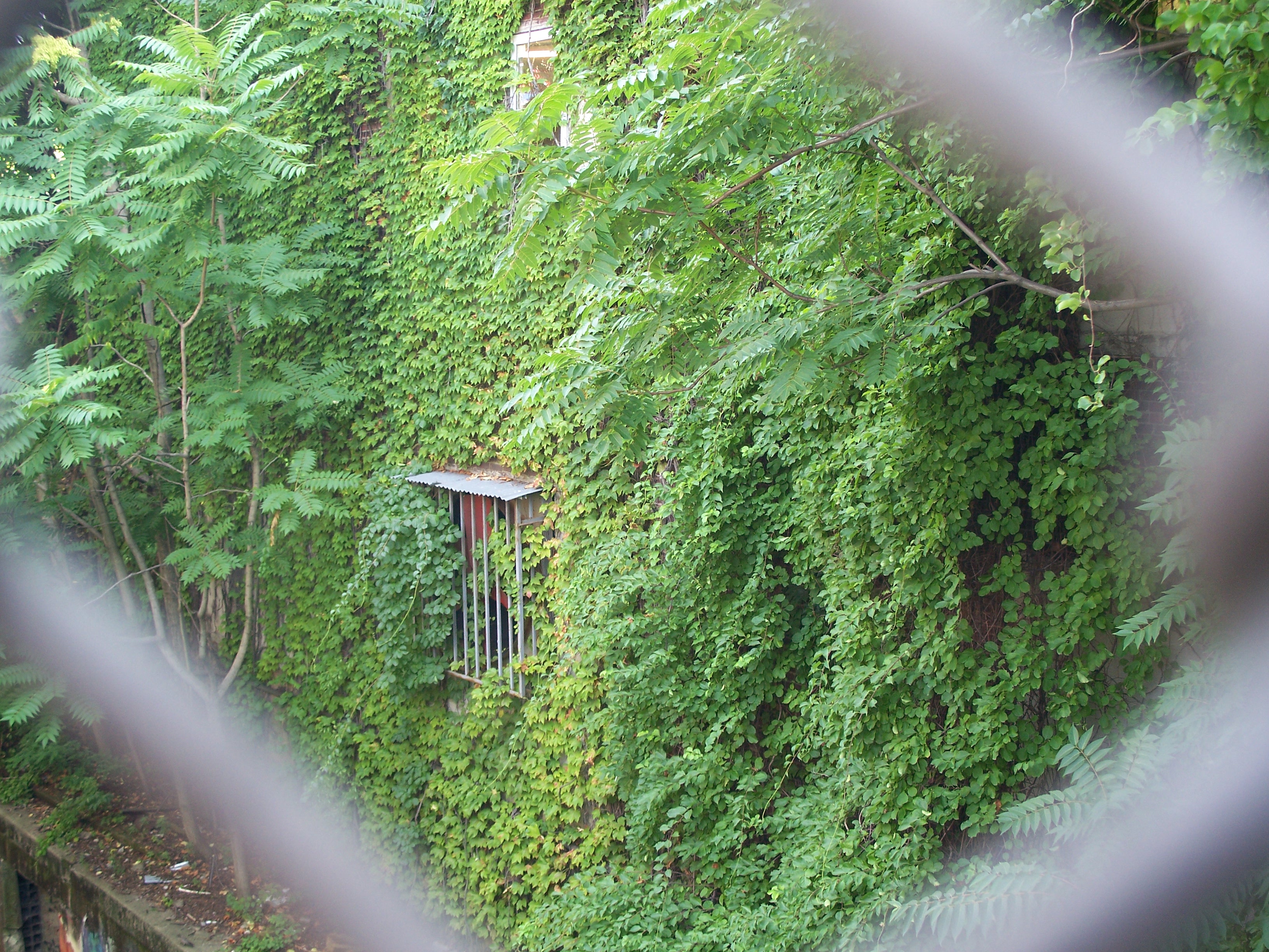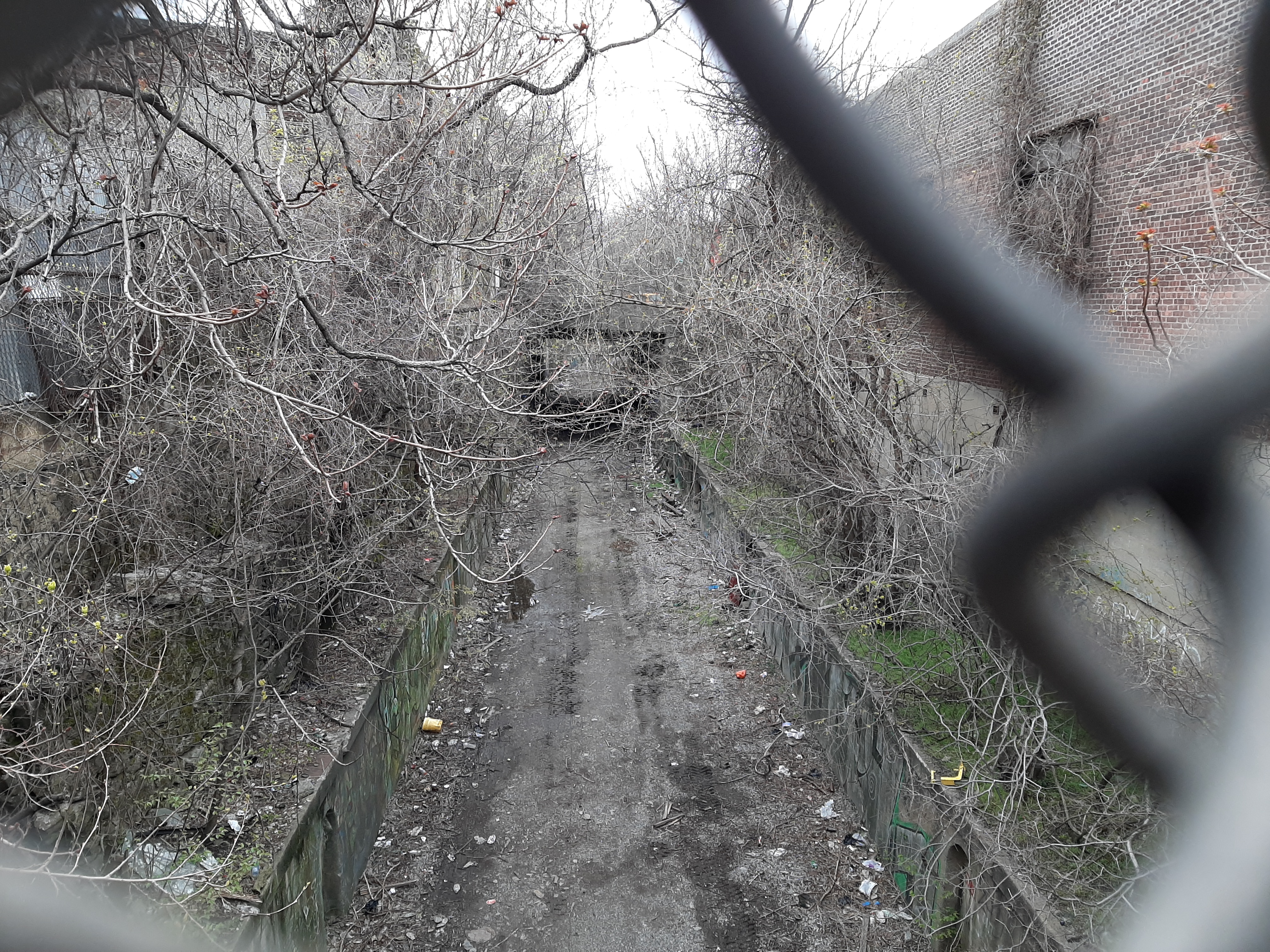 Vegetation and crumbling concrete between Wales Avenue and Concord Avenue