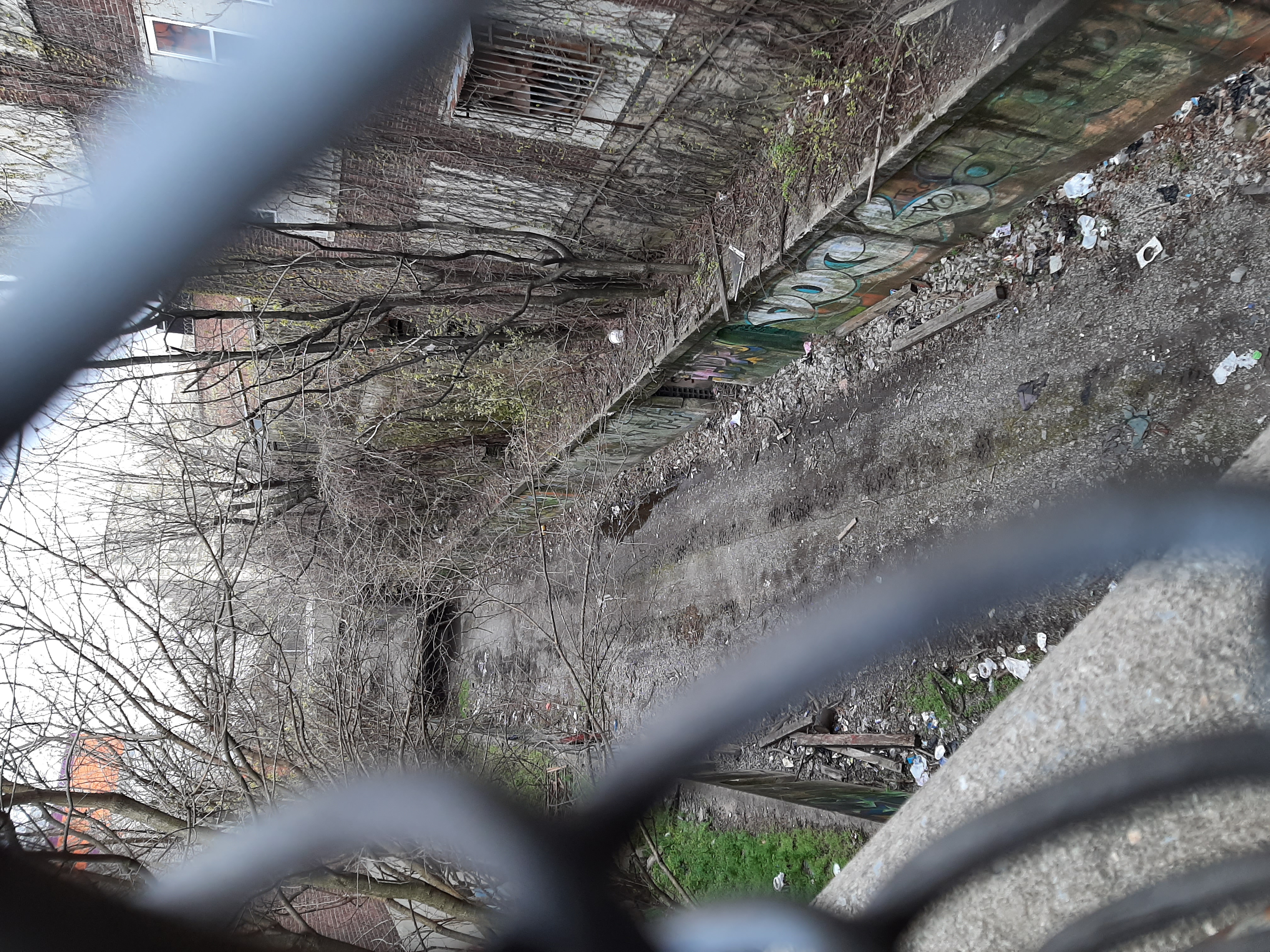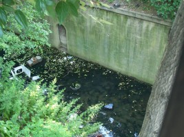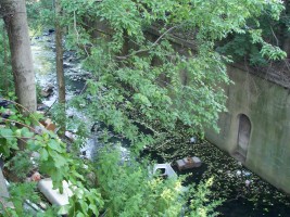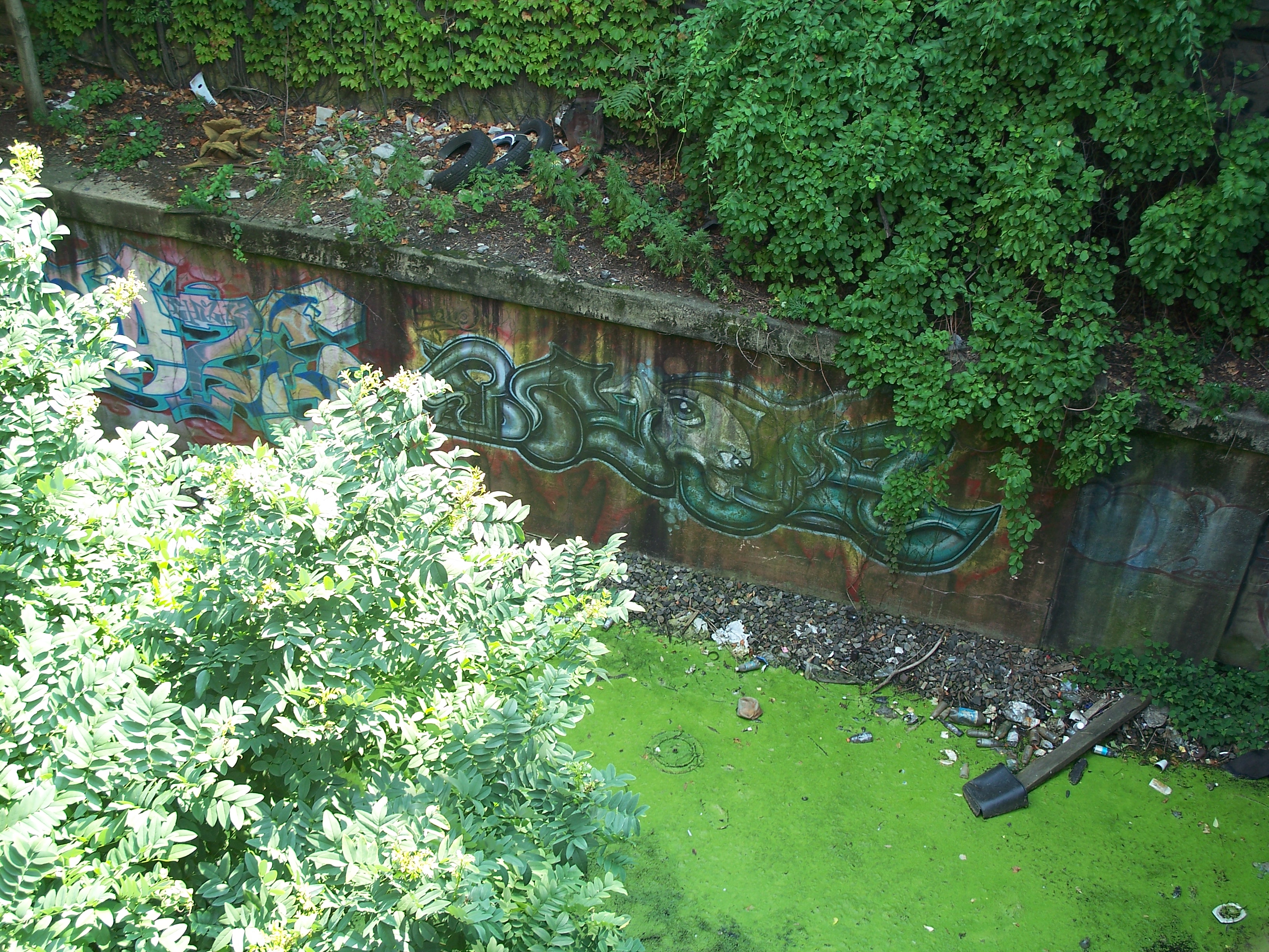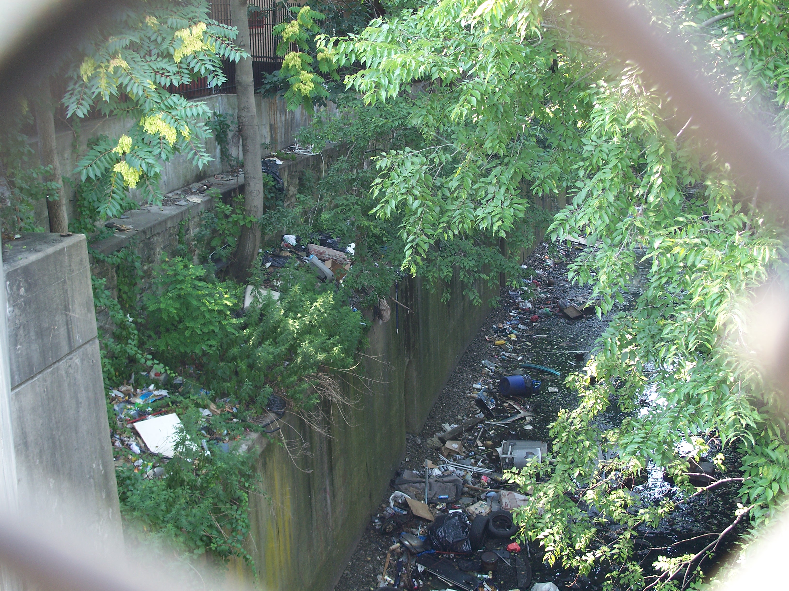 Vegetation and crumbling concrete between Wales Avenue and Concord Avenue