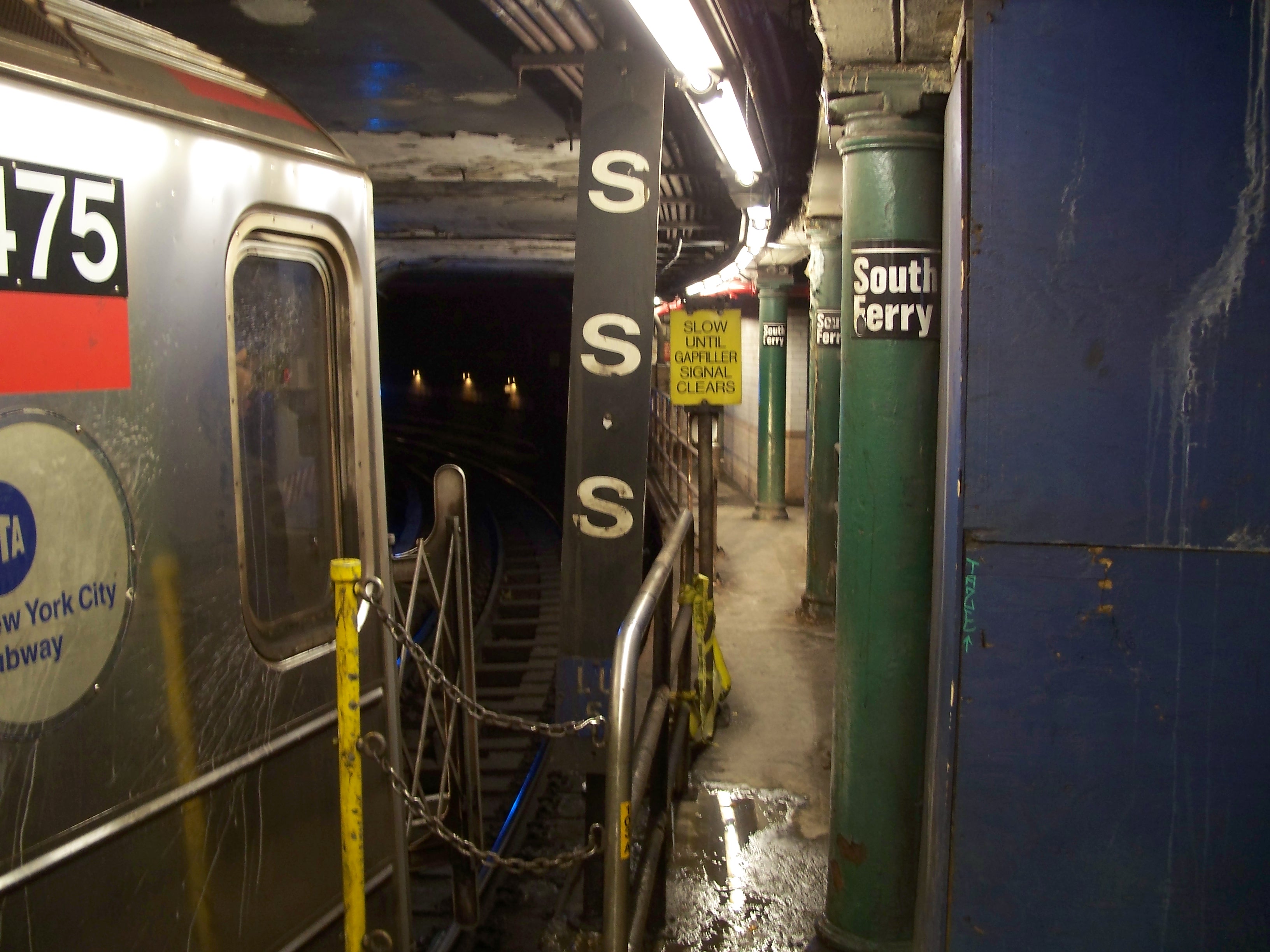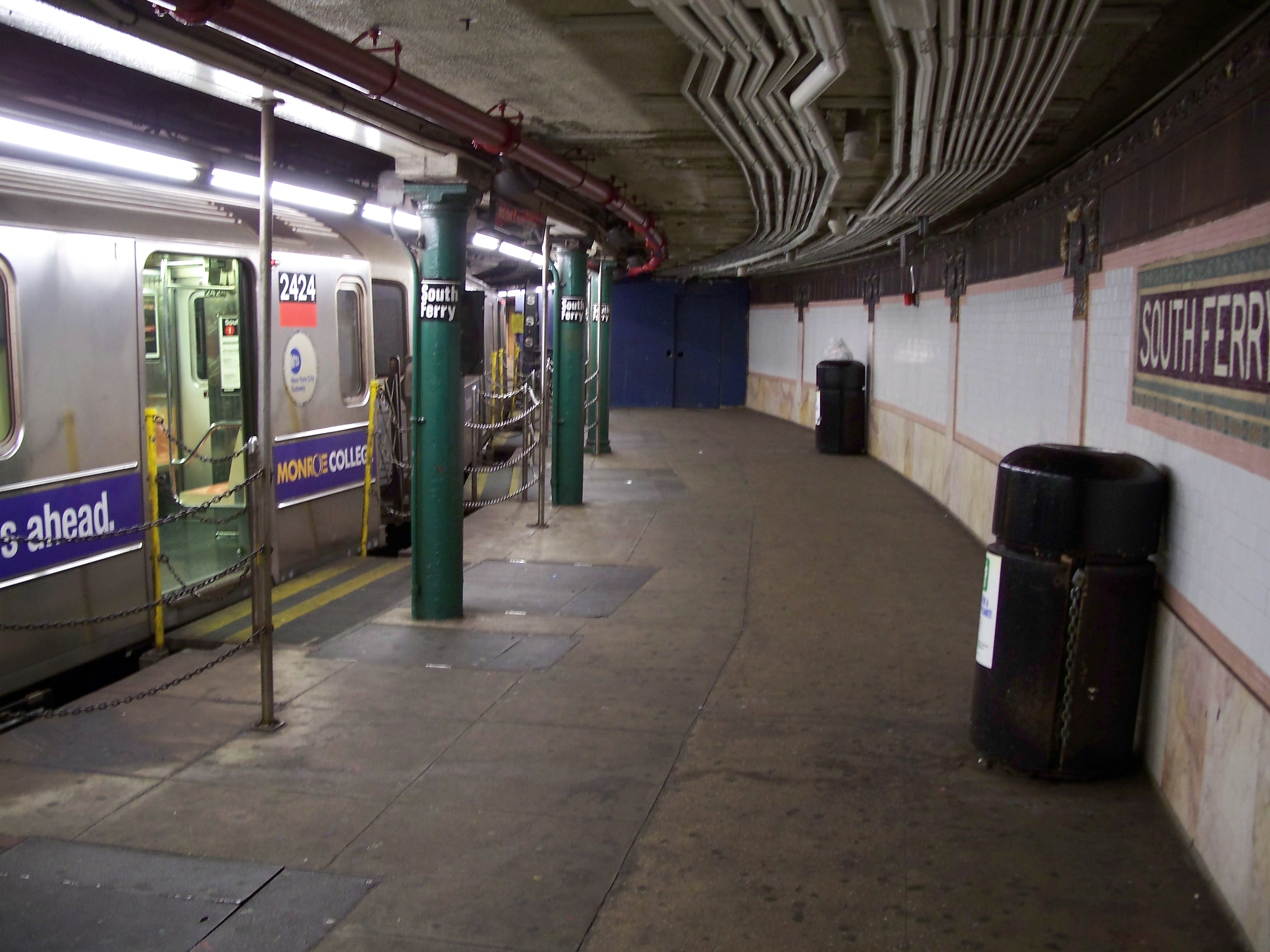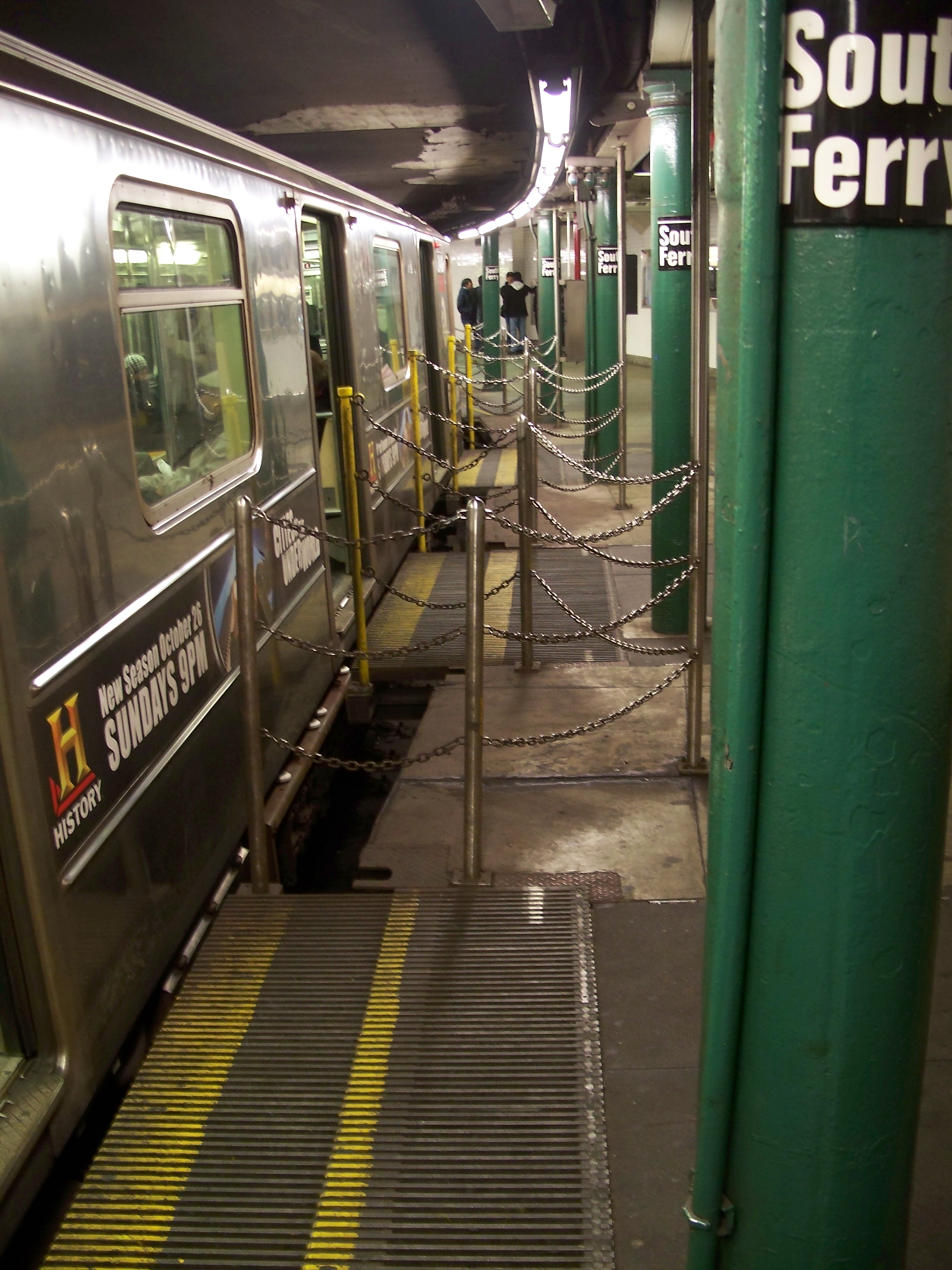 The South Ferry IRT subway station inner loop platform initially opened in 1905 with a second outer loop servicing the IRT West Side line when it arrived in 1918. The turnaround loops necessitated very short platforms and the curvature resulted in extremely noisy train approaches and departures. A new linear platform station opened in 1999. (reference, reference)