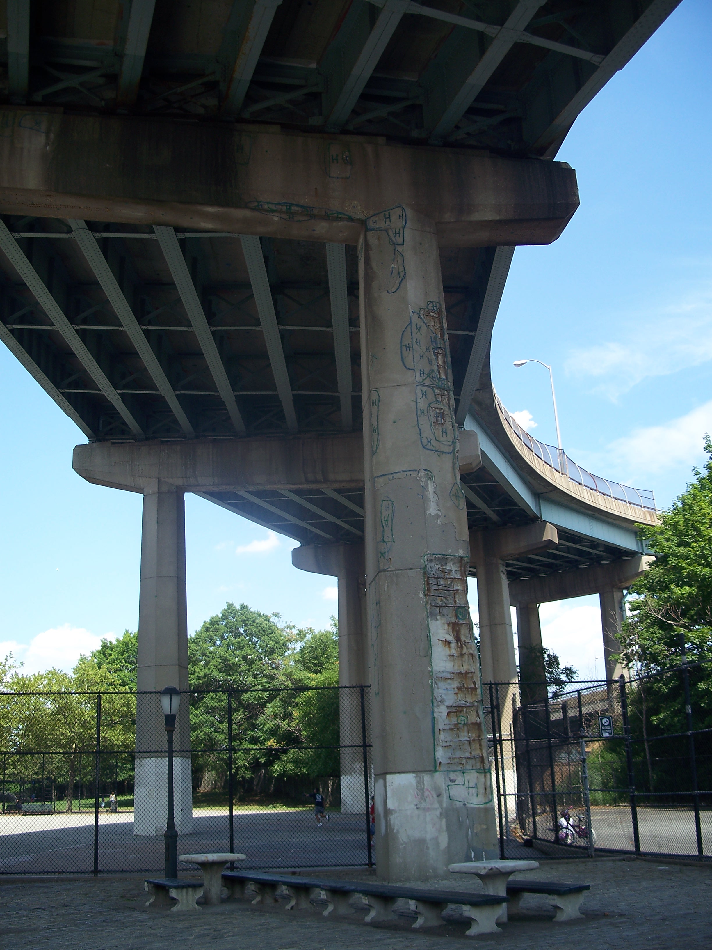Under the Shore Parkway ramps to the bridge on Fort Hamilton Parkway