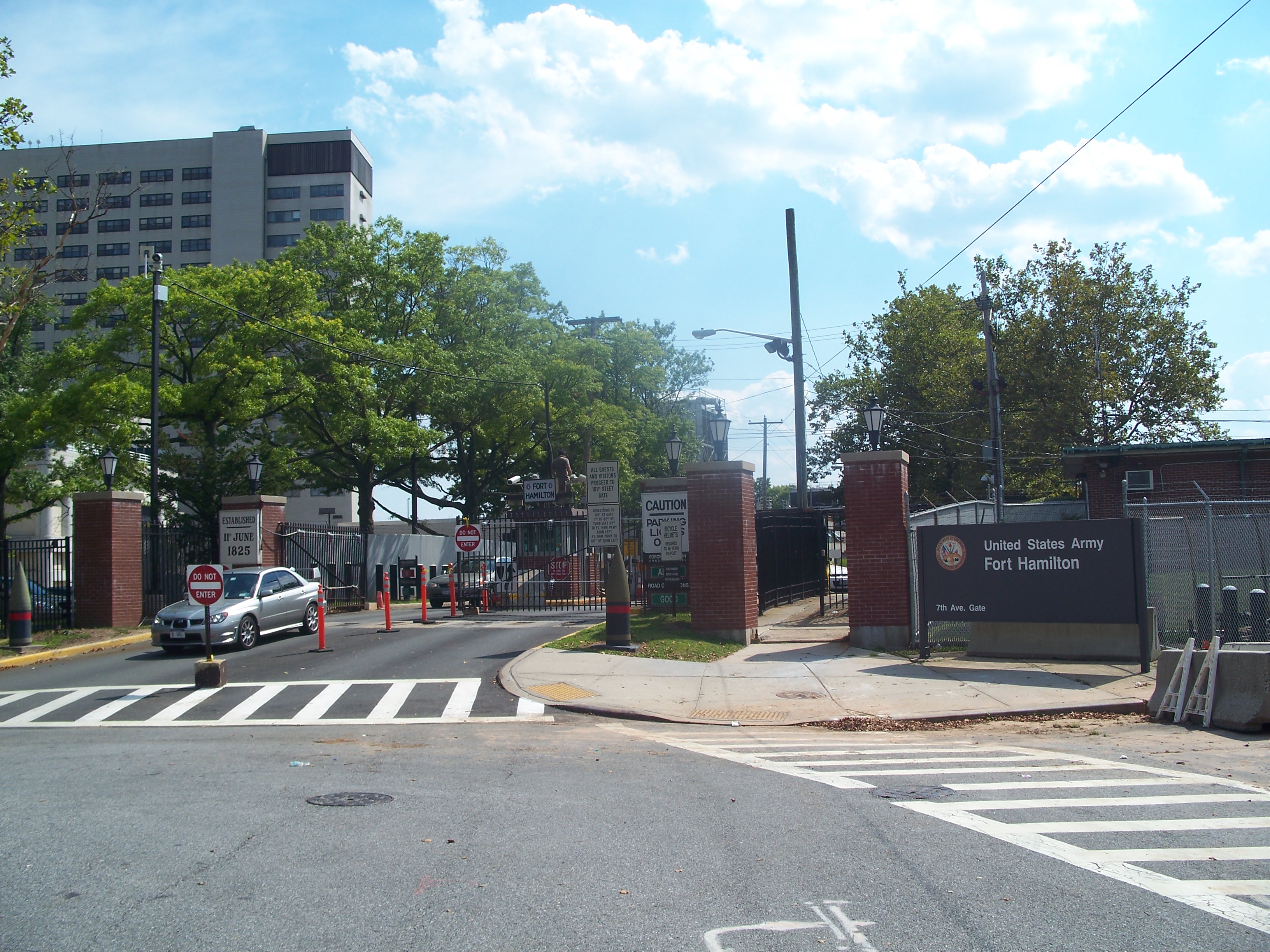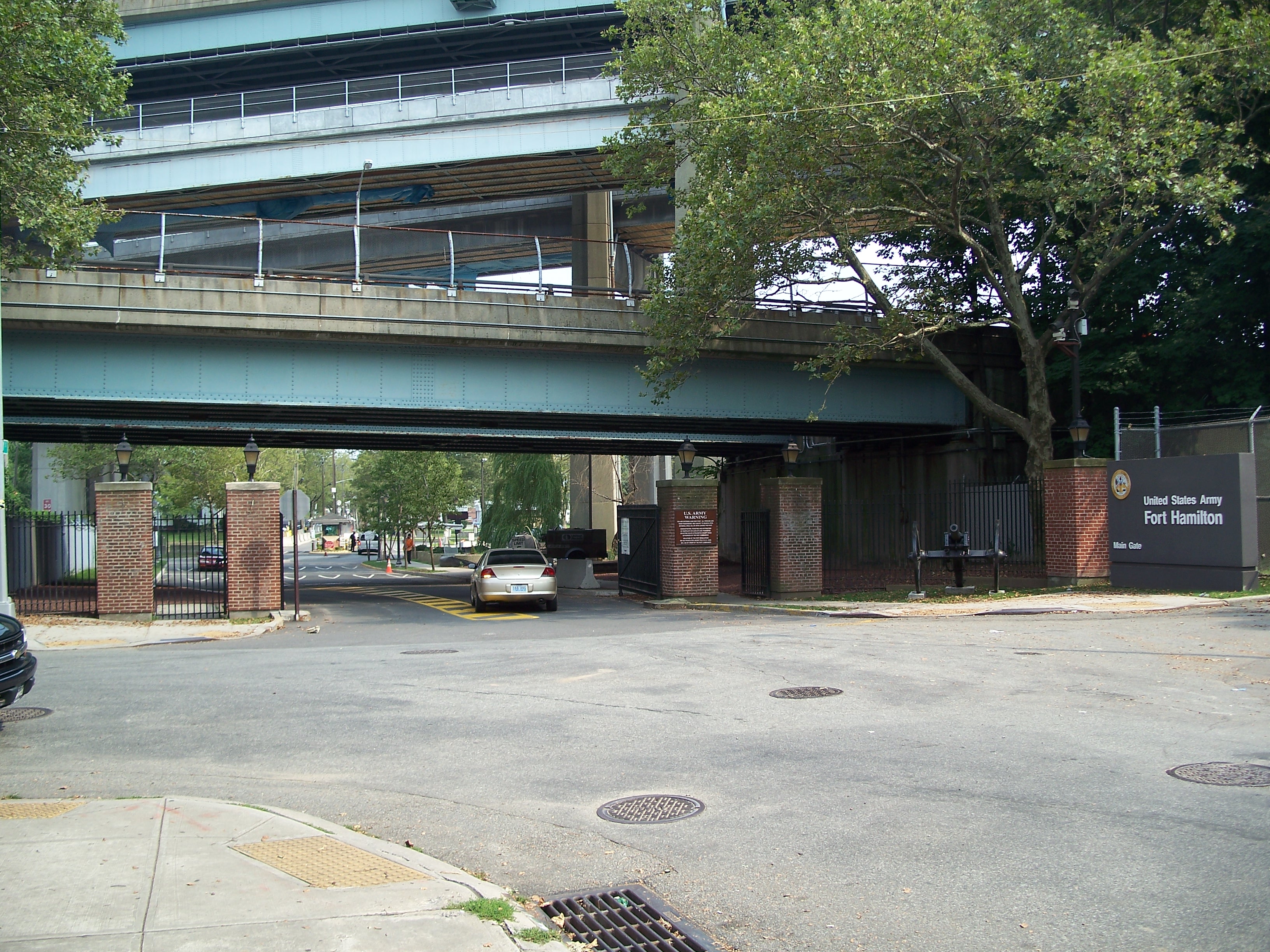 East entrance to Fort Hamilton, which sits under the north approach to the bridge