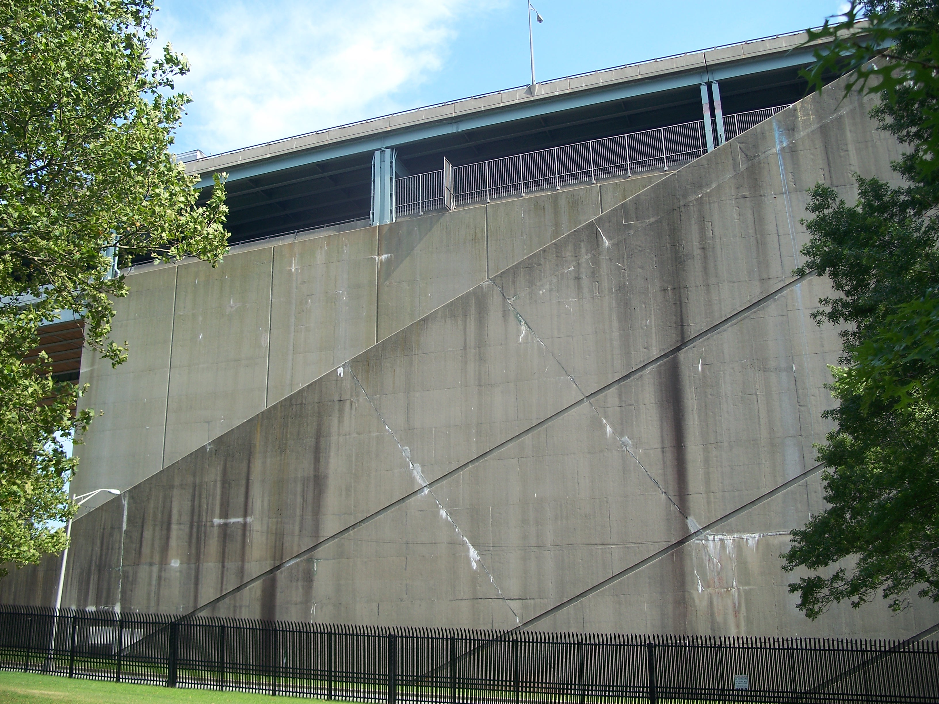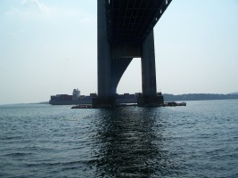 The anchorages and approaches are built over Fort Hamilton on the Brooklyn side and Fort Wadsworth on the Staten Island side. The northern pier was built over what was Fort Lafeyette, a small fort that sat just offshore. All three of these installations were part of the extensive infrastructure built in the 19th century to defend the harbor from sea-borne invaders, but they were made obsolete in the early 20th century by advances in munitions and, ultimately, the advent of strategic bombers and missiles. Fort Wadsworth was decomissioned and turned into a park. Fort Lafeyette was demolished for pier construction.