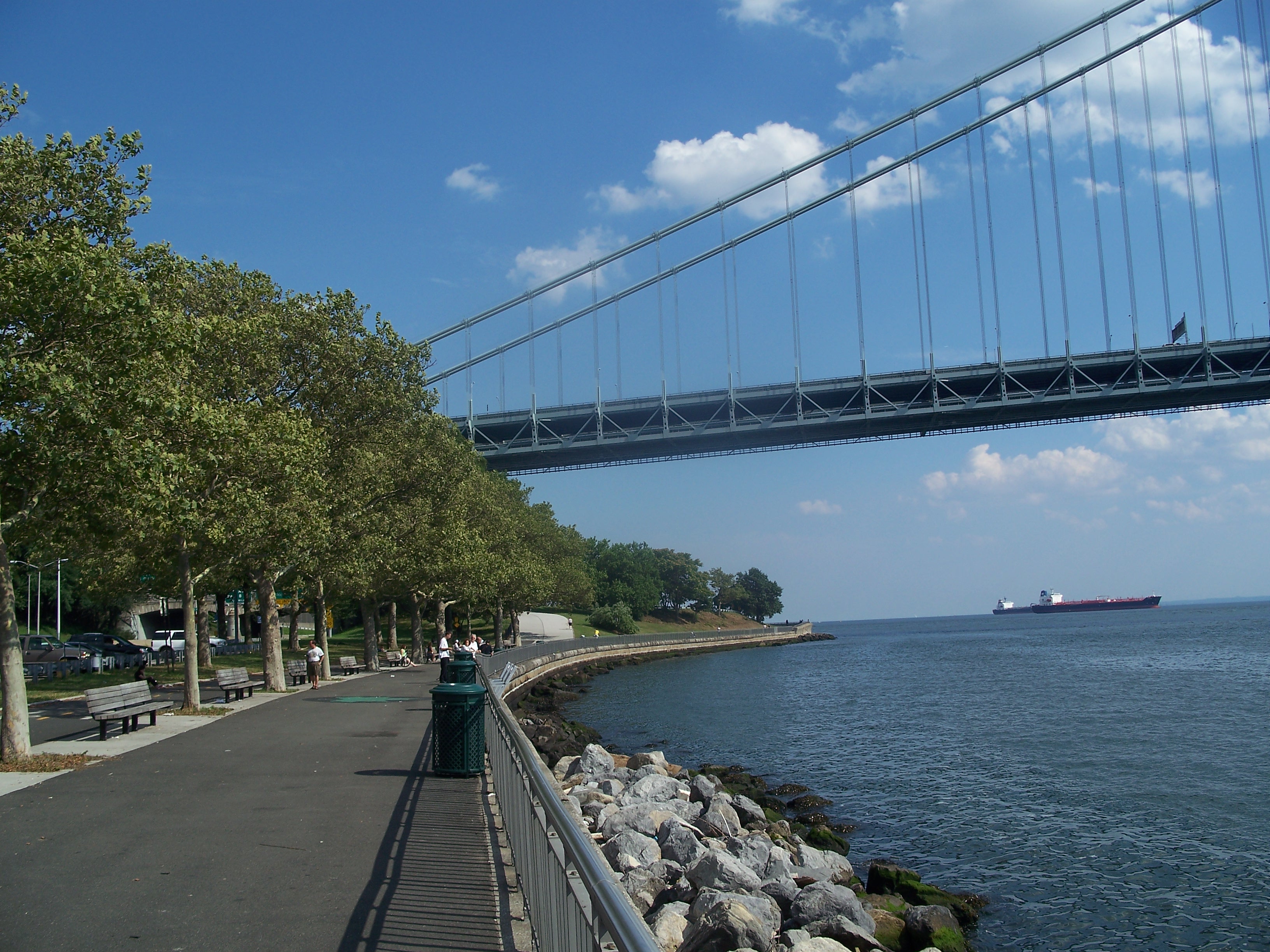 Aside from Fort Hamilton, the Brooklyn side of the bridge is surrounded by parks. John Paul Jones Park sits to the west of the Brooklyn anchorage. Shore Road Park runs along the Brooklyn waterfront all the way up to the Sunset Park piers and has a pedestrian path that passes under the bridge.
