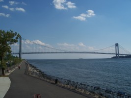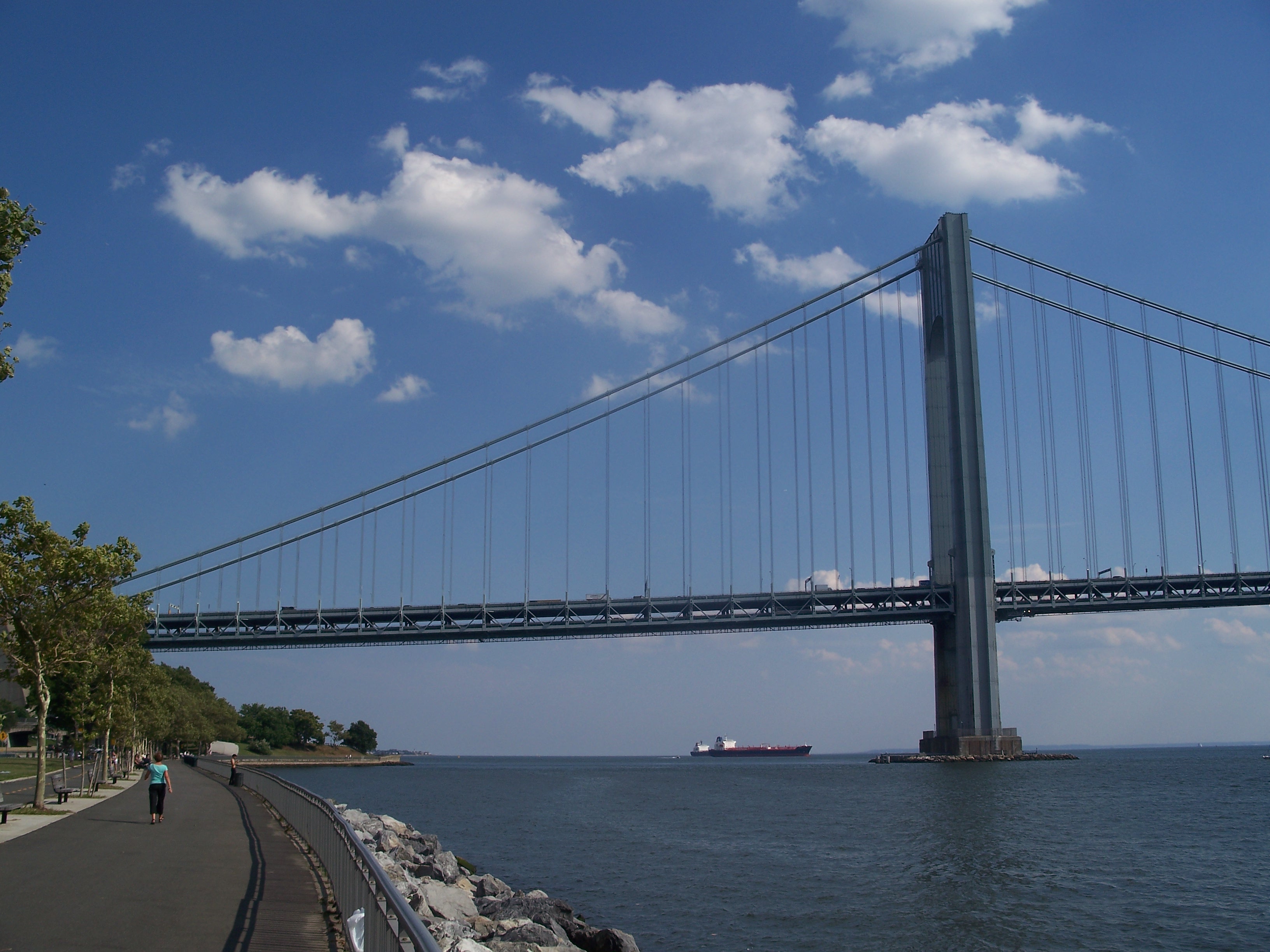 The bridge was named after the neglected Italian explorer despite some opposition rooted in subtle and not-so-subtle anti-Italian bias. Interestingly, the official bridge name is misspelled with one 'z' (Verrazano) rather than the more conventional double z's (Verazzano). I seem to recall from a 2005 exhibit on the bridge that this was due to a paperwork error in the Triborough Bridge and Tunnel Authority office.