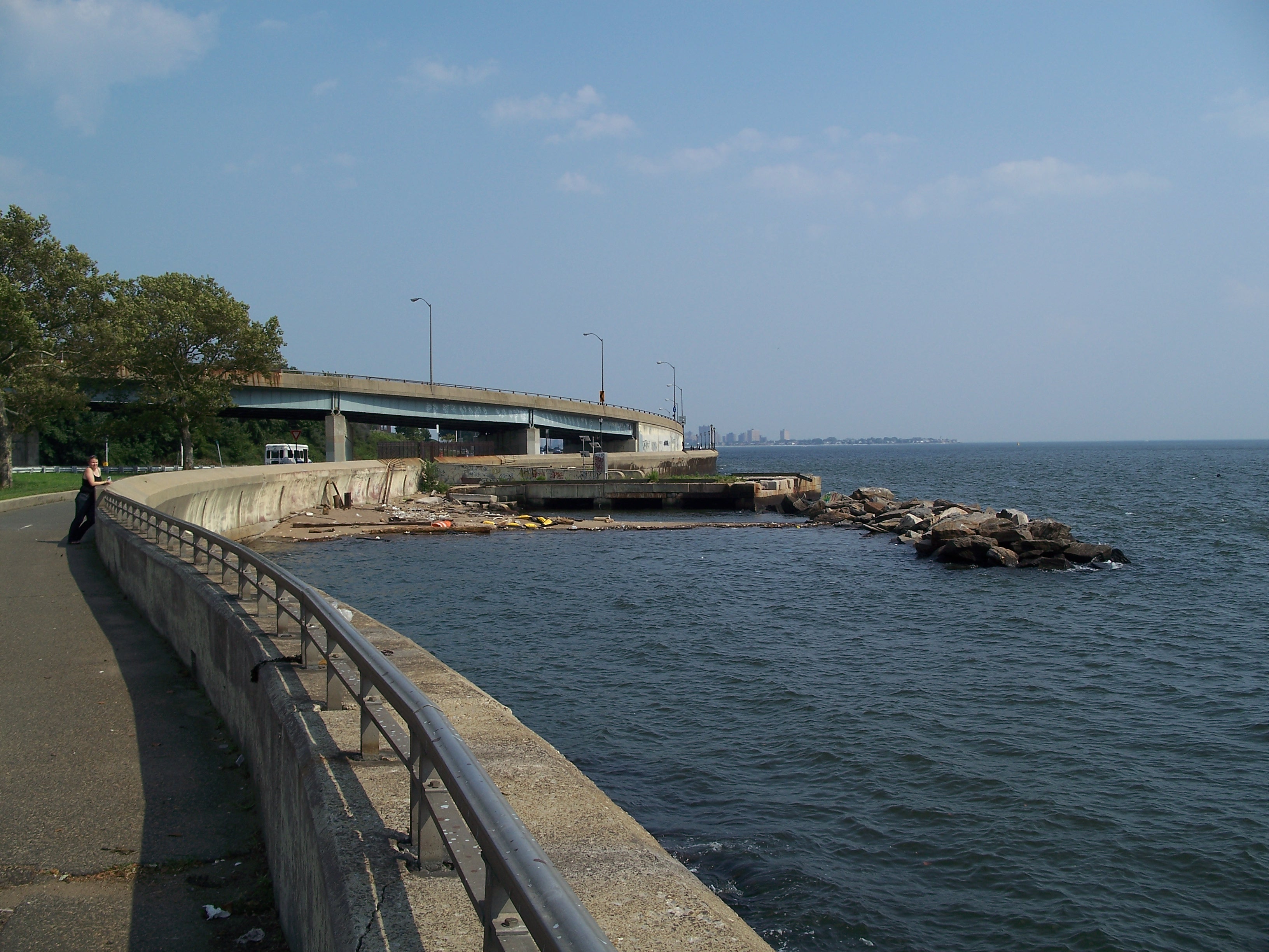 The Shore Parkway (part of the Belt Parkway) passes under the Northern side span of the bridge. The Shore Parkway was part of Robert Moses' extensive plan of limited-access arterial routes within the city that was unveiled in 1930. Construction on the 36-mile Belt Parkway began in 1934 and the route was dedicated on June 29, 1940, with a two-mile section in Sheepshead Bay following a year later due to delays caused by community opposition.