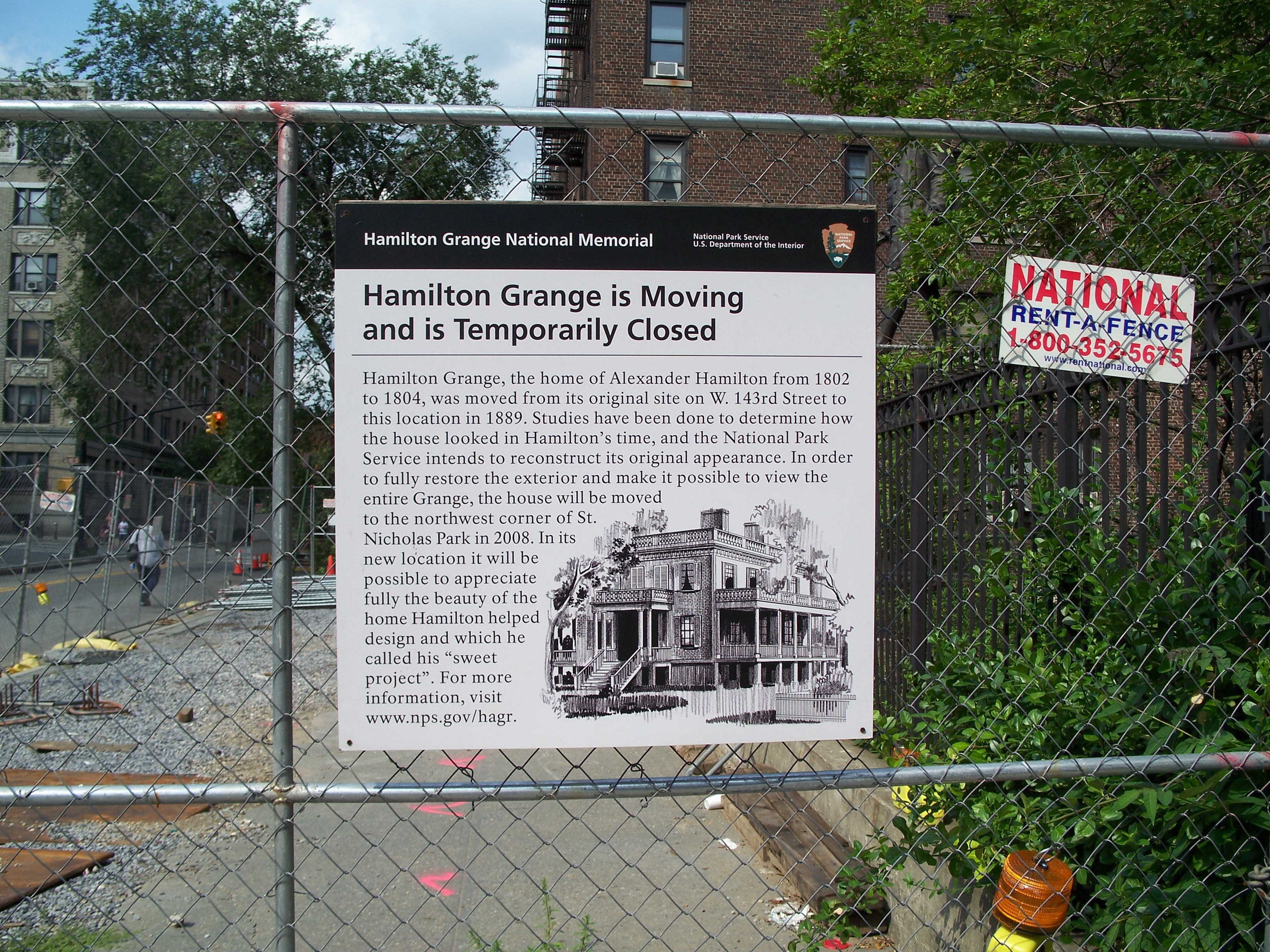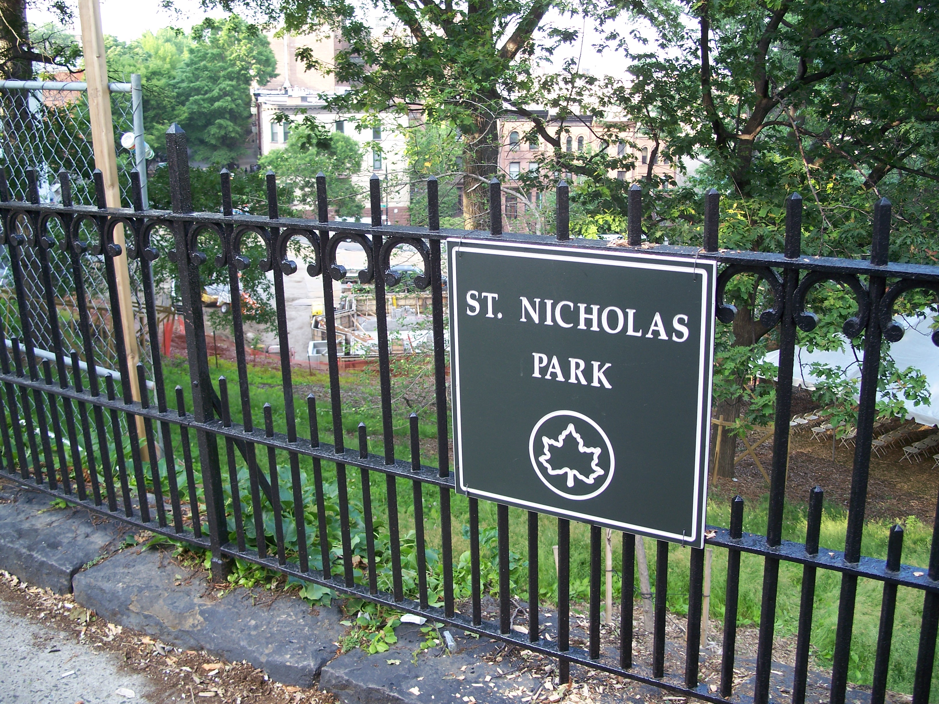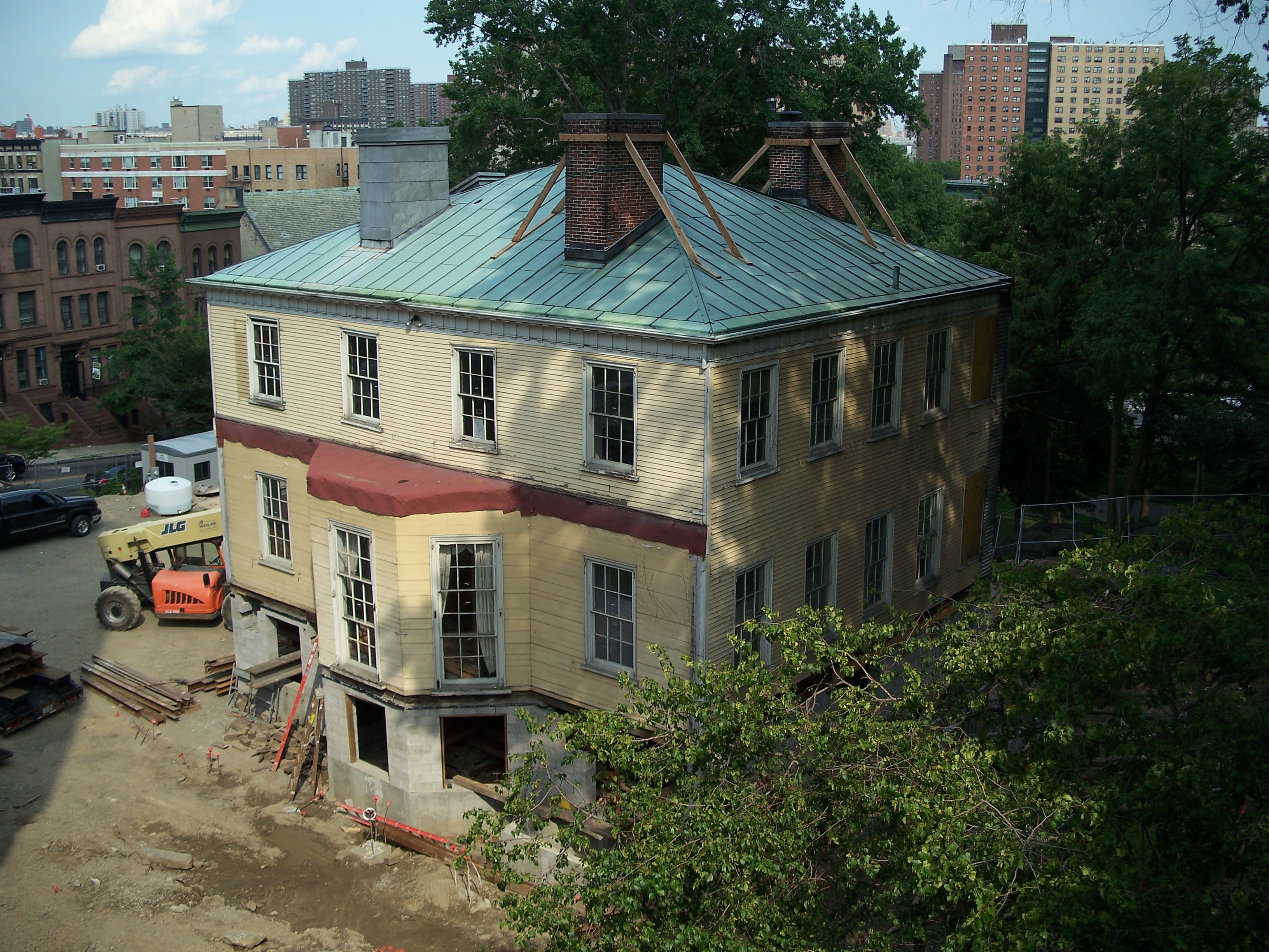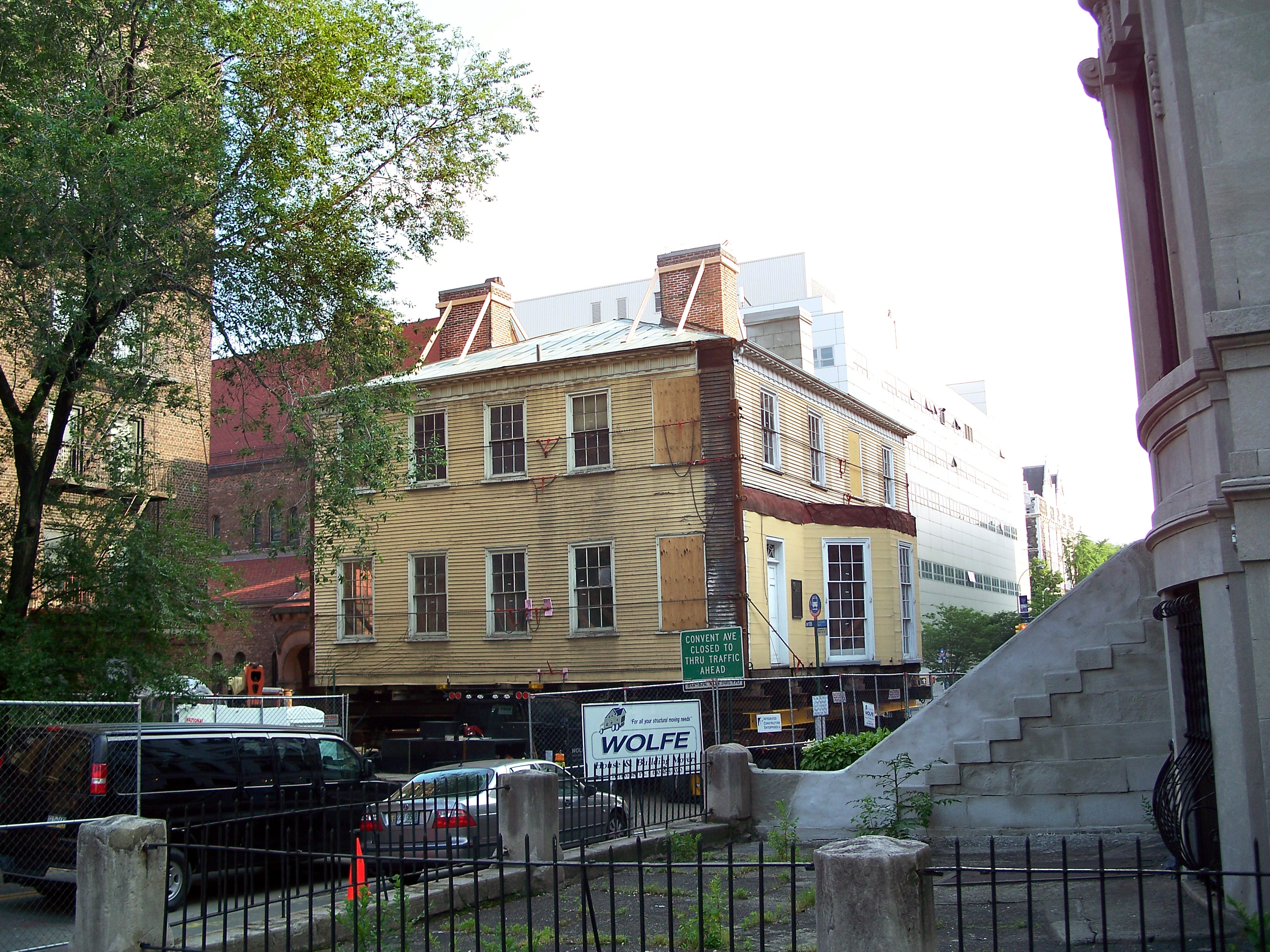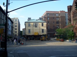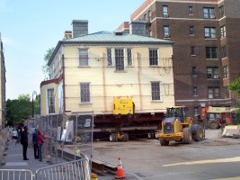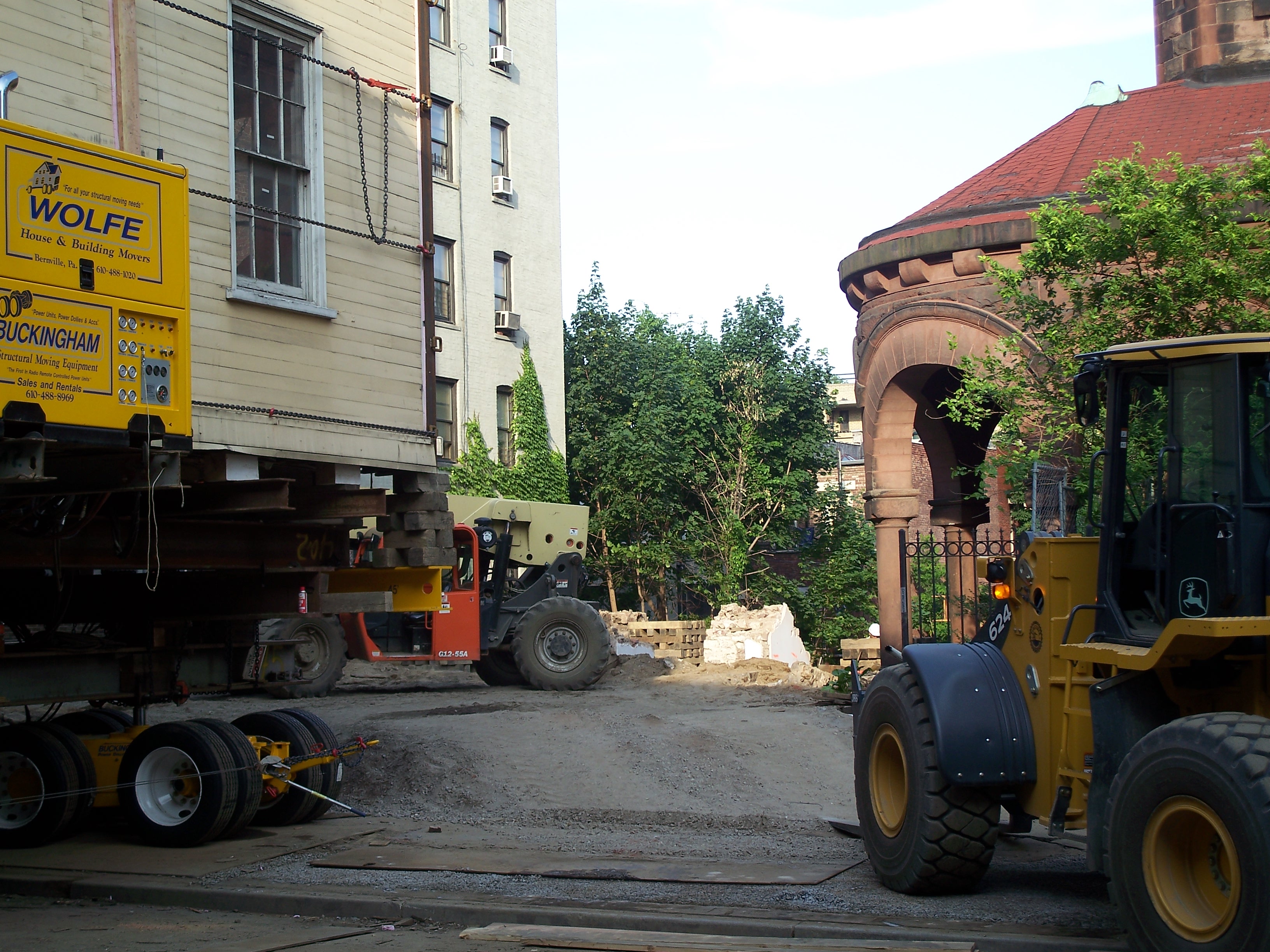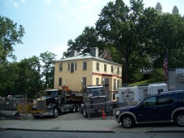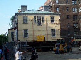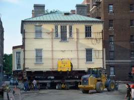 In June of 2008 the house was moved to a new spot on the northwest corner of St. Nicholas Park and restored to something resembling its original beauty. The move was an event in itself, with the house having to be lifted over the loggia of the church to Convent Avenue, then rolled a block over to 141st Street and down a 6% grade hill to it's new home in the park below.