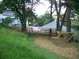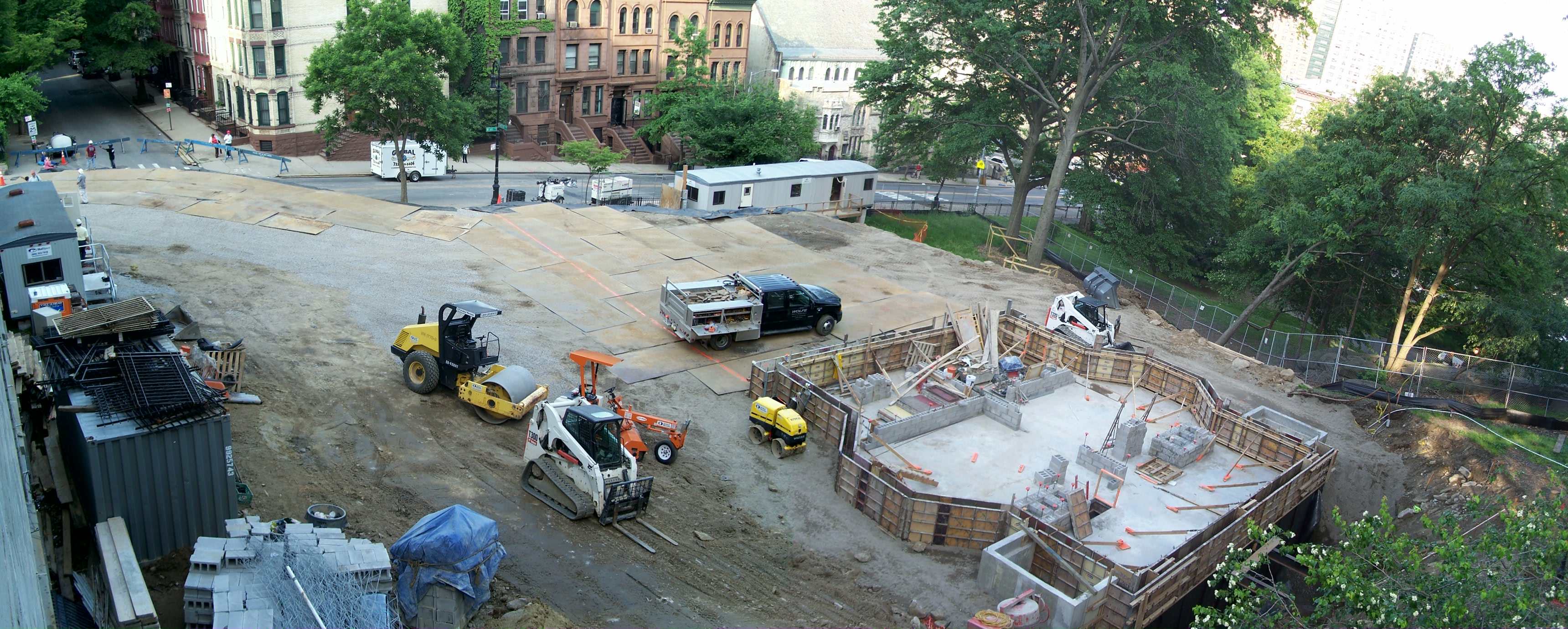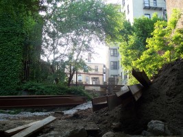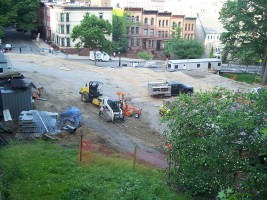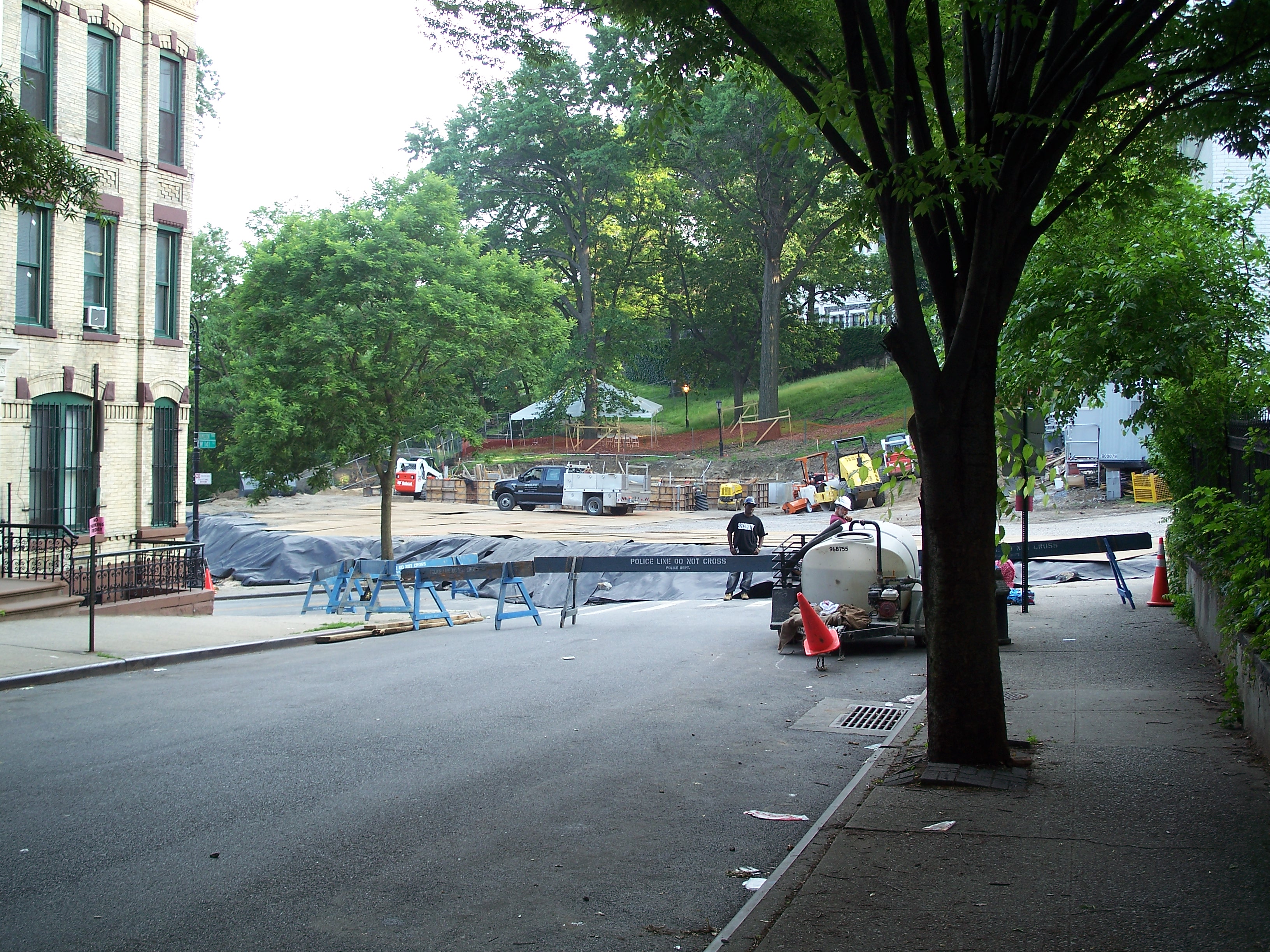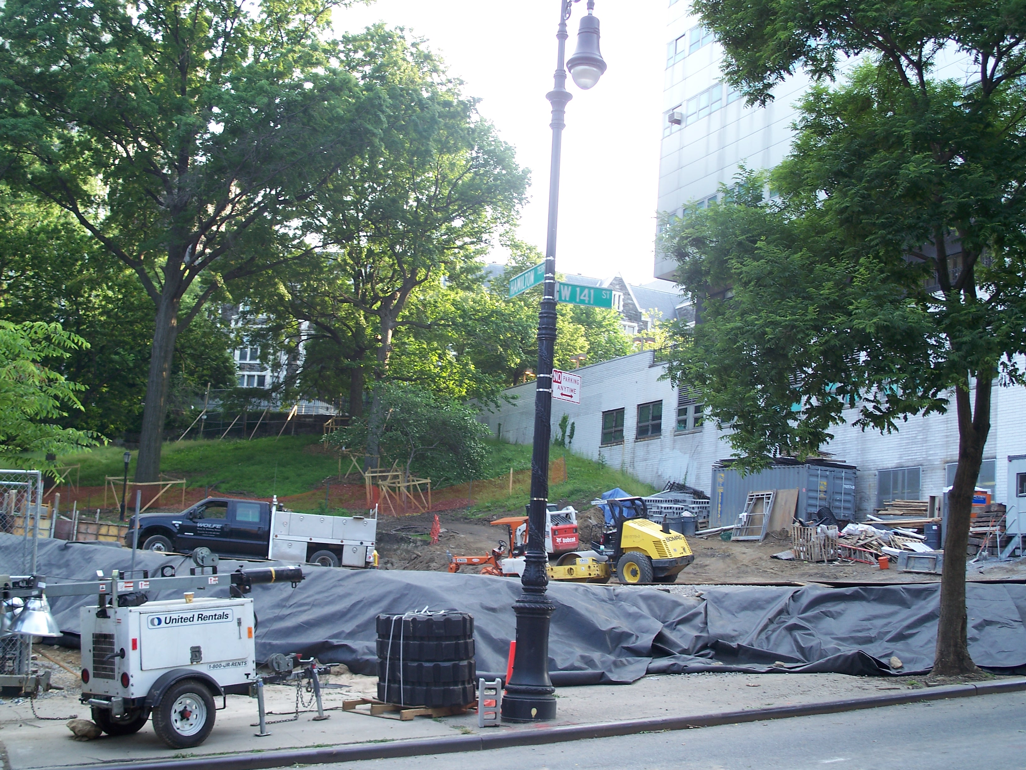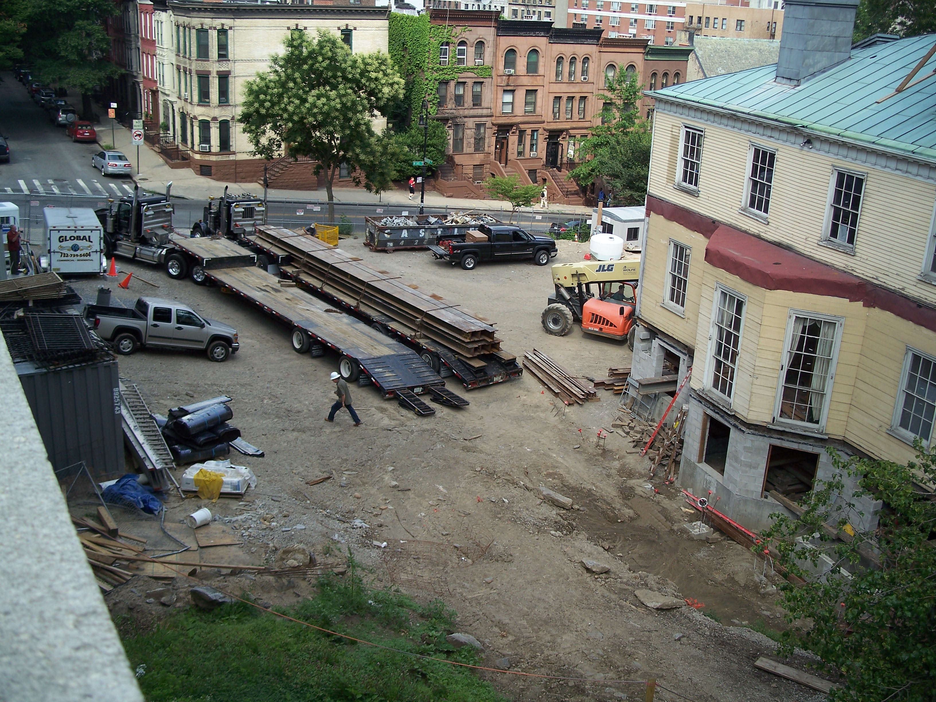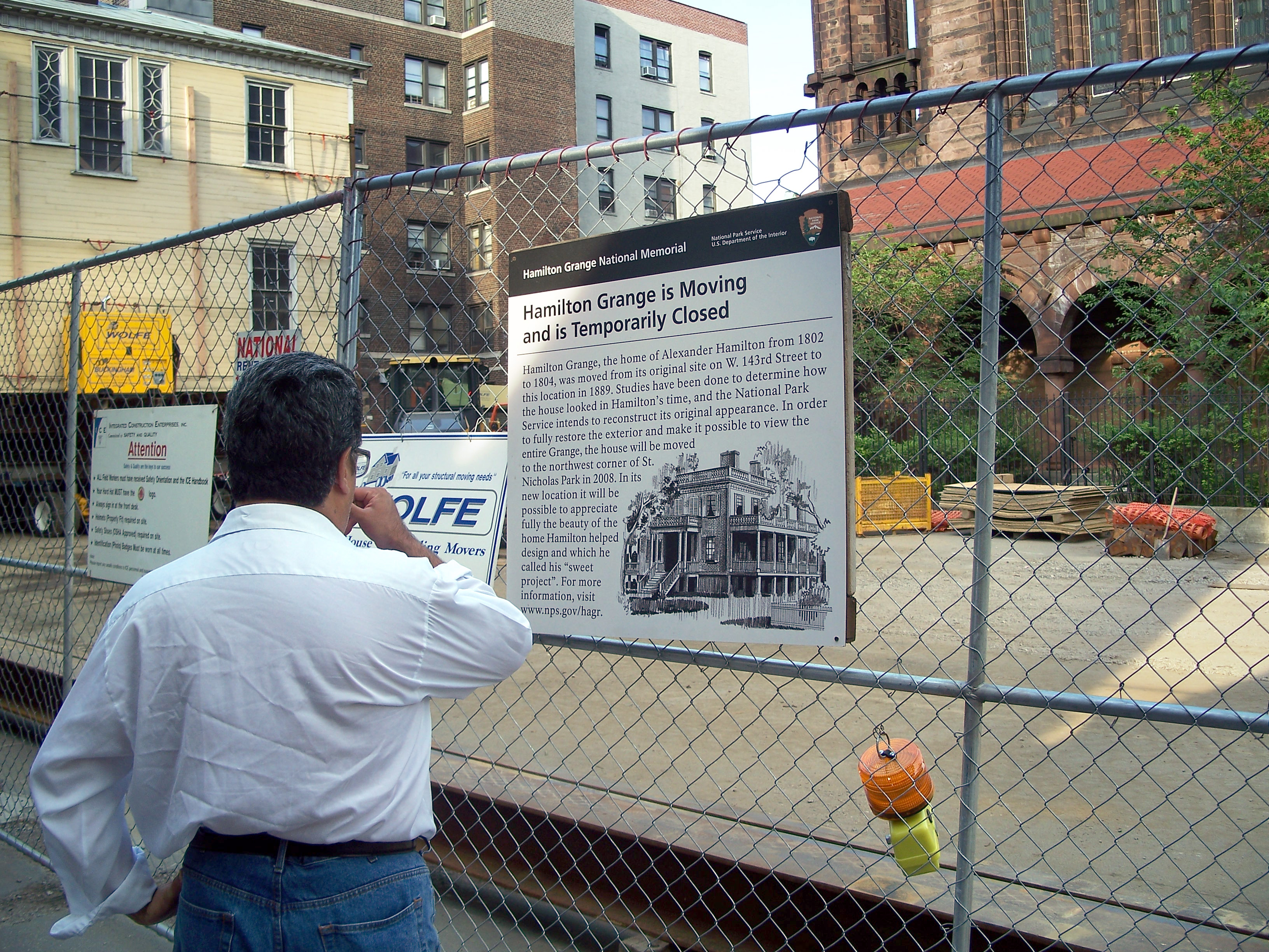 In June of 2008 the house was moved to a new spot on the northwest corner of St. Nicholas Park and restored to something resembling its original beauty. The move was an event in itself, with the house having to be lifted over the loggia of the church to Convent Avenue, then rolled a block over to 141st Street and down a 6% grade hill to it's new home in the park below.