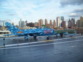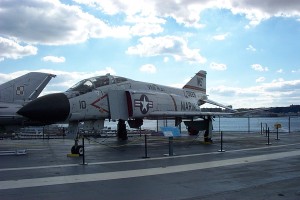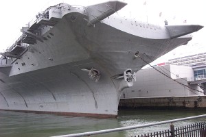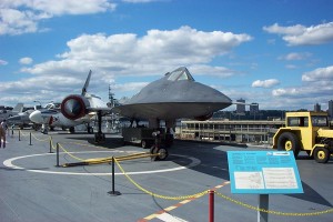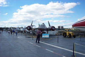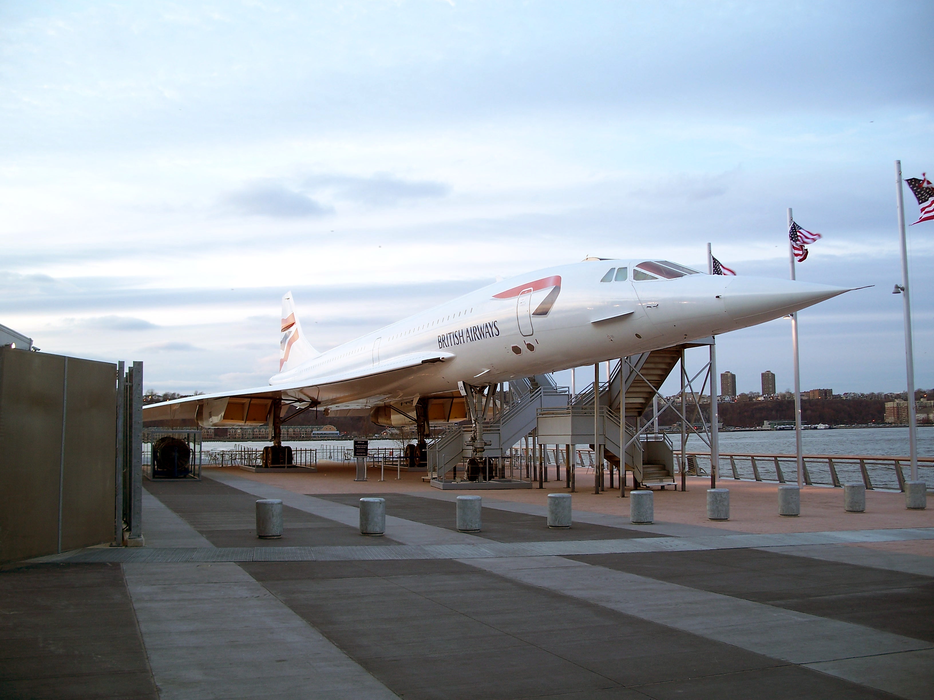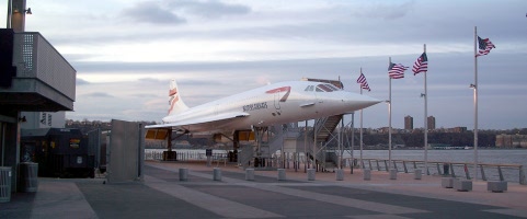 When the Intrepid Museum reopened in 2008, a new addition was a decomissioned British Airways Concorde. The Concorde was one of only two commercial jetliners that traveled faster than the speed of sound. It had a cruising speed of 1,350 MPH, a cruising altitude of 60,000 feet, and could travel between New York and London in around three and a half hours.