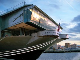 The Intrepid Sea, Air and Space Museum is located on the banks of the Hudson River on Pier 86, 12th Avenue at 46th Street in Manhattan.