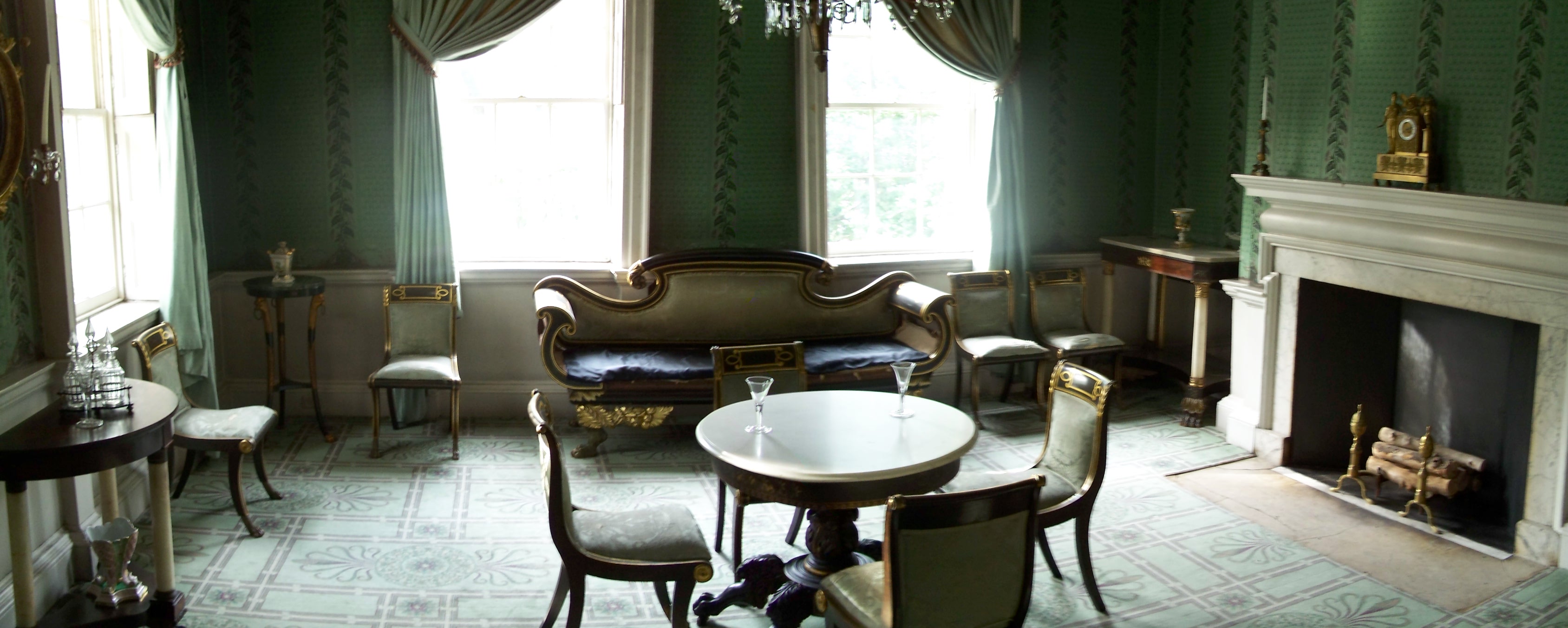 This drawing room on the rear of the house was used for parties, dances, banquets, concerts and other social events.