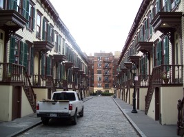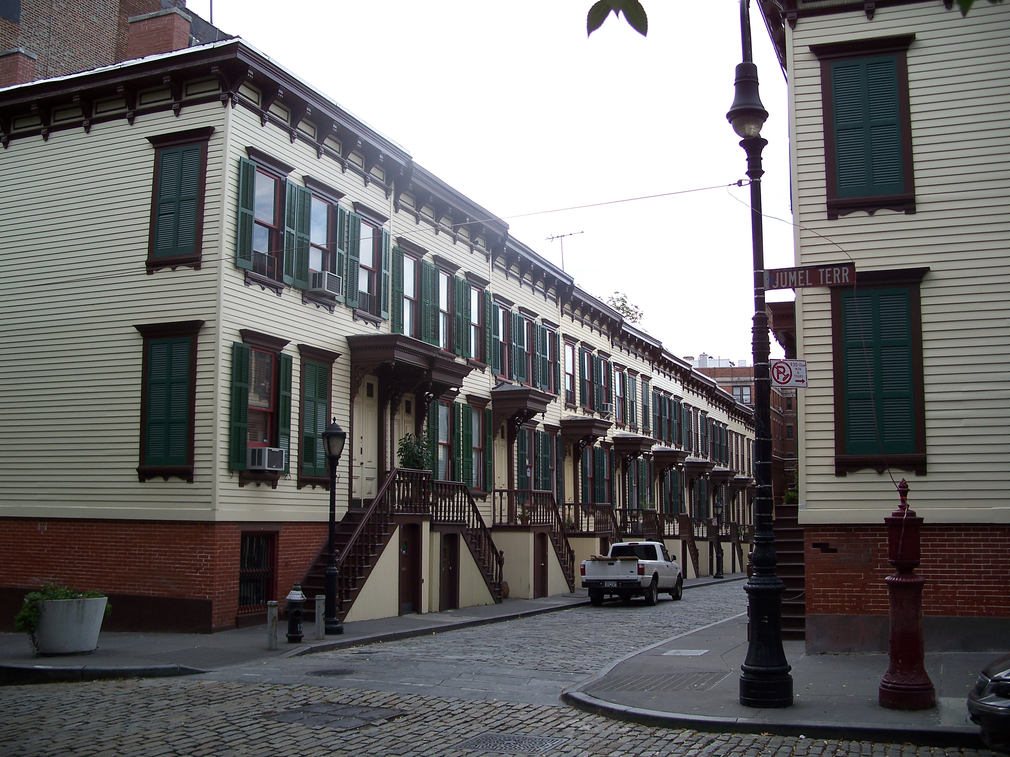 The Morris-Jumel House is part of a historic district that also contains this street of lovingly maintained period row houses on Sylvan Terrace just to the West of the Morris-Jumel House.