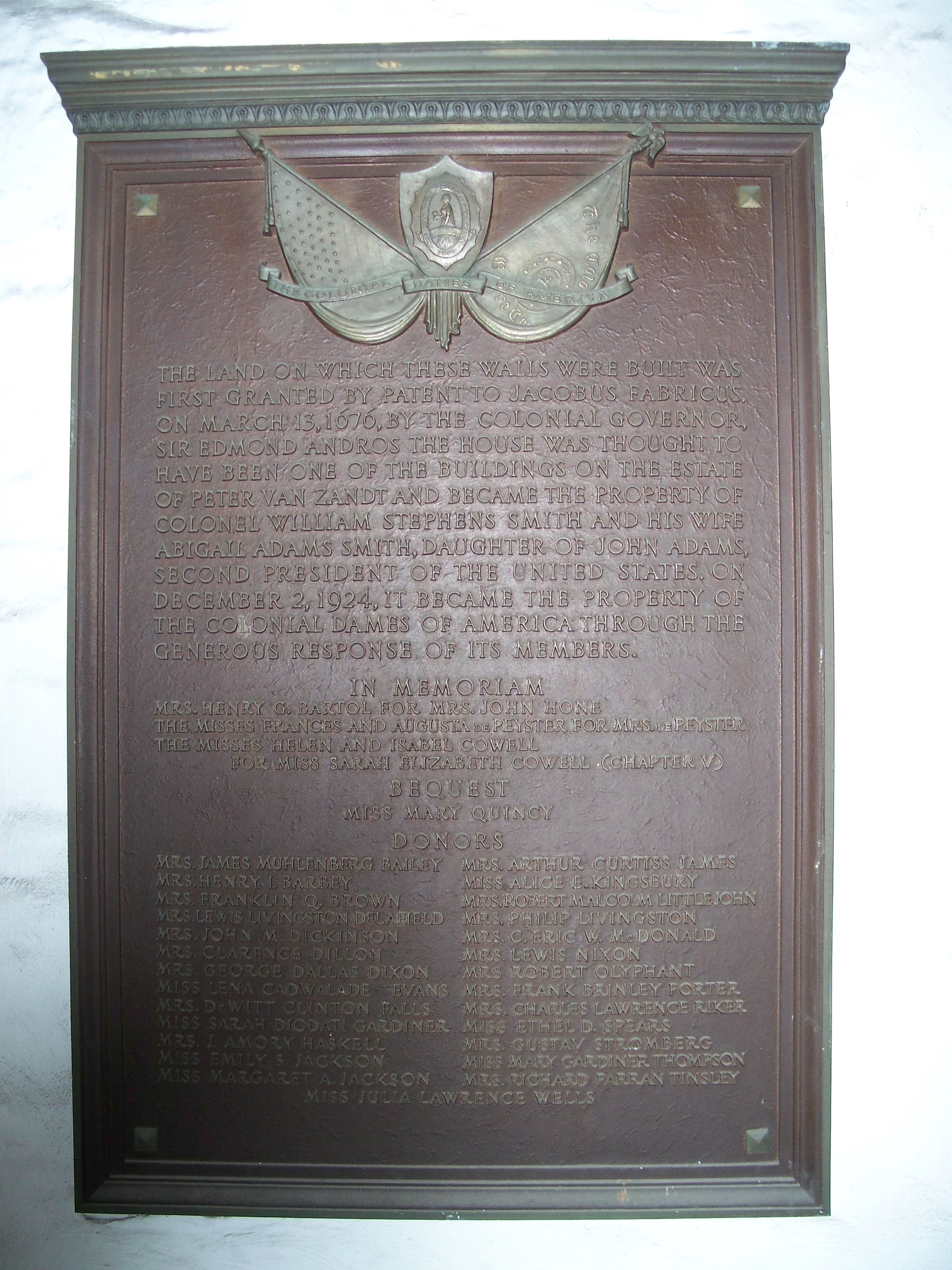 In 1919, the house was leased to Jane Teller for use as an antique shop and in 1924, the Colonial Dames of America purchased the building. The building was reopened to the public as a historic house museum under the name The Abigail Adams Smith House in 1939 to coincide with the New York World's Fair that year. The house was designated a Historic Landmark by the NYC Preservation Commission in 1967, added to the National Register of Historic Places in 1973, and accredited by the American Association of Museums in 1983. The museum underwent a re-interpretation in 1988 and reopened as the Mount Vernon Hotel in 1988. It was renamed the Mount Vernon Hotel Museum & Garden in 2000 to reflect the use of the house's landscaped rear garden as a venue for events.