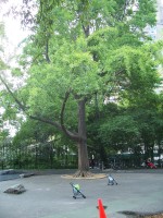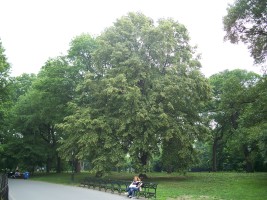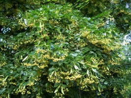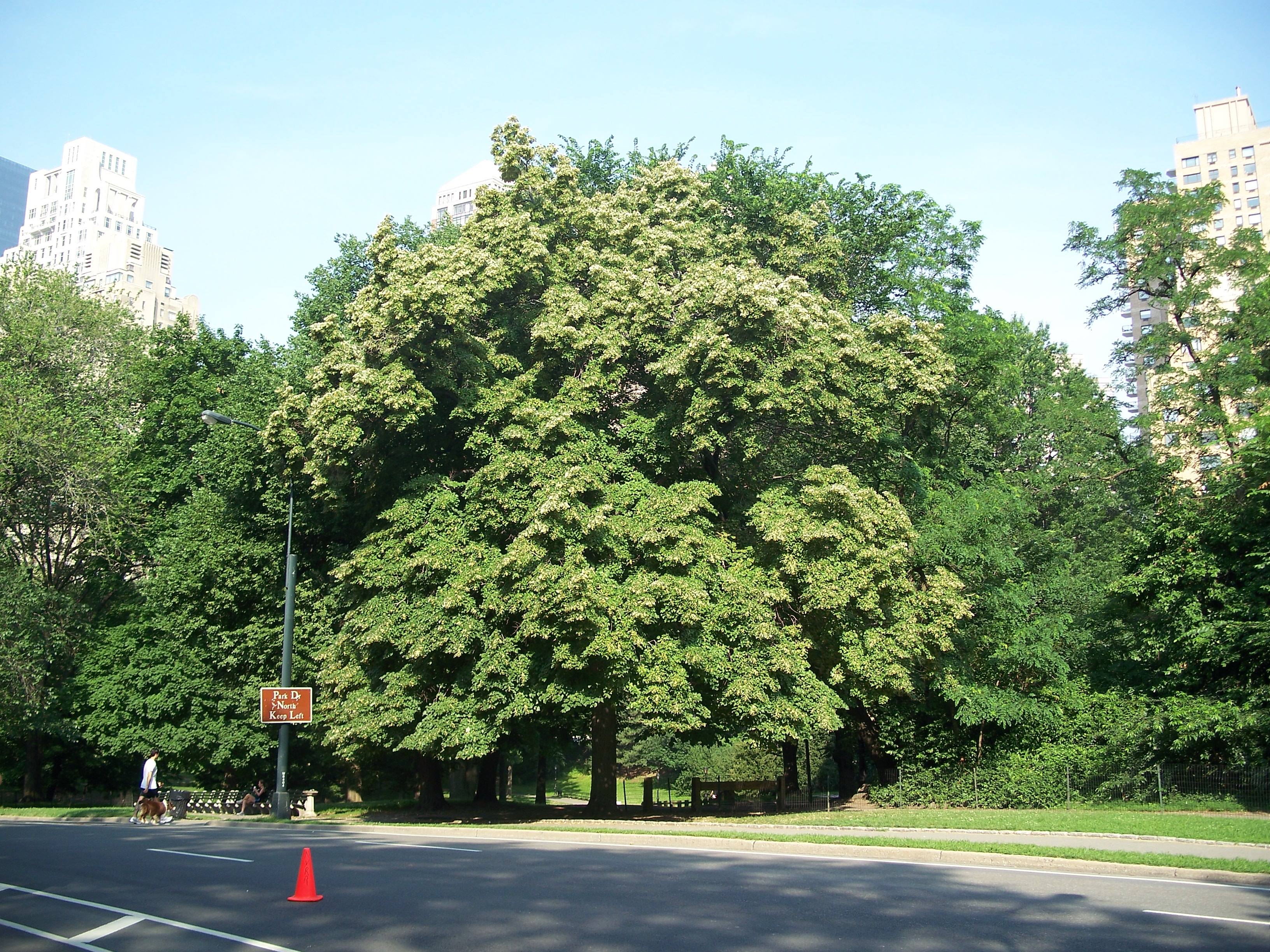 In Central Park, the numerous basswood trees make their presence known in late July when they flower and produce a distinctively strong, sweet aroma that can be carried on a breeze for some distance. The flowers attract bees (giving the tree the knickname "Bee Tree") and the resulting white honey has an equally strong flavor. The flowers eventually form nutlets, each containing 1 or 2 seeds, that are attached to leafy wing bracts that will carry the seeds around the area surrounding the tree.