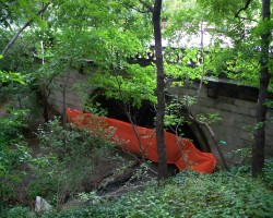 Carries West Drive over a small stream that empties into the Lake near