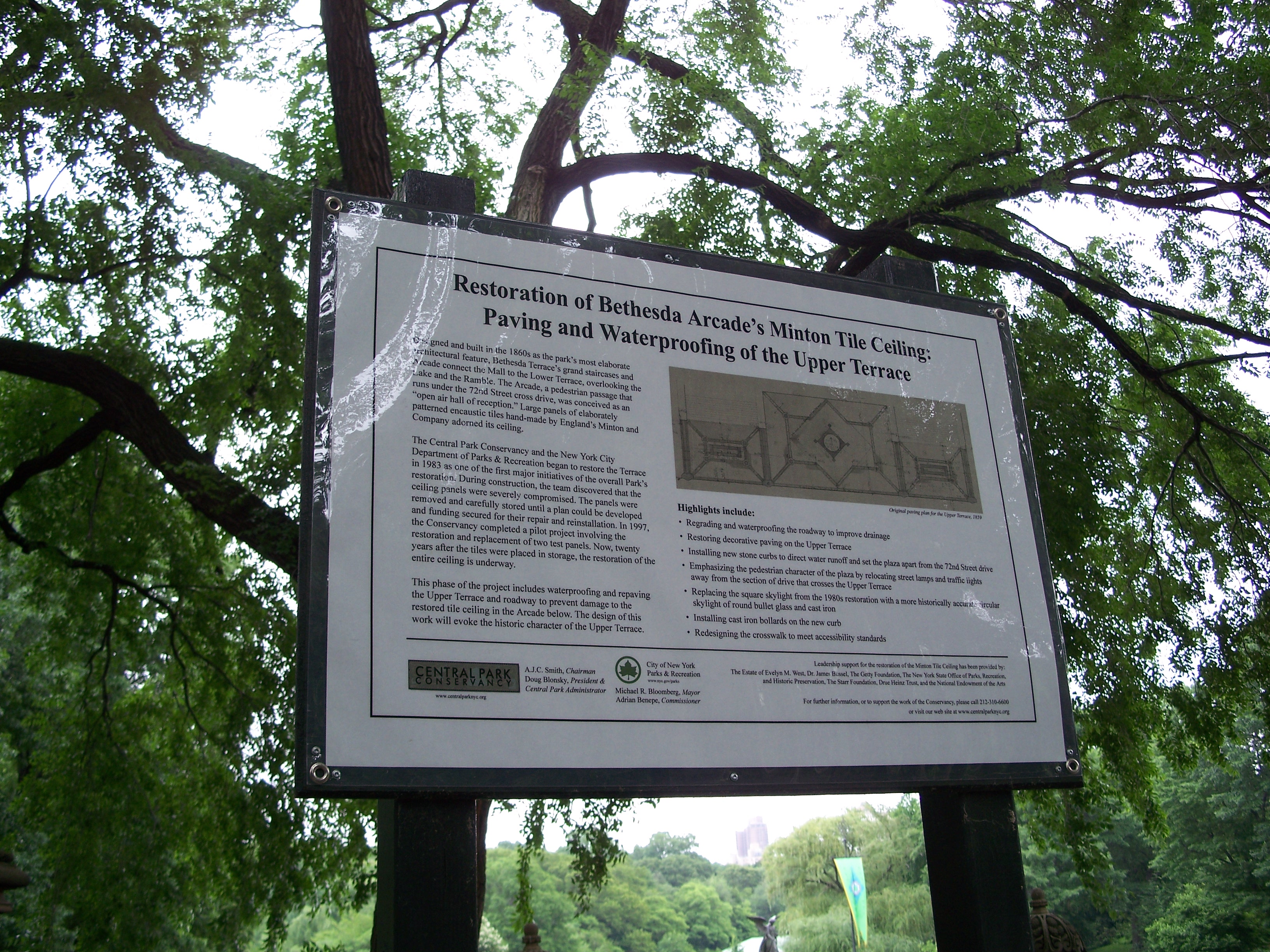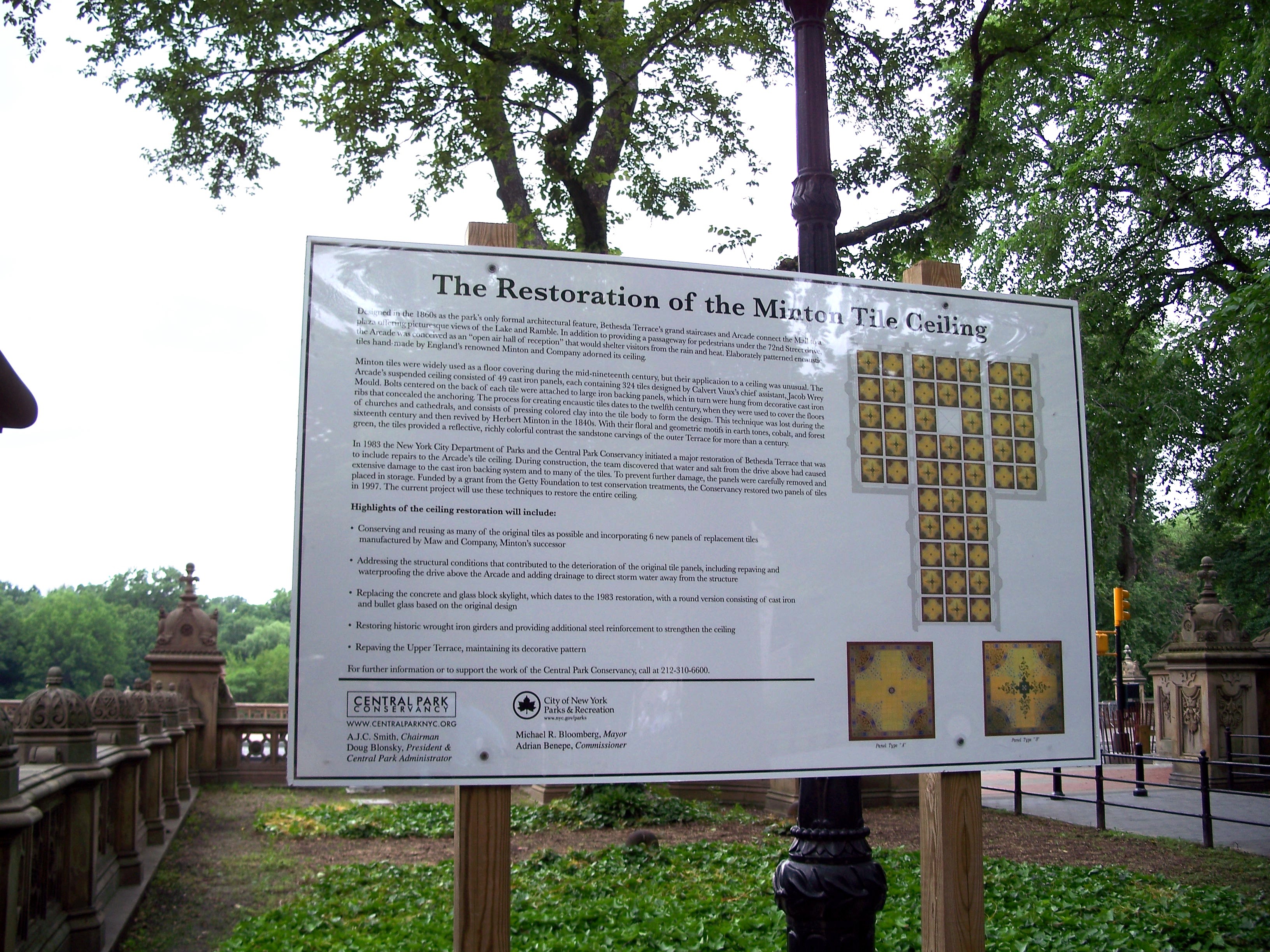 Bethesda Terrace tile restoration sign