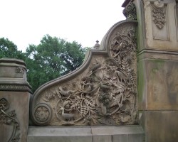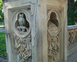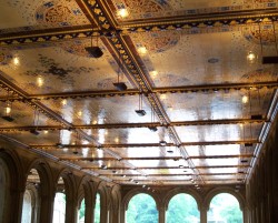 This pedestrian arcade under the 72nd Street Cross Drive is part of the larger Bethesda Terrace, which is similar in design to the the Orangerie at the Palace of Versailles in Paris. The arcade ceiling features tiles by the Minton Company of Stoke-on-Trent, England. The stone carvings on the bridge depict nature and farm scenes, recalling an era in NYC history that is long past.