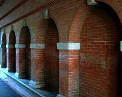 Stone arch vehicle bridge (granite - from a quarry in Seal Harbor, ME - and red brick)