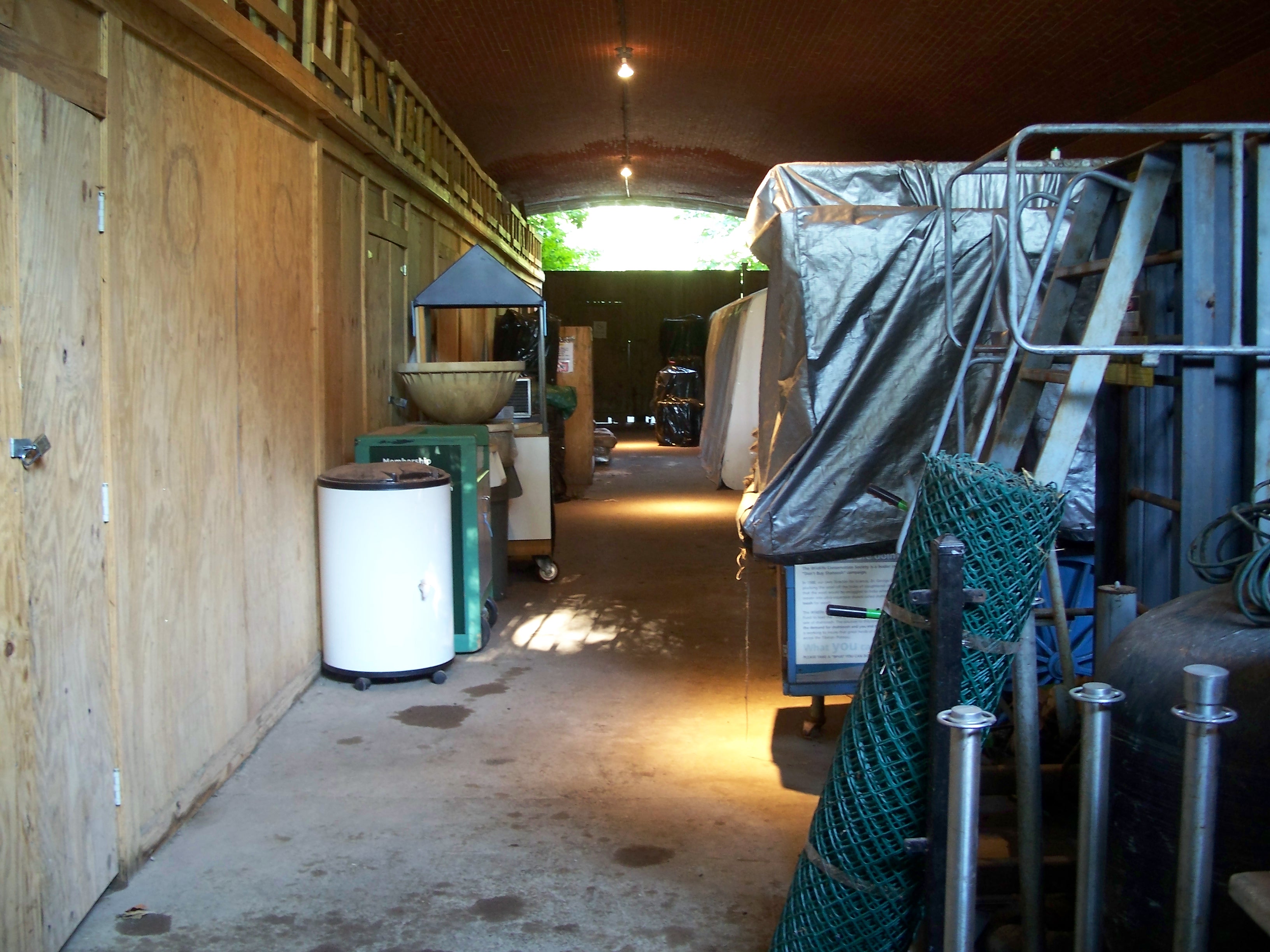 Used to span a bridle path before the southern section of the path was removed during the 1934 expansion of Heckscher Playground. Later converted to a walkway to the zoo. Used as a storage area when I visited in the Summer of 2007.