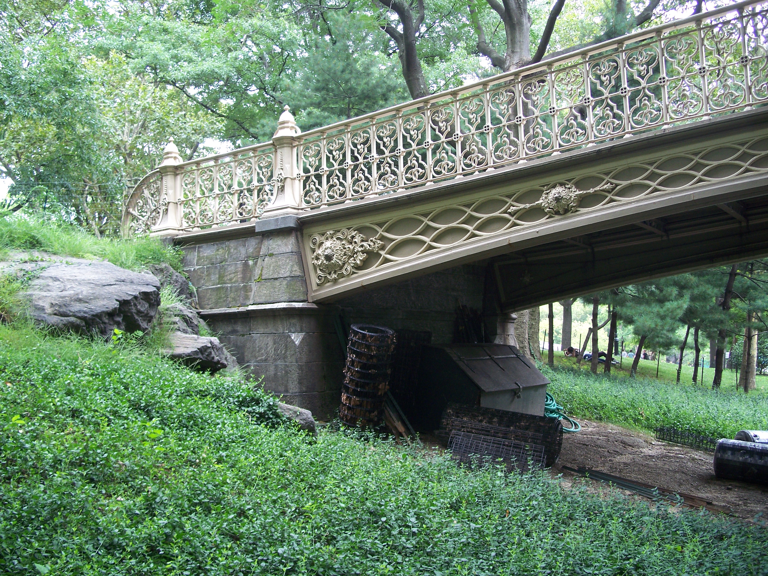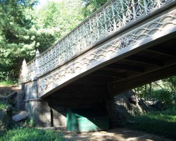 One of the parks' few remaining cast iron bridges. It was rescued from decline and lovingly restored in the 1980s. When the bridge was built, the Bridle Path passed under it on its way through Driprock Arch and Greengap Arch down to Grand Army Plaza at the southeast corner of the park. However, the Bridle Path was terminated here in the 1930's when Heckscher Playground was expanded over what was the southern portion of the bridle path. A reconstruction of this area in 2006 built a landscaped Cul-de-Sac under the bridge as the path's southern terminus, reducing the bridge to an essentially ornamental function.