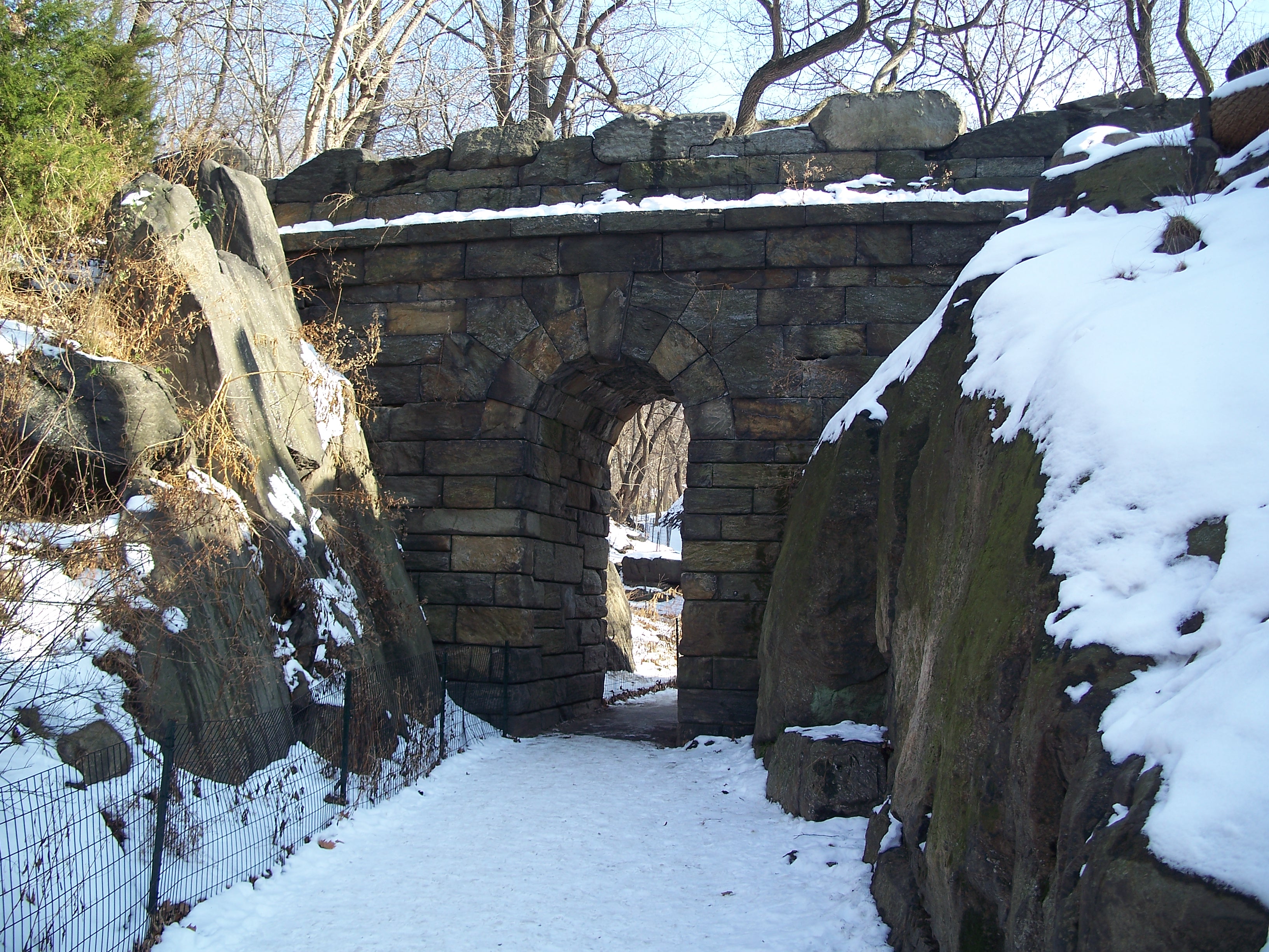 Stone arch pedestrian bridge (rock-face ashlar)