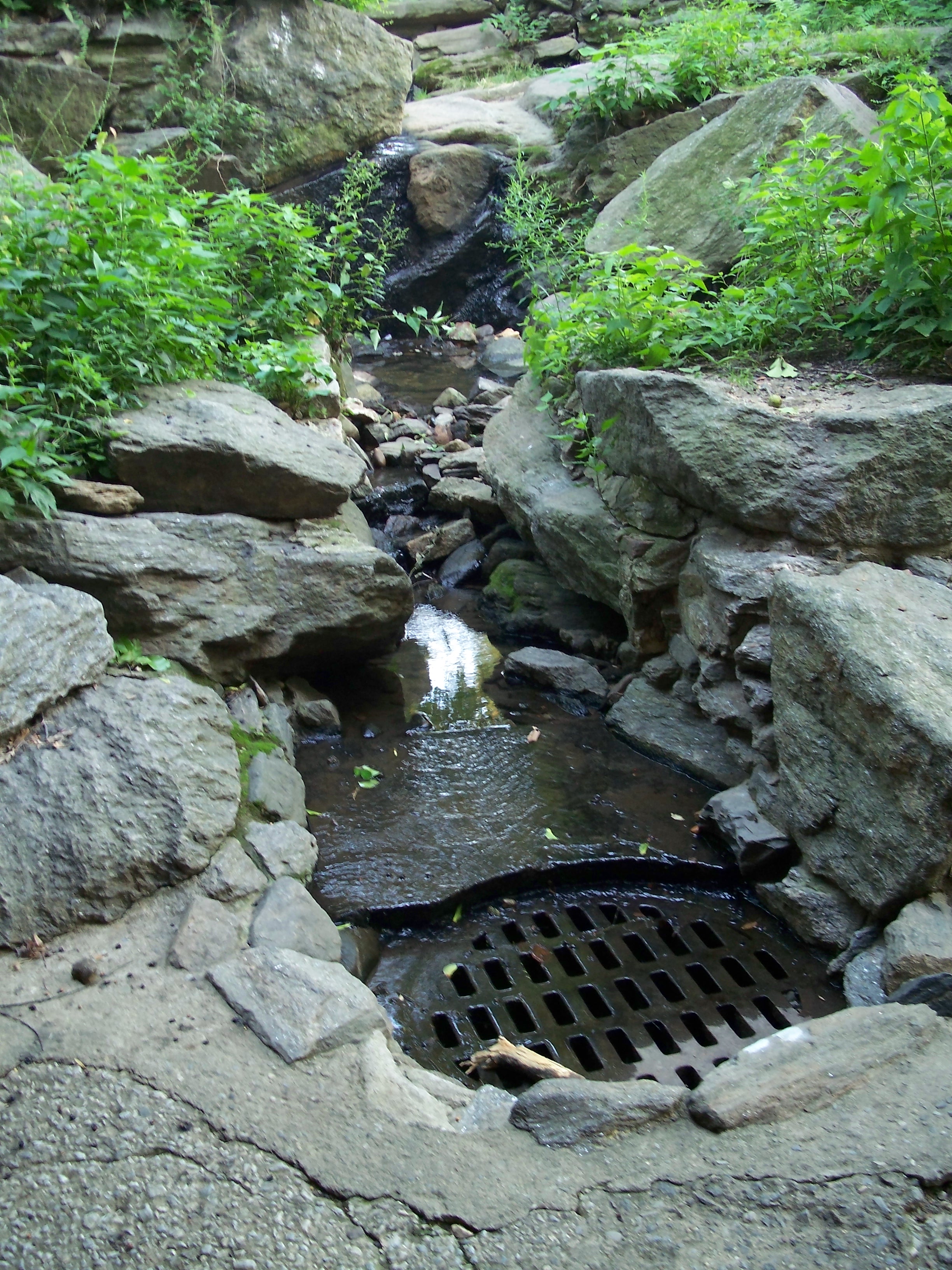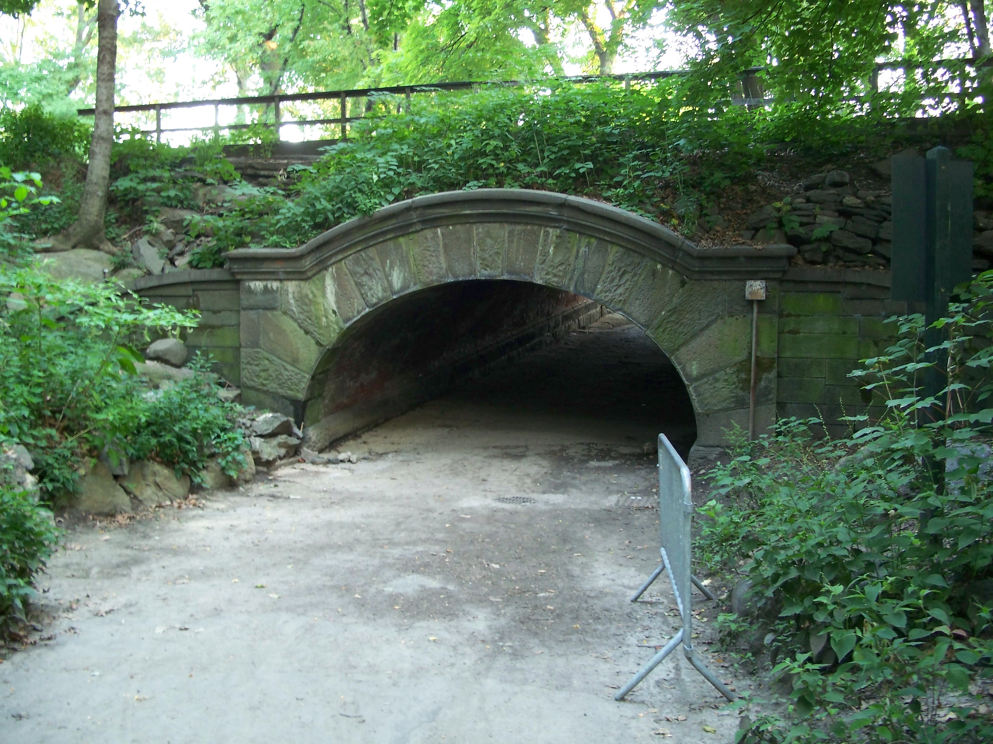 An secluded arch with an unusually low clearance of around six feet. Connects the North Meadow with The Ravine. A small spring on the south side of the bridge drains into a pipe that passes under the bridge and empties into Montayne's Rivulet in the Ravine. (reference)