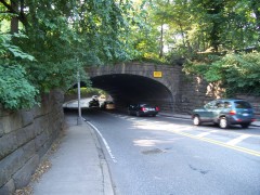 Even though Central Park was planned and executed before the development of the automobile, the architects of the park realized that there would be a need for commercial traffice between the both sides of the park, but did not want that traffic interrupting the bucolic experience of park patrons. One of the most innovative features of the original design of Central Park are the four subterranean Tranverse Roads that carry traffic across the park unimpeded between the East and West sides of the park. These Transverse Roads at 65th, 79th, 86th and 97th streets are dark, dirty and often crowded, carrying their filthy effluent largely unnoticed by park patrons only a few feet above them.