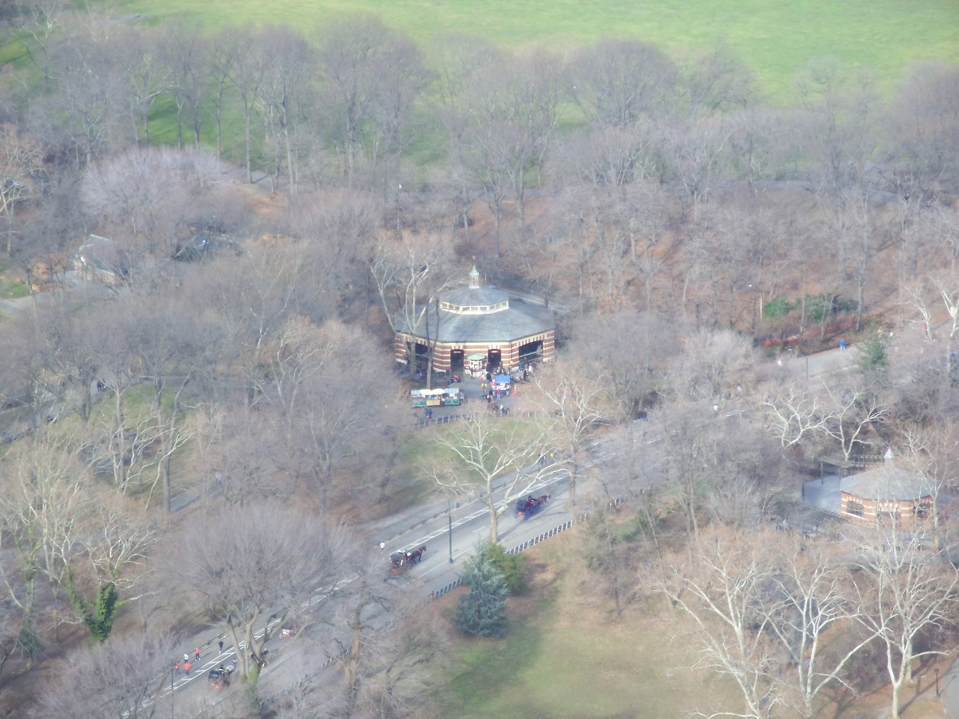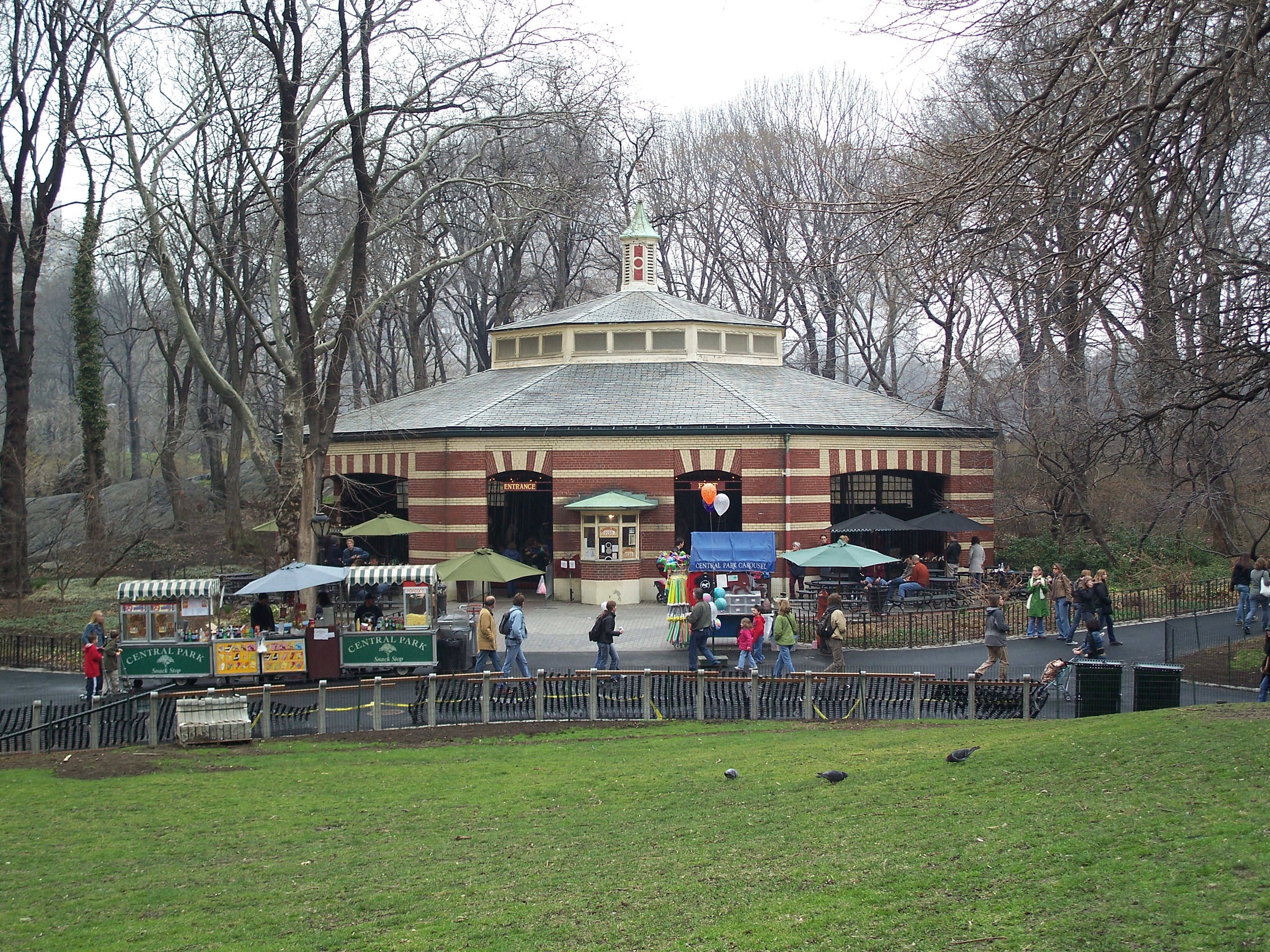 The first carousel opened in the park in 1871 and was driven by a mule and blind horse hitched to a pole under the ride. That carousel was subsequently electrified and, eventually, replaced in 1924 with one that featured the brass ring made famous in J.D. Salinger's novel, The Catcher in the Rye. That carousel burned in 1950 and was replaced with this carousel that had originally been located (and abandoned) in a BMT trolly terminal at Coney Island.