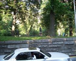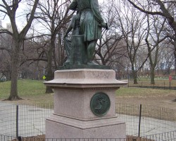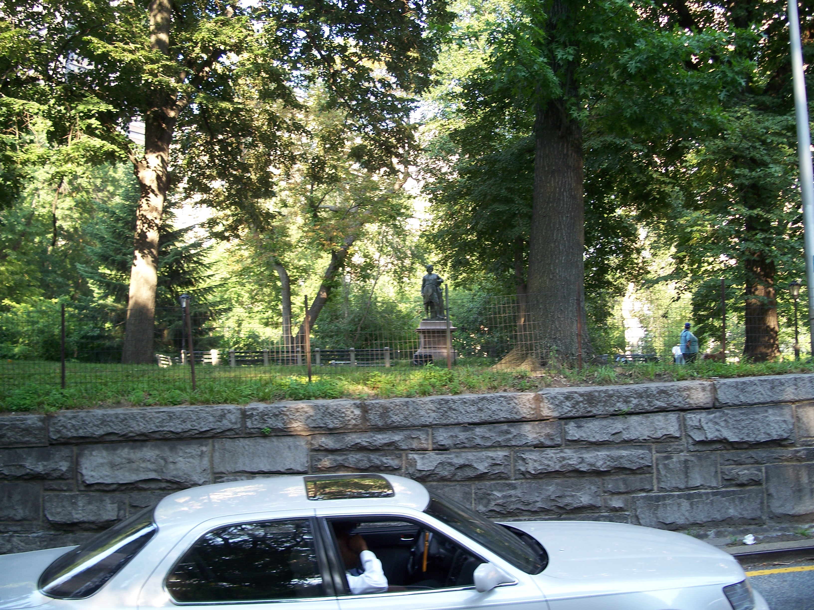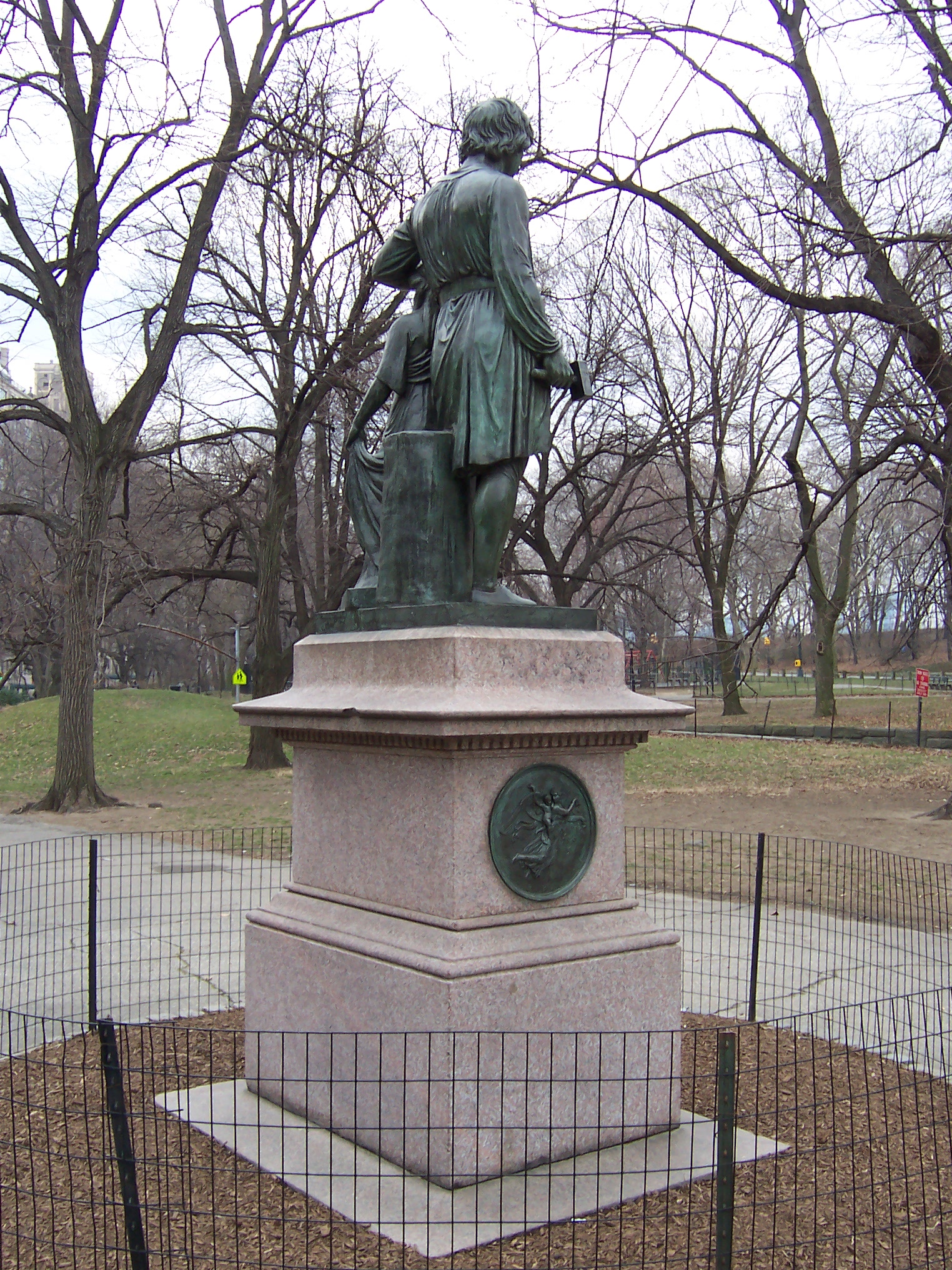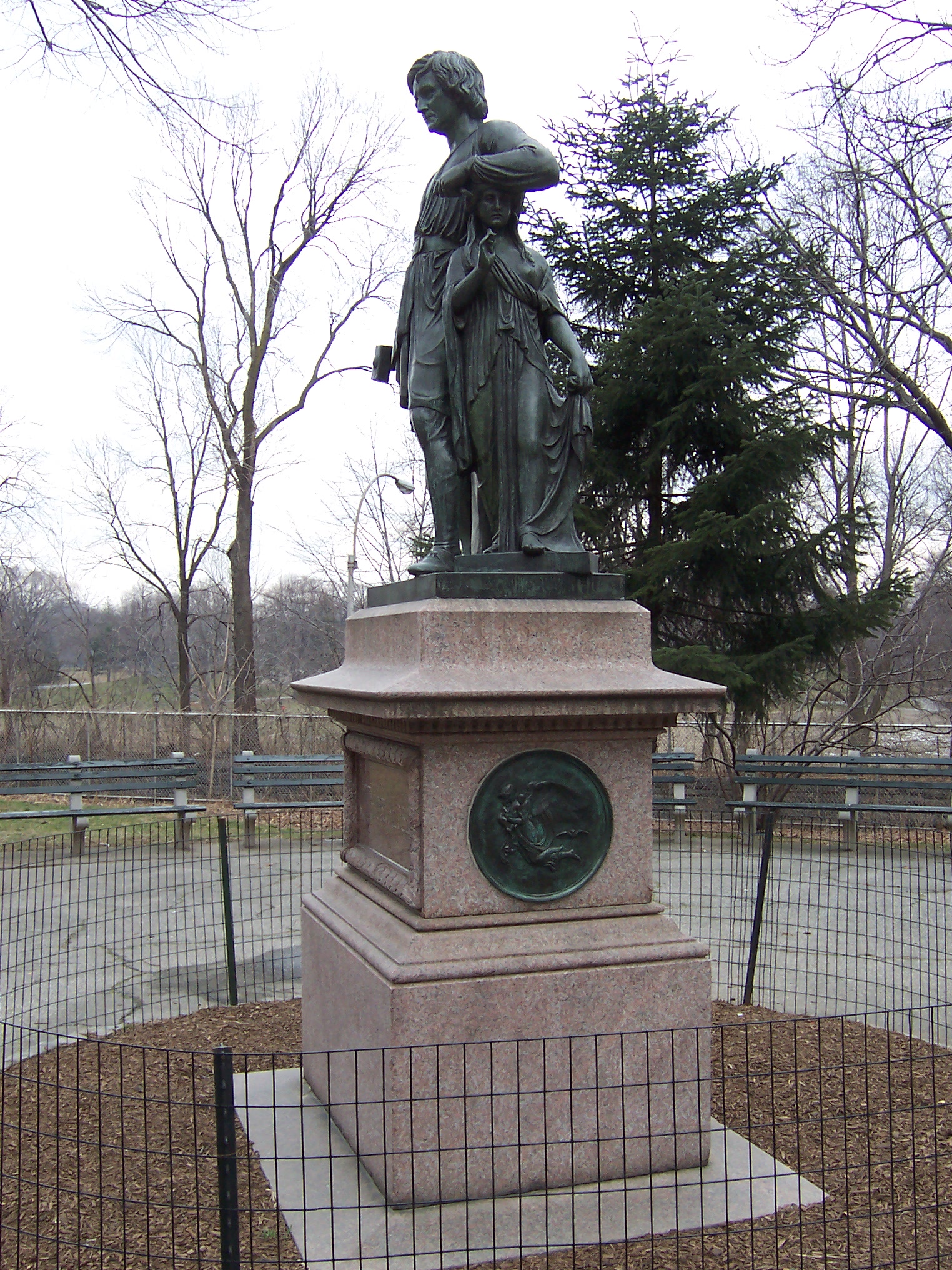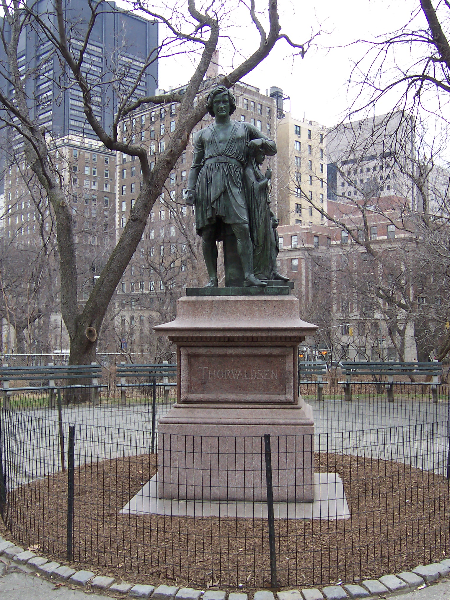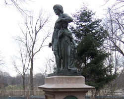 This replica was cast in Copenhagen in 1892 and the sculpture was originally placed north of 59th Street between 6th and 7th avenues. It was later moved to 97th Street at 5th avenue before coming in 1940 to this triangular knoll that was created when the eastbound lane of the 97th street transverse road added to connect to 96th Street. (reference)