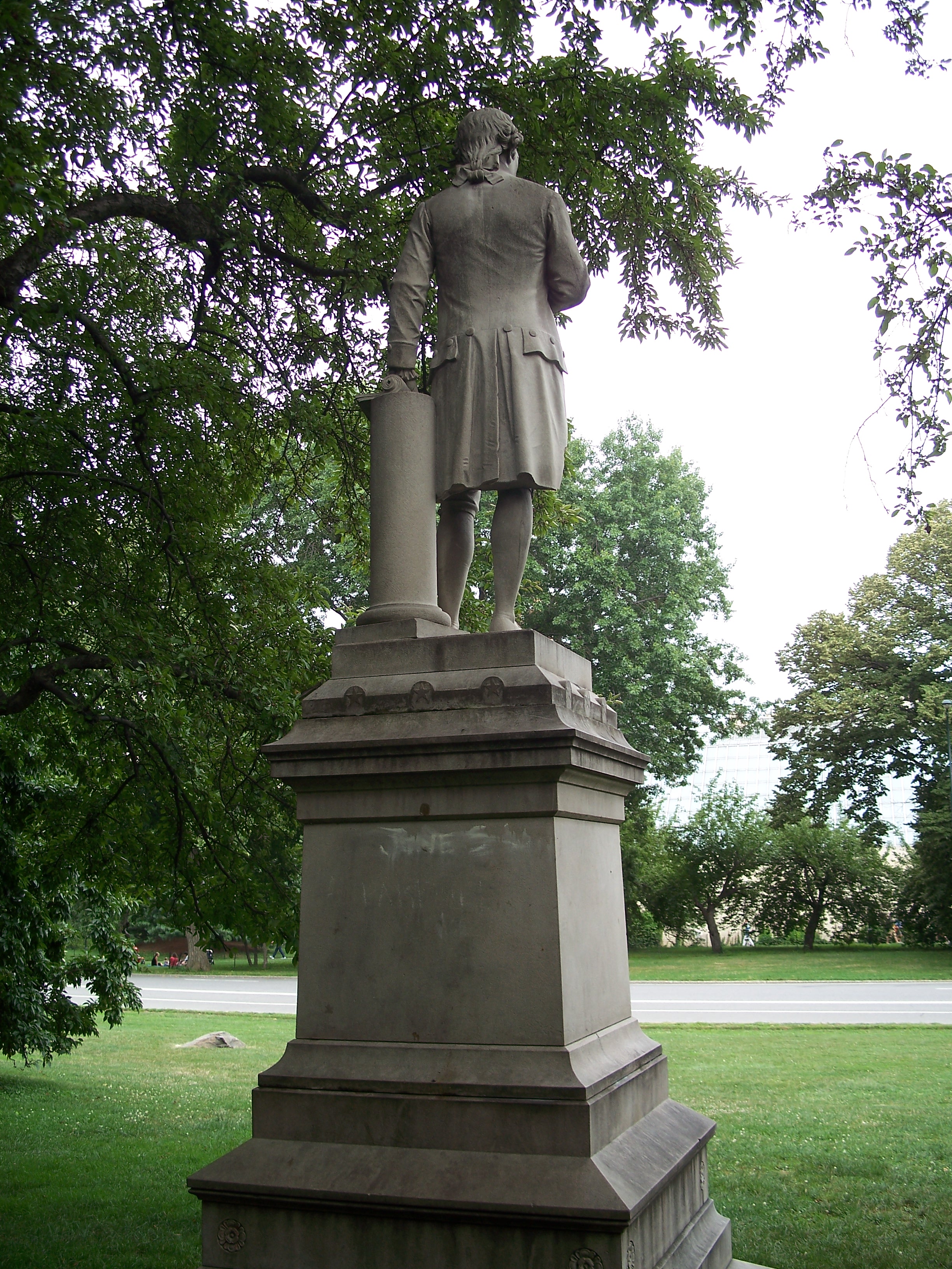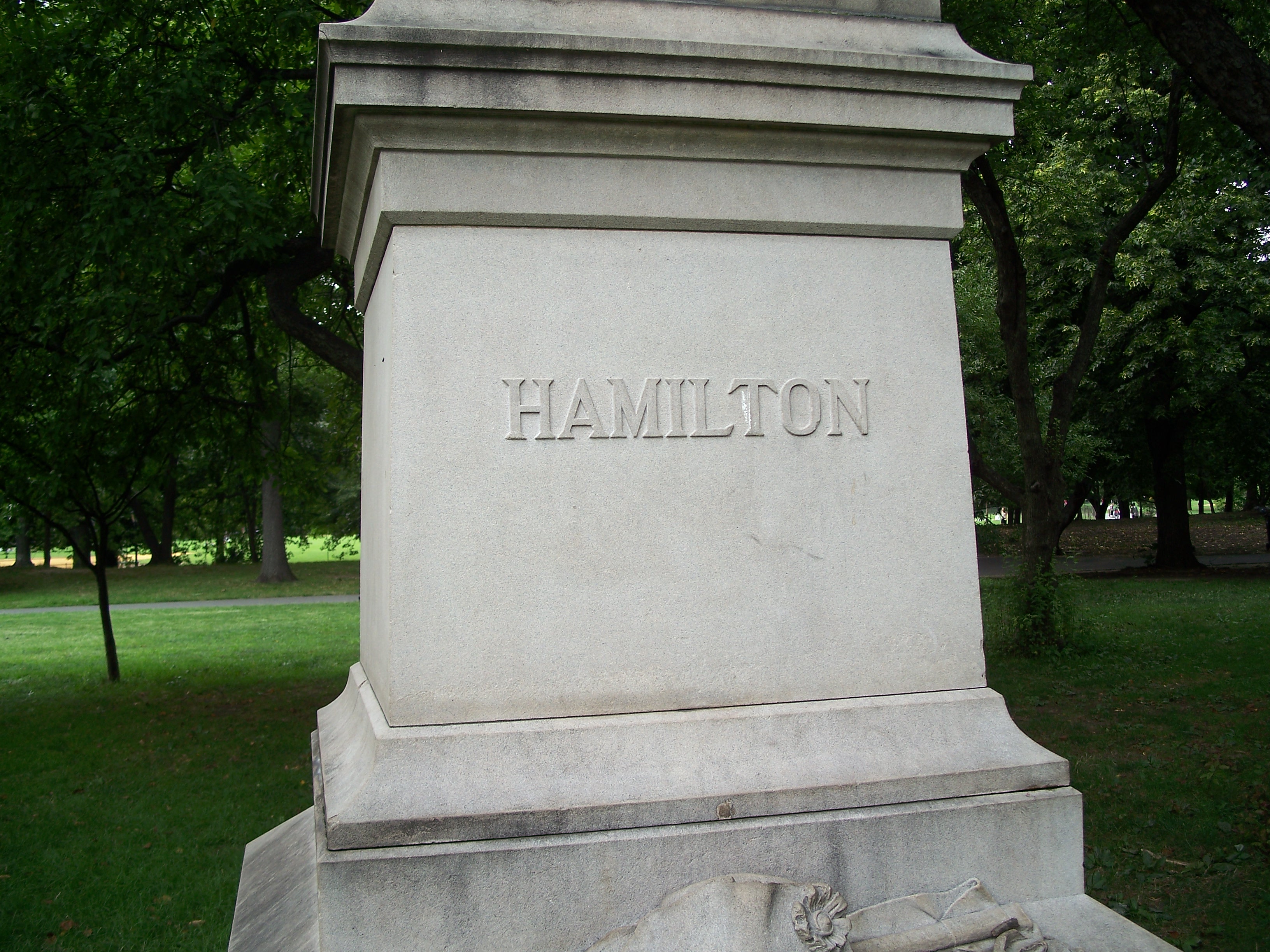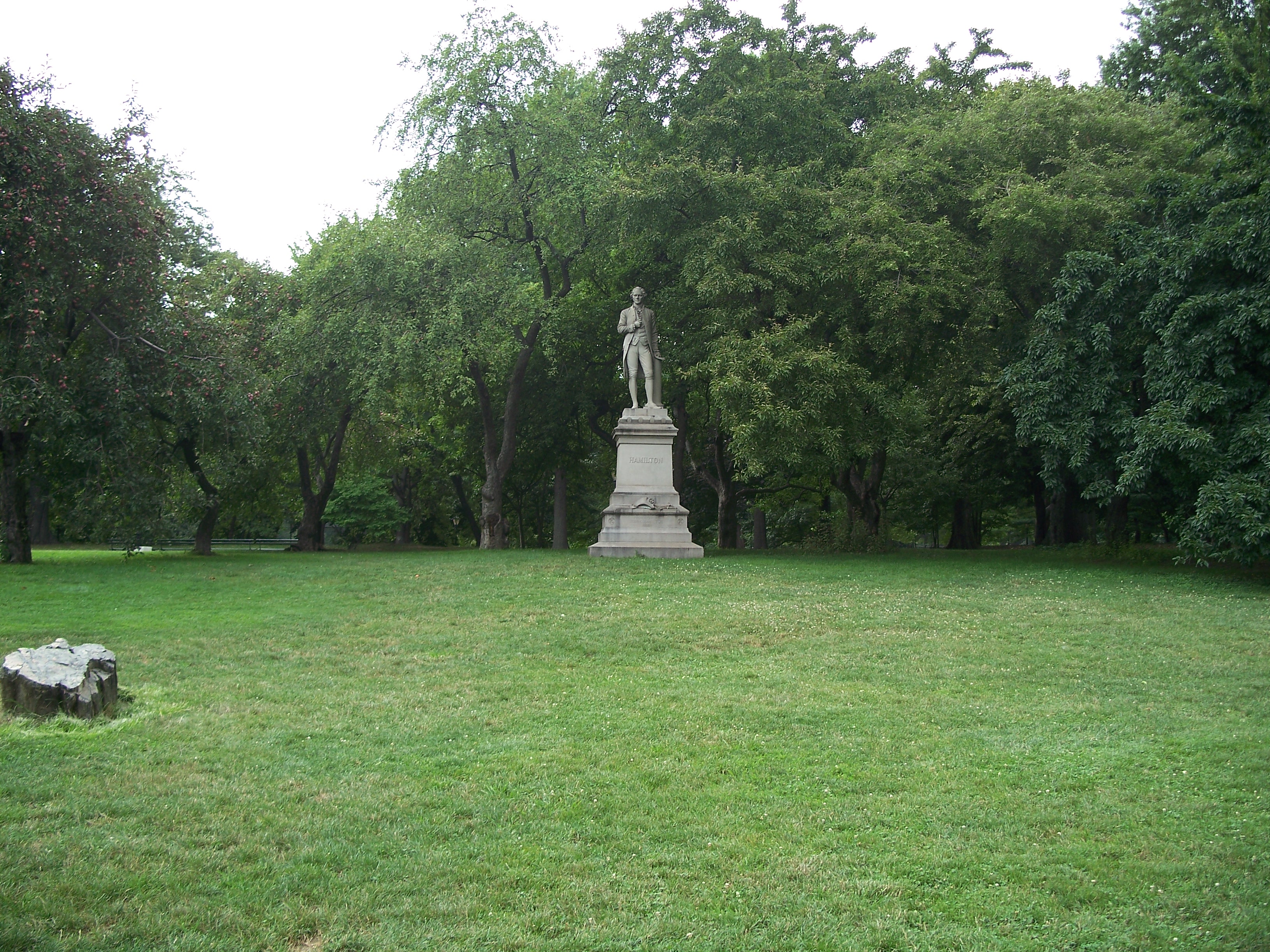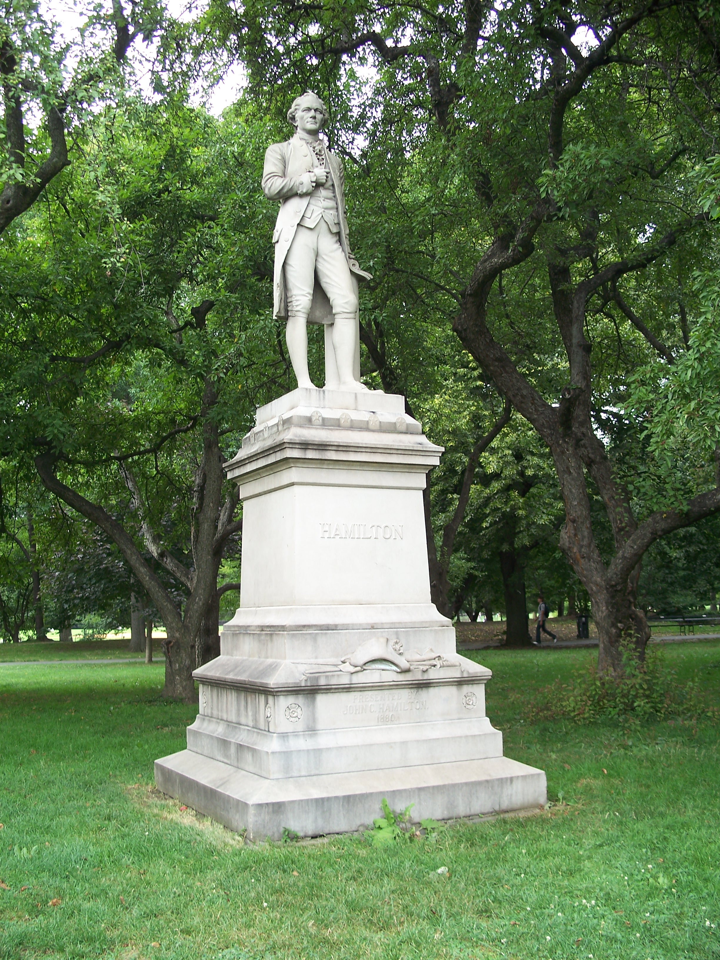 Alexander Hamilton (1757 - 1804) was one of America's founding fathers, best remembered as the author of The Federalist Papers and as the Secretary of the Treasury to George Washington who built the foundation of the fiscal system of the new American government. This life-sized granite sculpture by Carl H. Conrads (1839 - 1920) was donated to the city in 1880 by Hamilton's grandson, John C. Hamilton.
