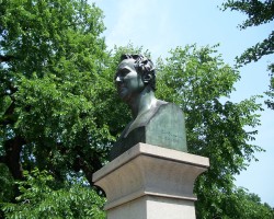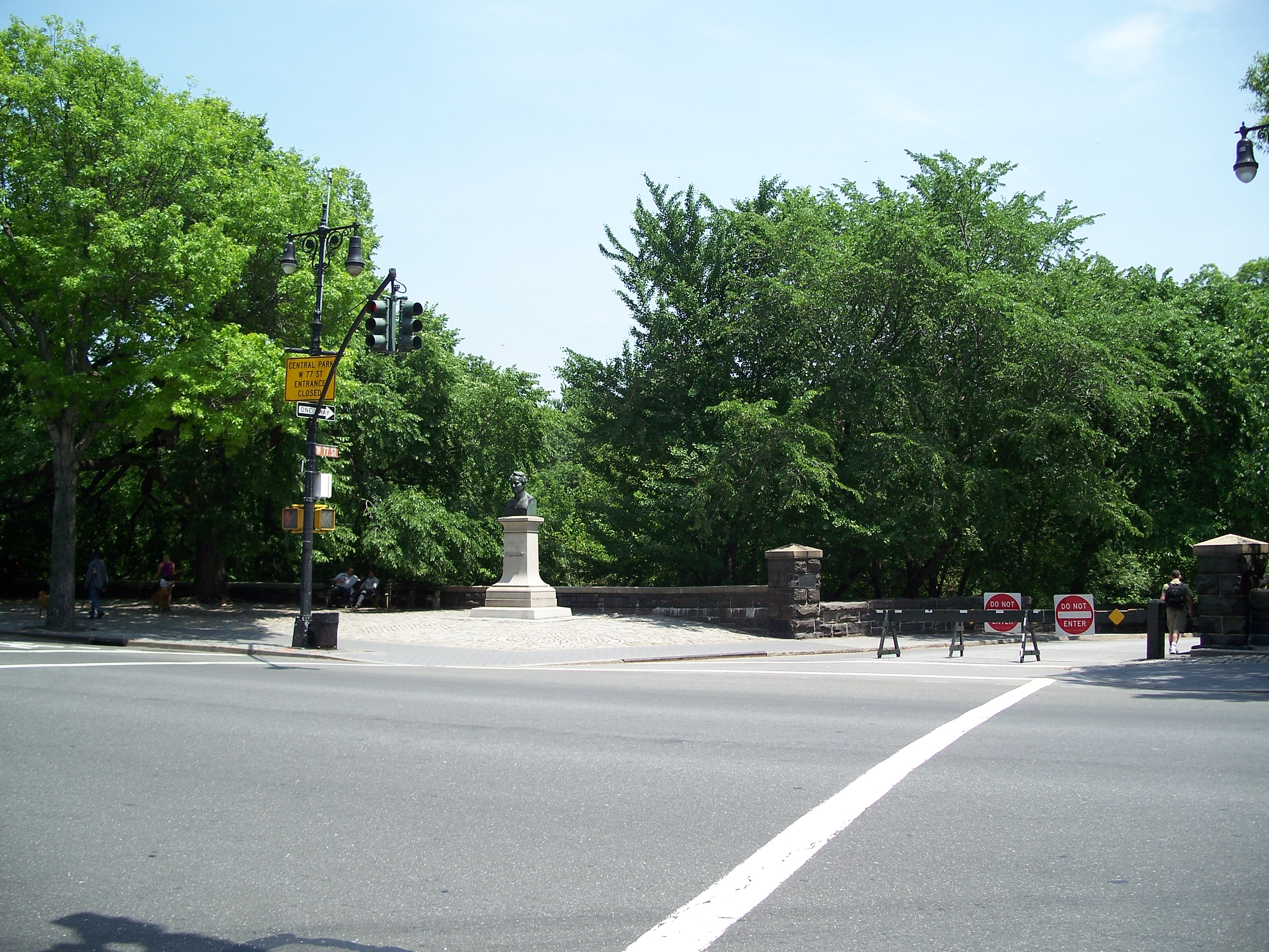 Frederick Heinrich Alexander von Humboldt (1769 - 1859) was a German scientist, explorer and naturalist who's pioneering work was the foundation for many 19th century theories of matter and the universe. This bronze bust of Humboldt is by Gustaf Blaeser (1813 - 1874), a sculptor who knew Humboldt and used his death mask as a reference. The monument was donated by the Humboldt Memorial Association and dedicated at 59th Street and Fifth Avenue on September 14, 1869. The monument was moved to this more appropriate location across from the Museum of Natural History in 1981. (reference)
