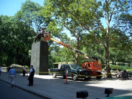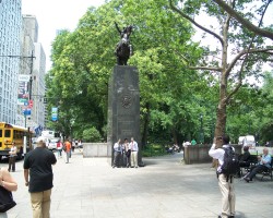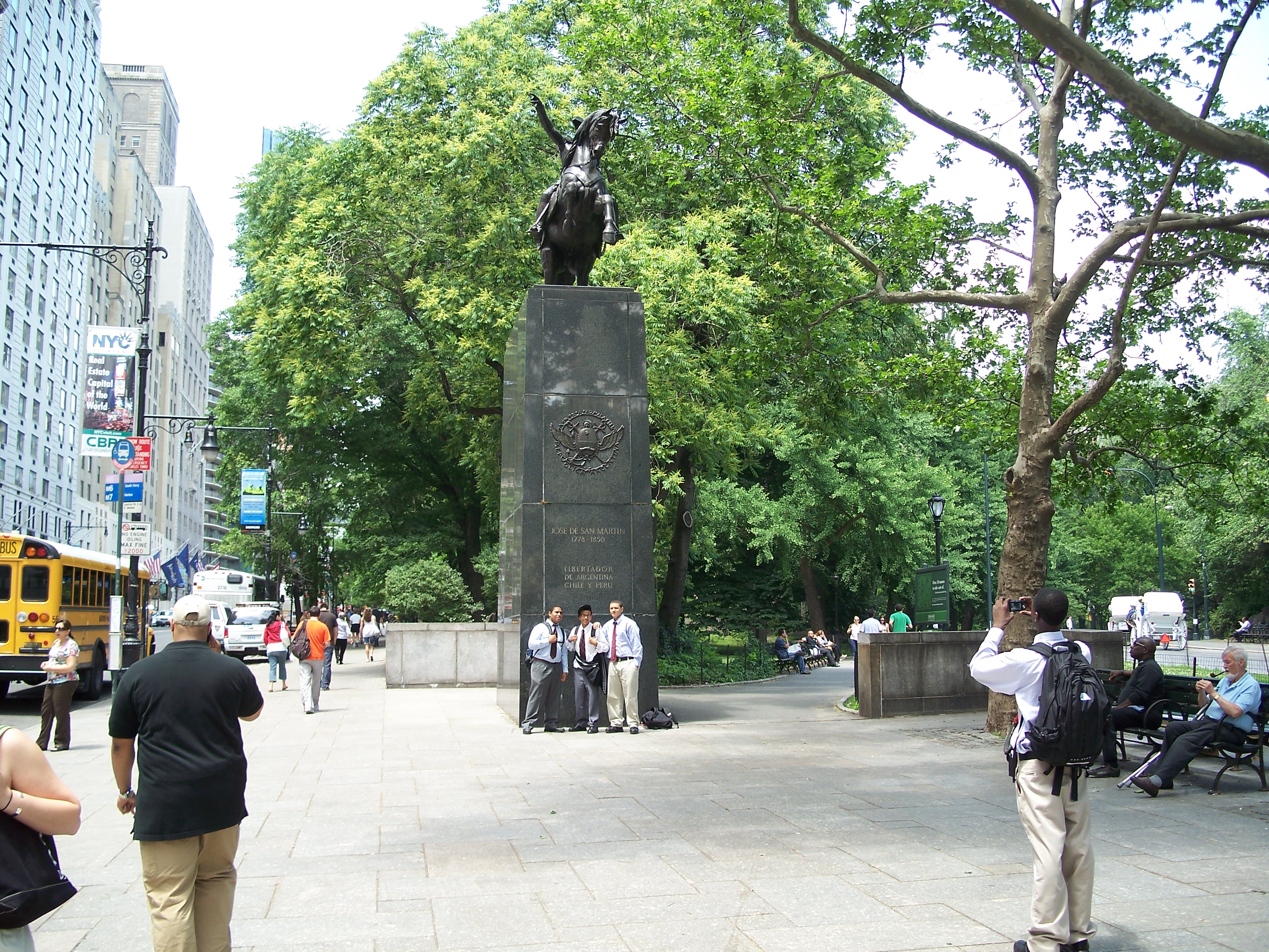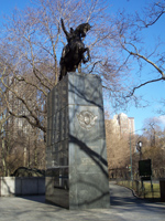 Argentine general Jose de San Martin (1778 - 1850) helped Argentina, Chile, and Peru gain independence from the Spanish in the early part of the 19th century. The statue is a replica of a 1862 work by French sculptor Louis Joseph Daumas (1801 - 1887) that was given to the City in in 1950 in exchange for a statue of George Washington. The black granite pedestal was designed by the firm of Clarke & Rapuano and the monument was dedicated on May 25, 1951. (NYCGovParks.org).