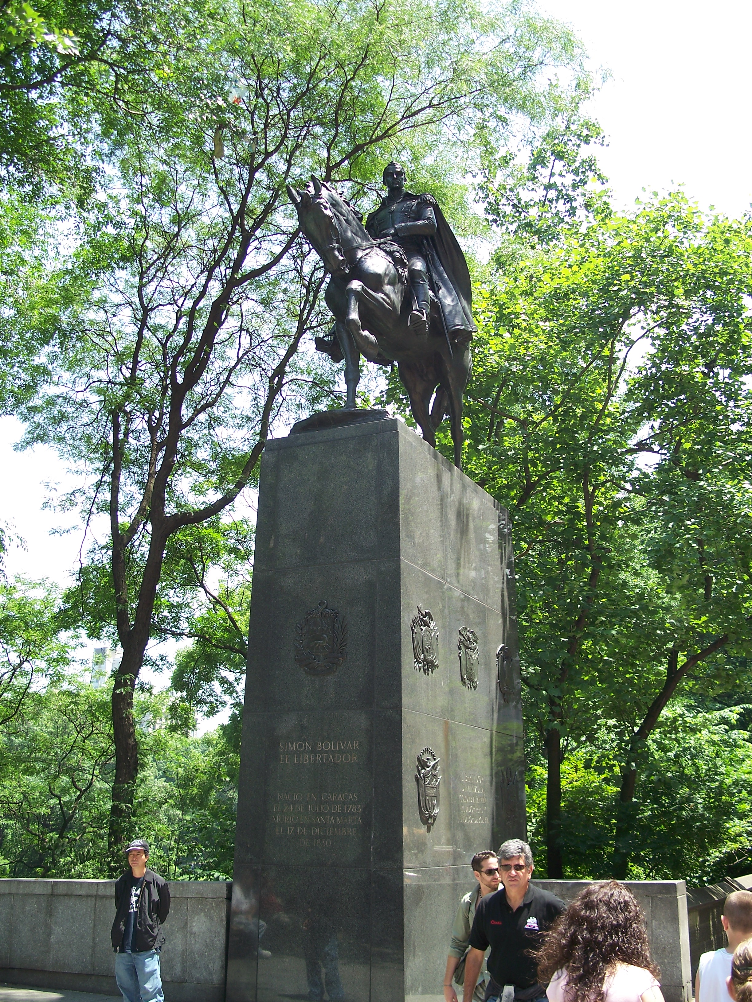 Simon Bolivar (1783 - 1830) was a military general and advocate for Pan-American independence who is credited with the liberation of Venezuela, Columbia, Ecuador, Peru, Bolivia and Panama from Spanish domination. This is the third statue of Bolivar for the park. The first statue by R. De Las Cora was installed in 1891 on Bolivar Hill (a knoll near West 83rd Street) but was soon removed by the park board when it received extensive criticism. Italian sculptor Giovanni Turinni submitted a new statue in 1897 that was rejected by the National Sculpture Society, who advised the Park Board on sculptures. In 1916, Sally James Farnham (1876-1943) won a competition by the Venezuelan government for a new statue that was dedicated on Bolivar Hill on April 19, 1921.
